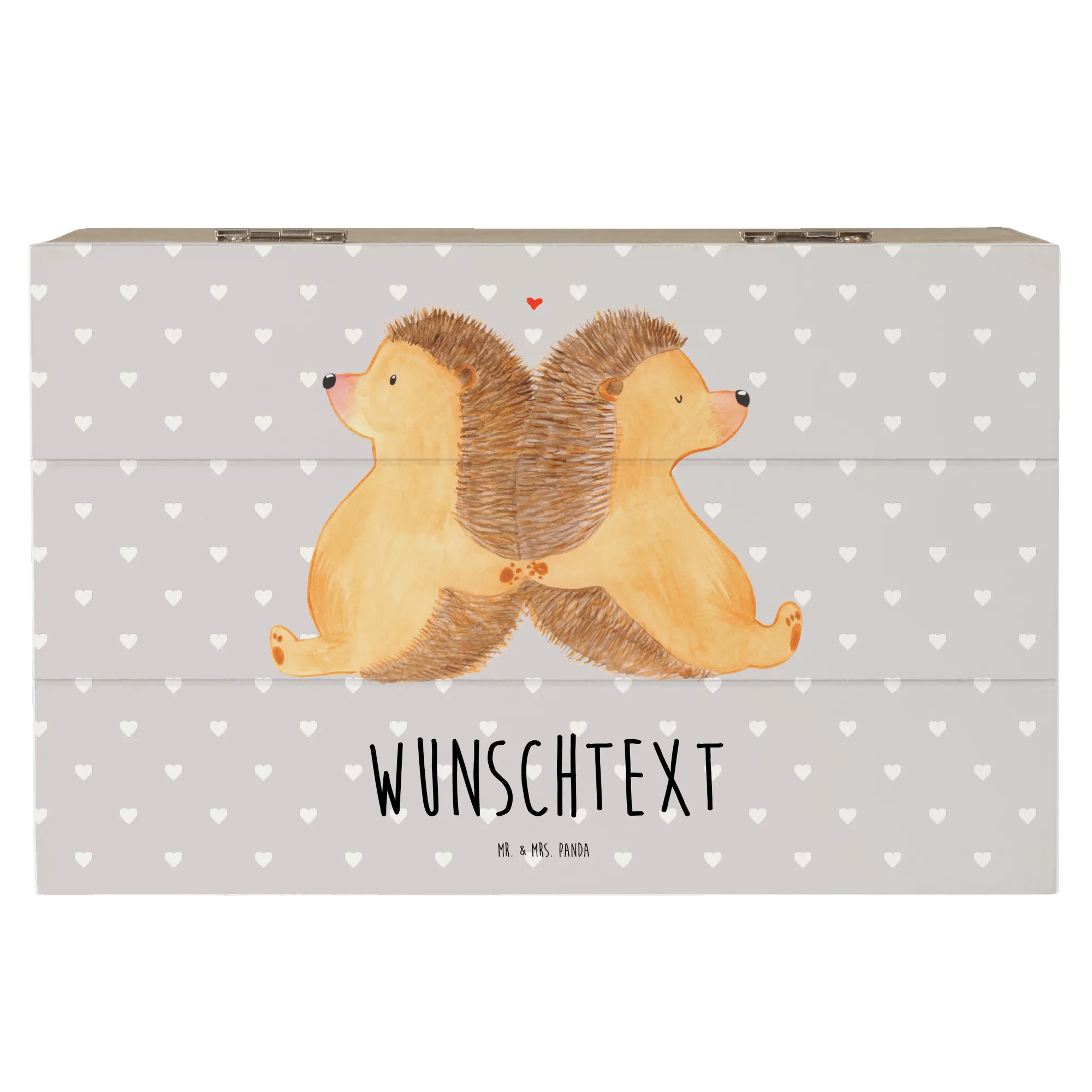 Personalizowane drewniane pudełko Jeże trzymające się za łapki – Mr. & Mrs. Panda