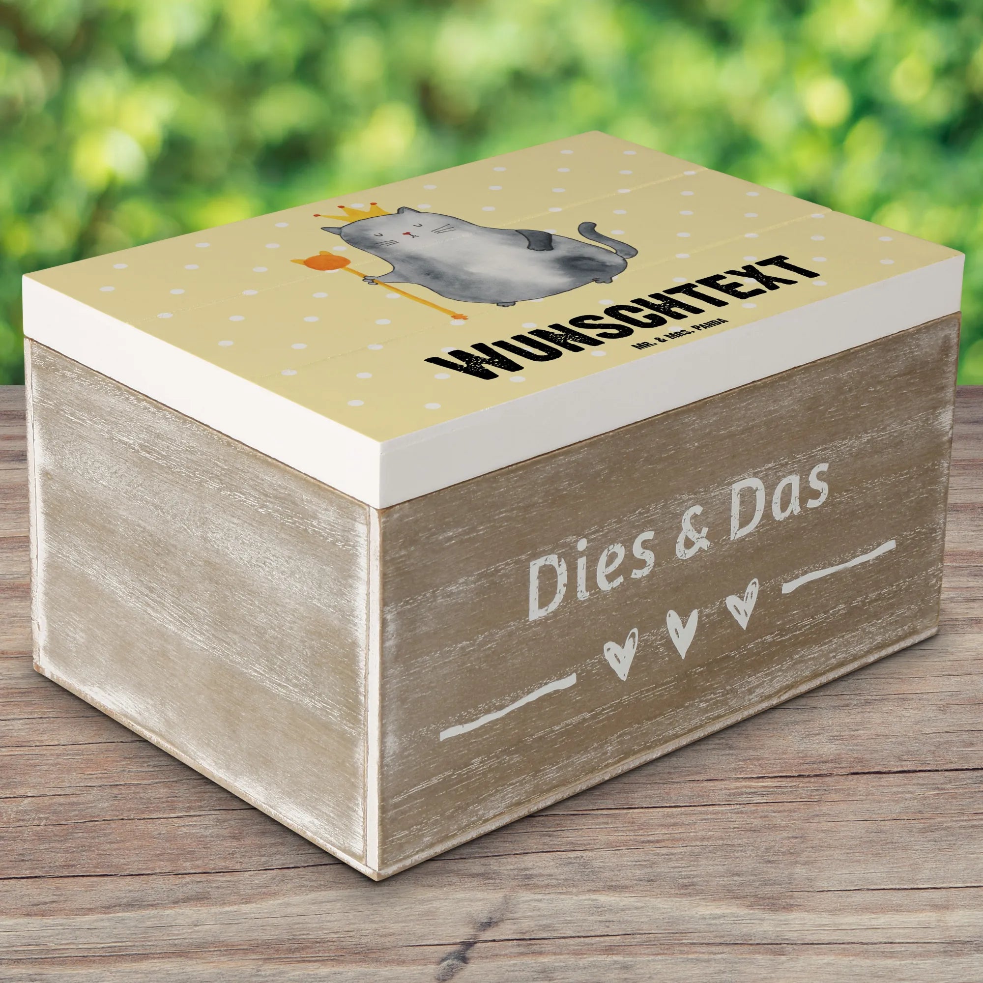 Personalizowane drewniane pudełko kot Król - 22 x 15 cm - biały
