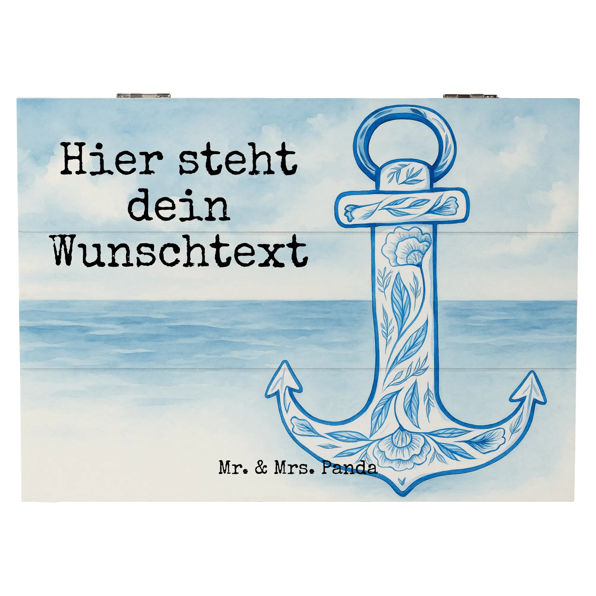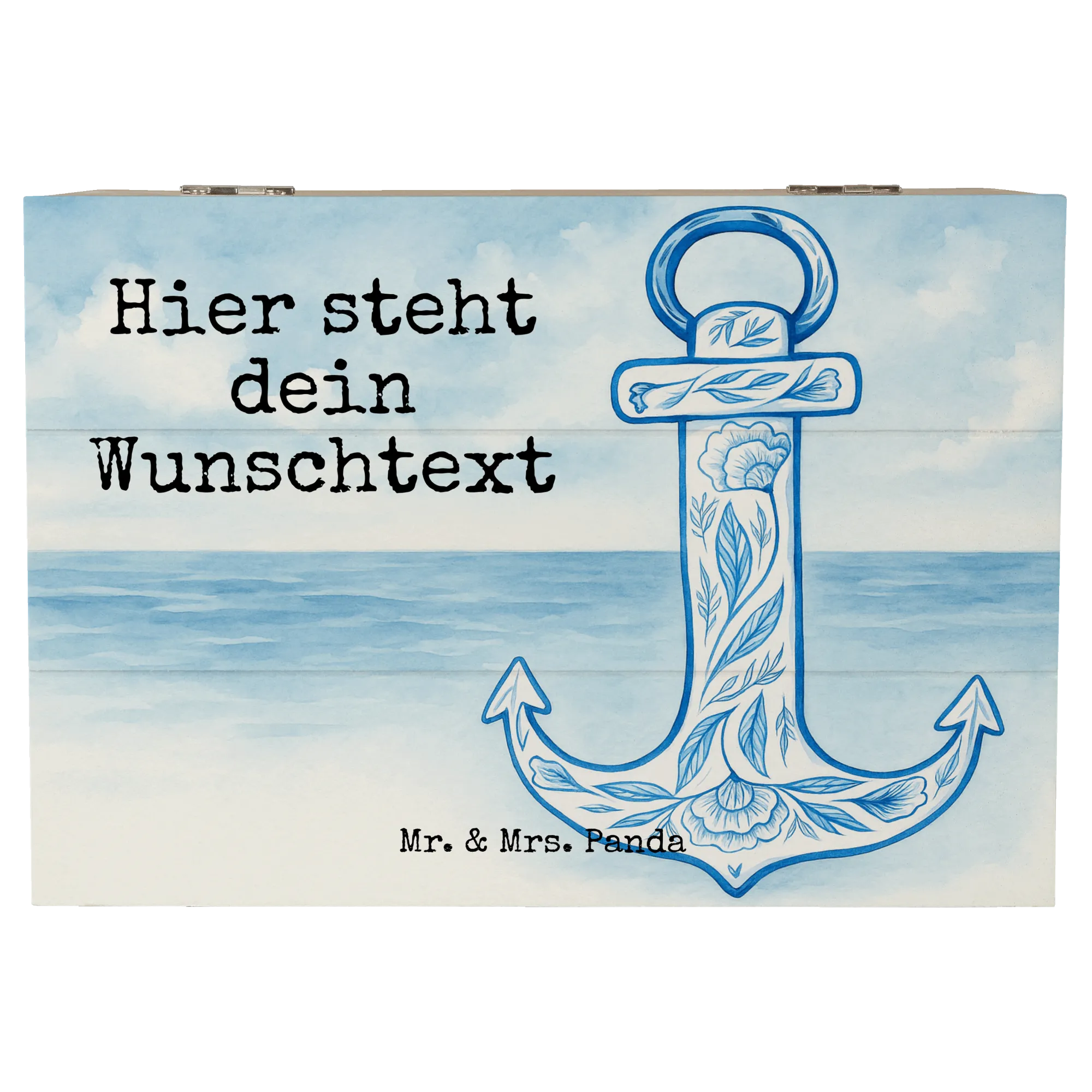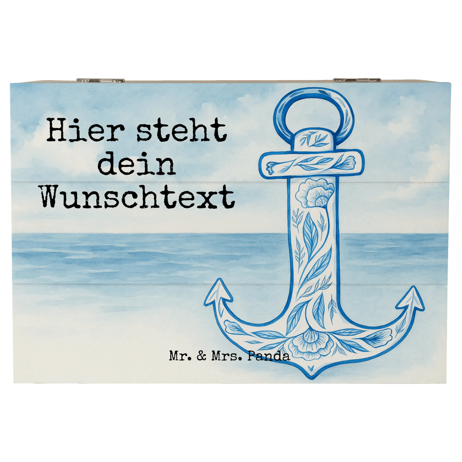 Personalizowane drewniane pudełko kotwica Niebieski Design - 22 x 15 cm