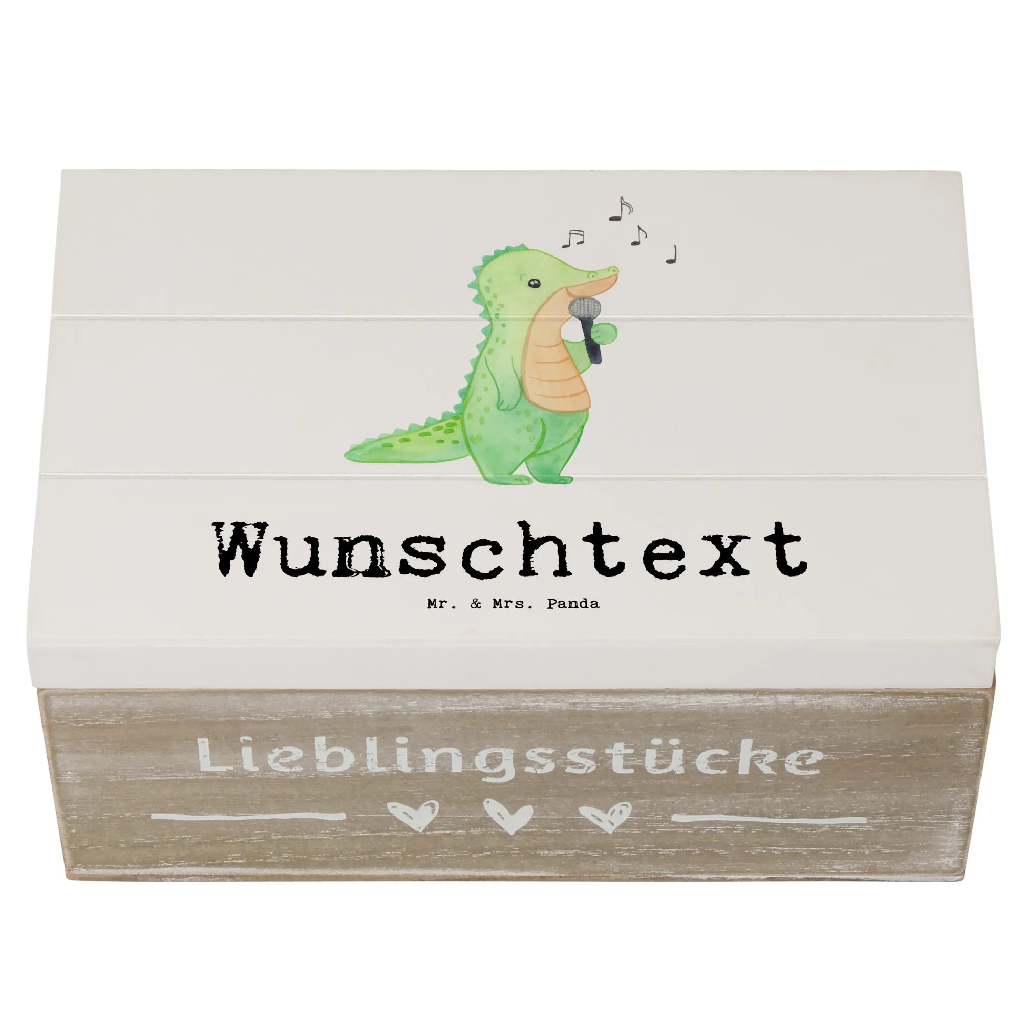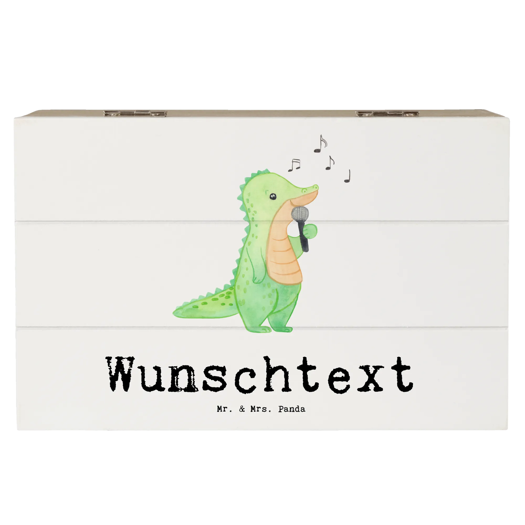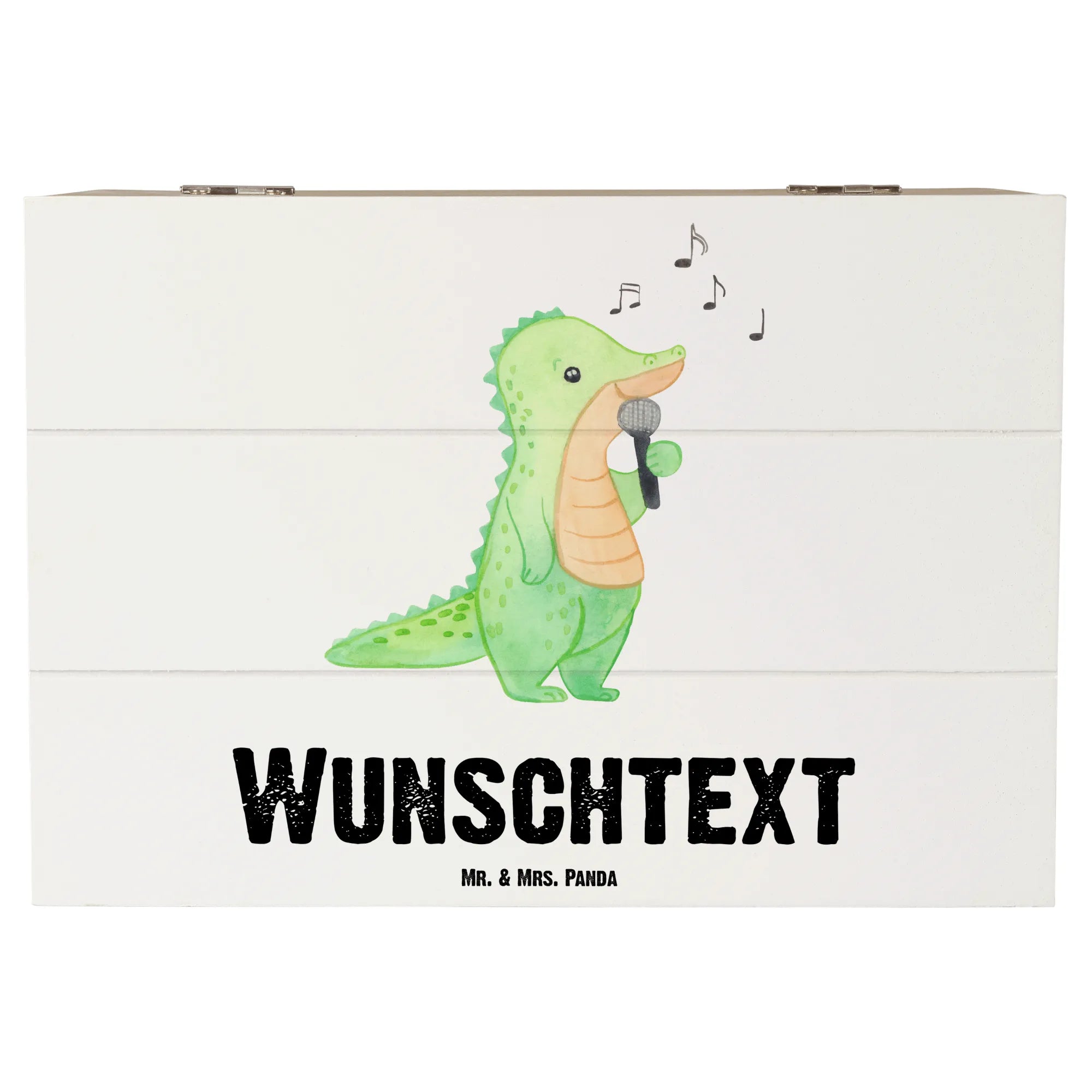 Personalizowane drewniane pudełko krokodyl śpiewać - 22 x 15 cm - Biały