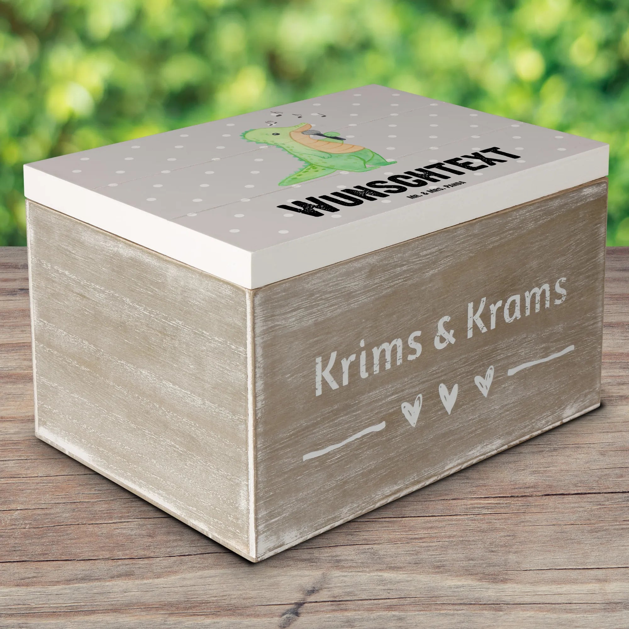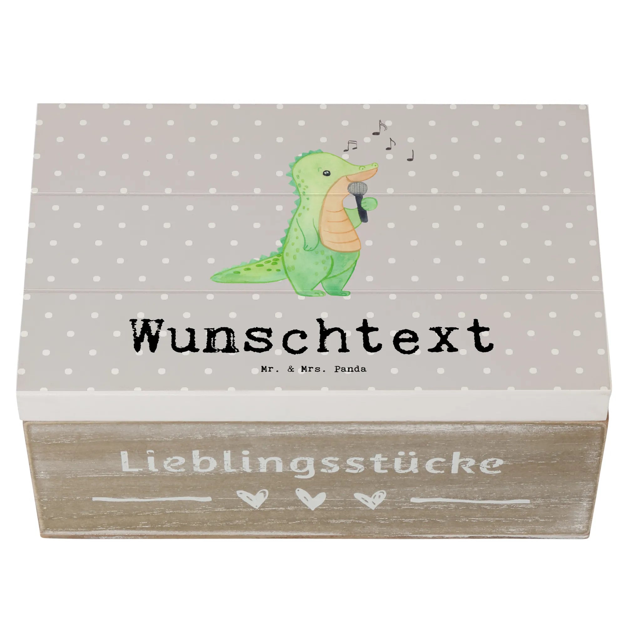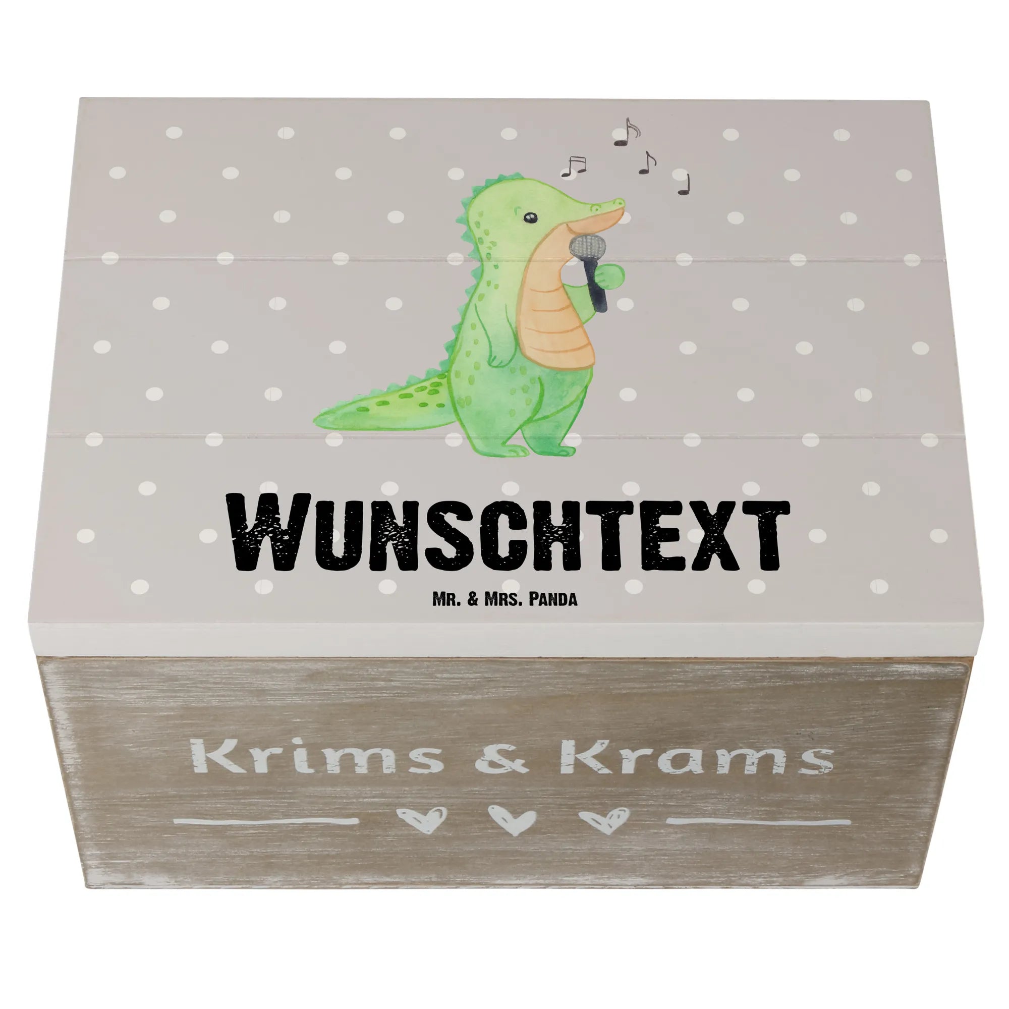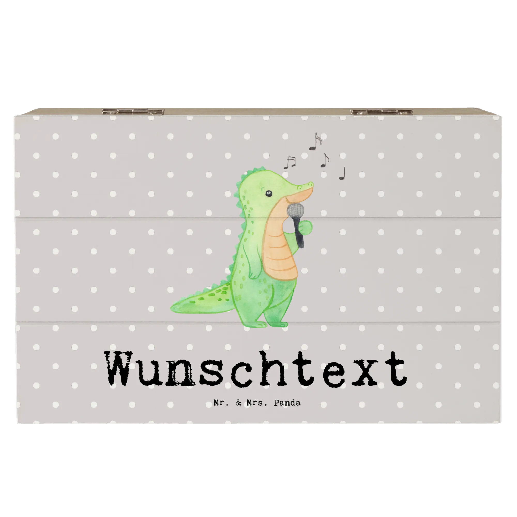 Personalizowane drewniane pudełko krokodyl śpiewać - 22 x 15 cm - Biały