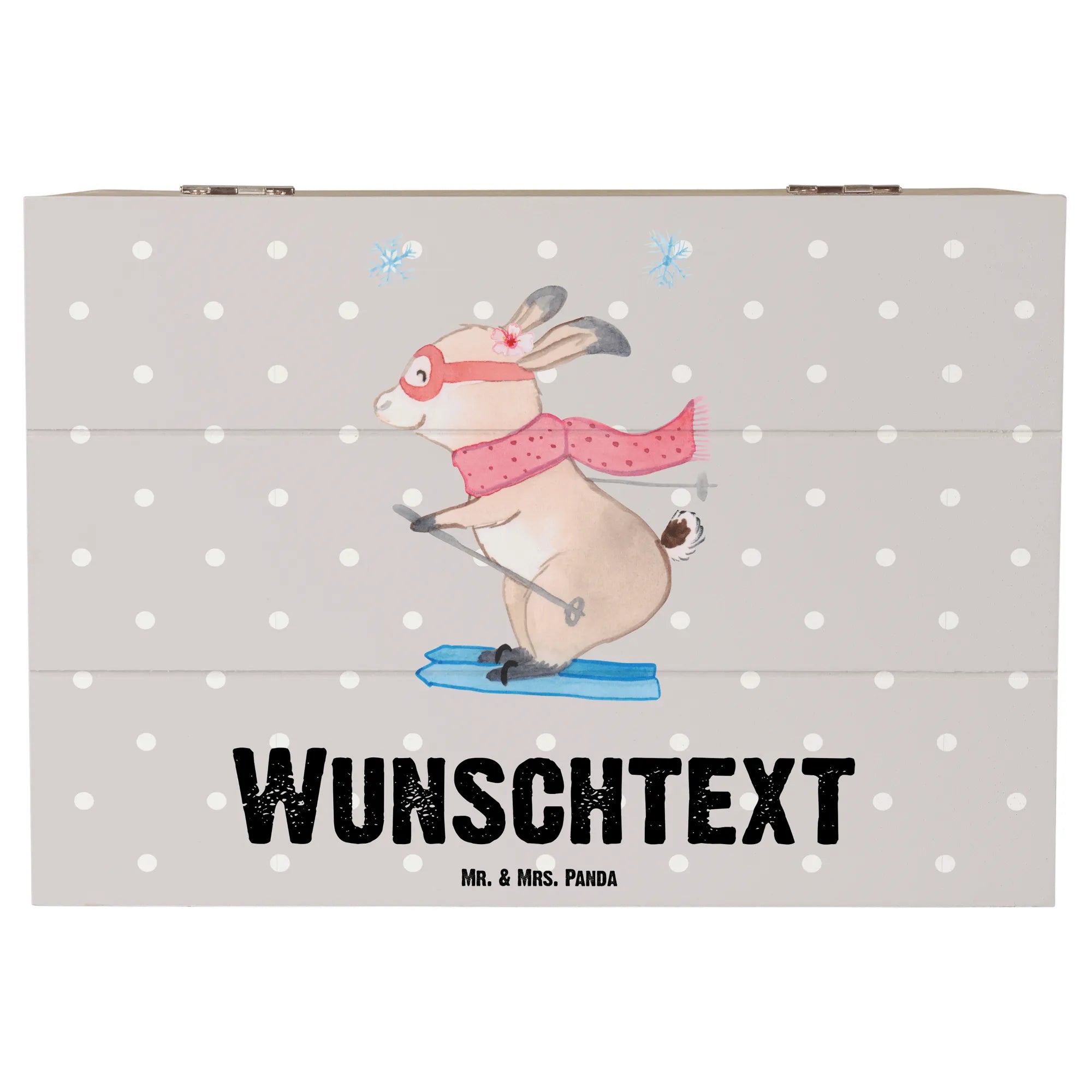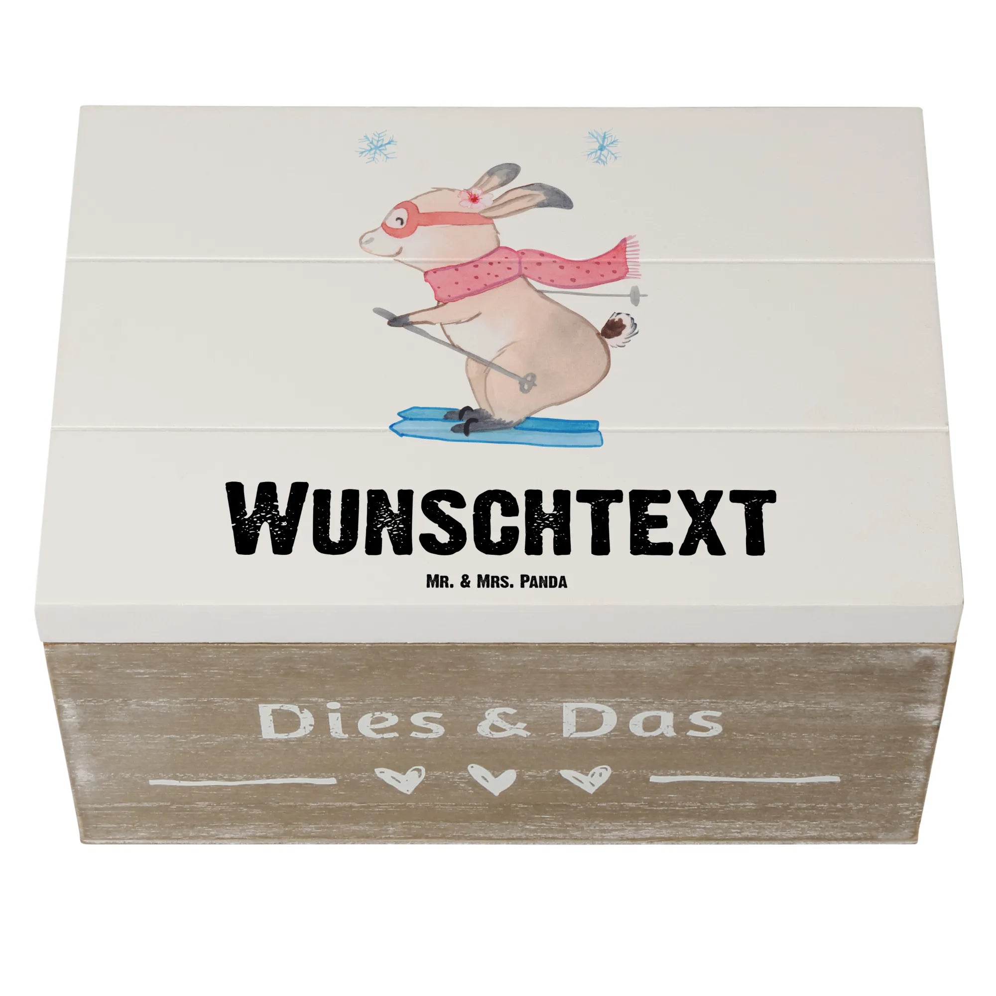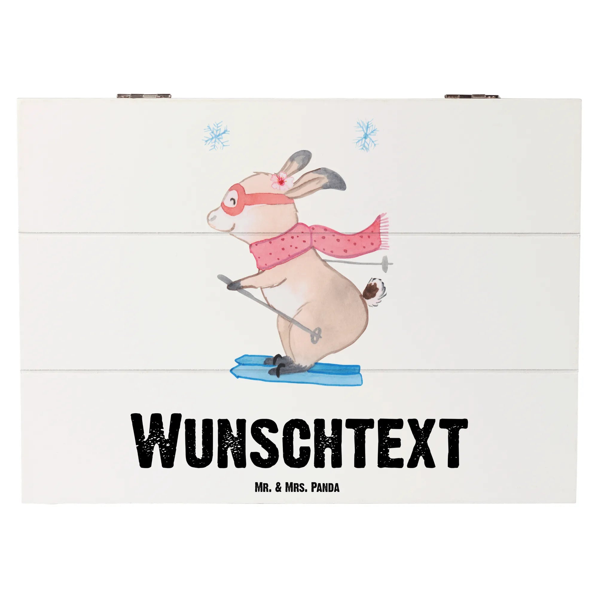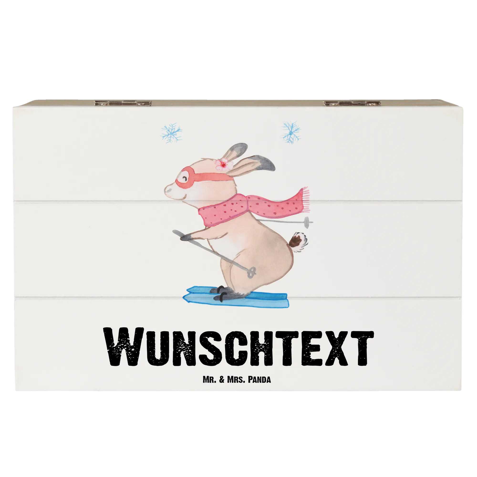 Personalizowane drewniane pudełko królik narciarstwo - 22 x 15 cm - biały