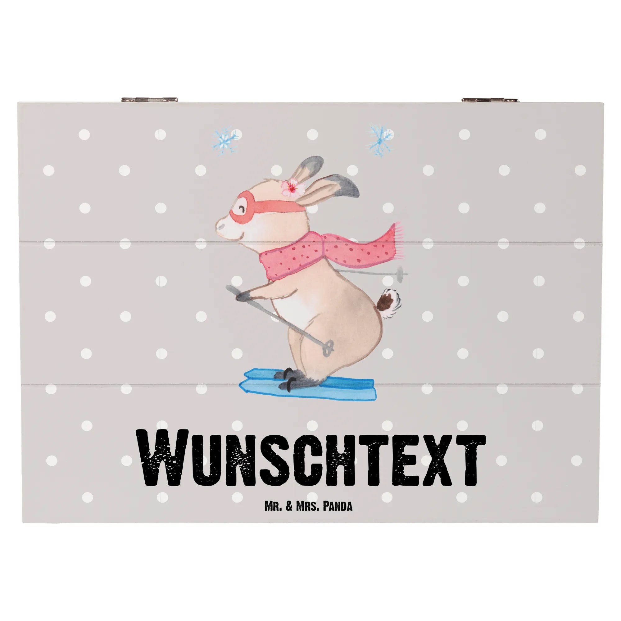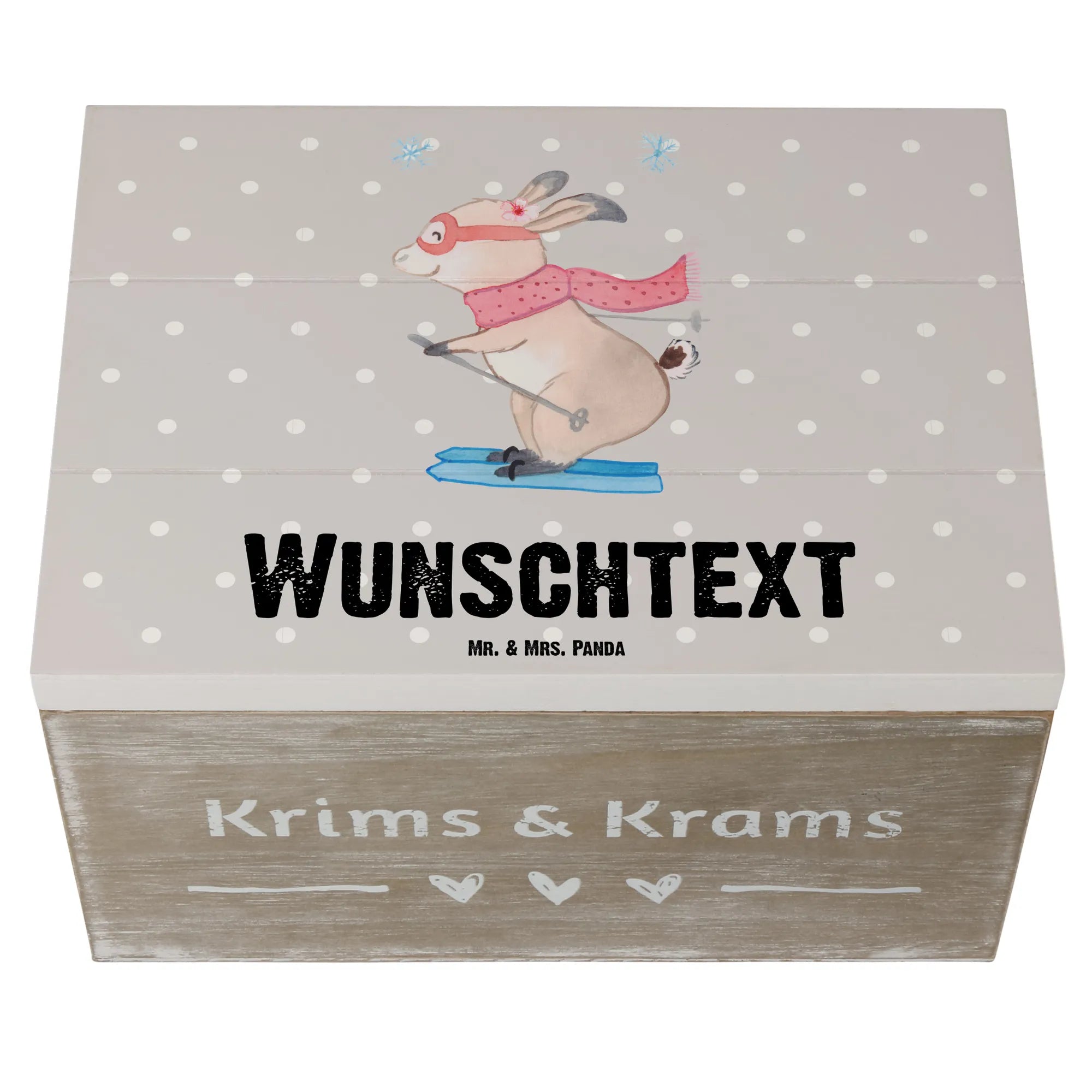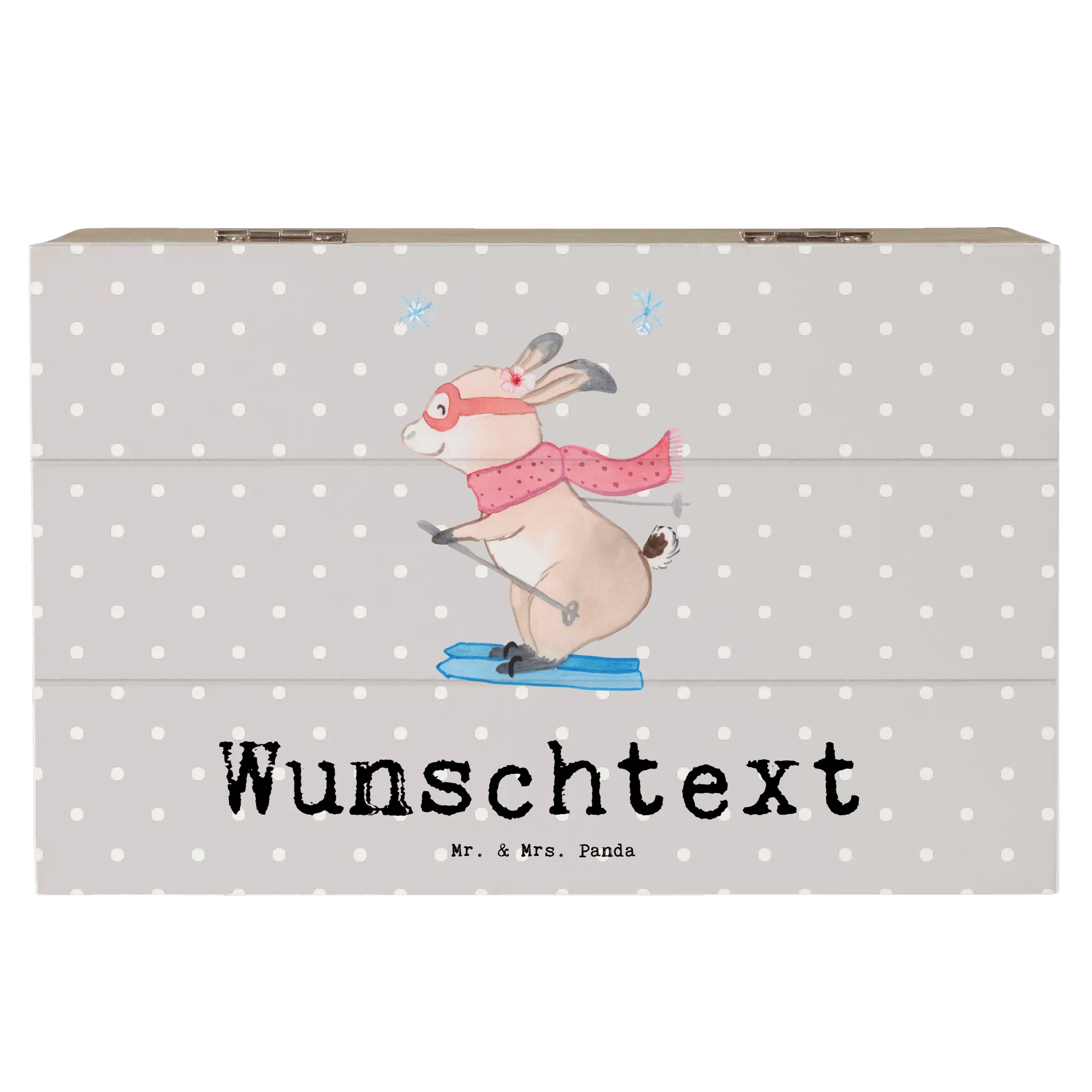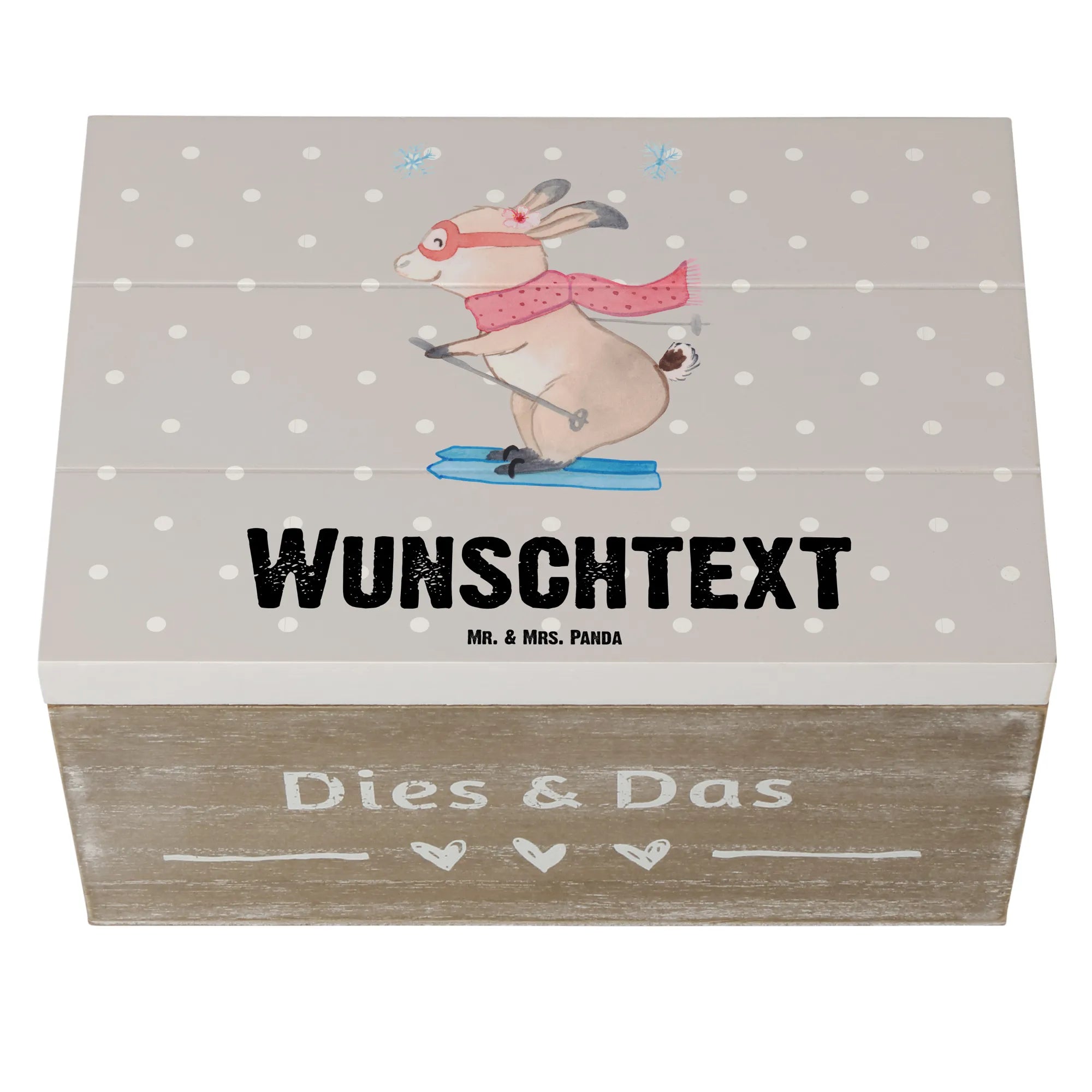 Personalizowane drewniane pudełko królik narciarstwo - 22 x 15 cm - biały