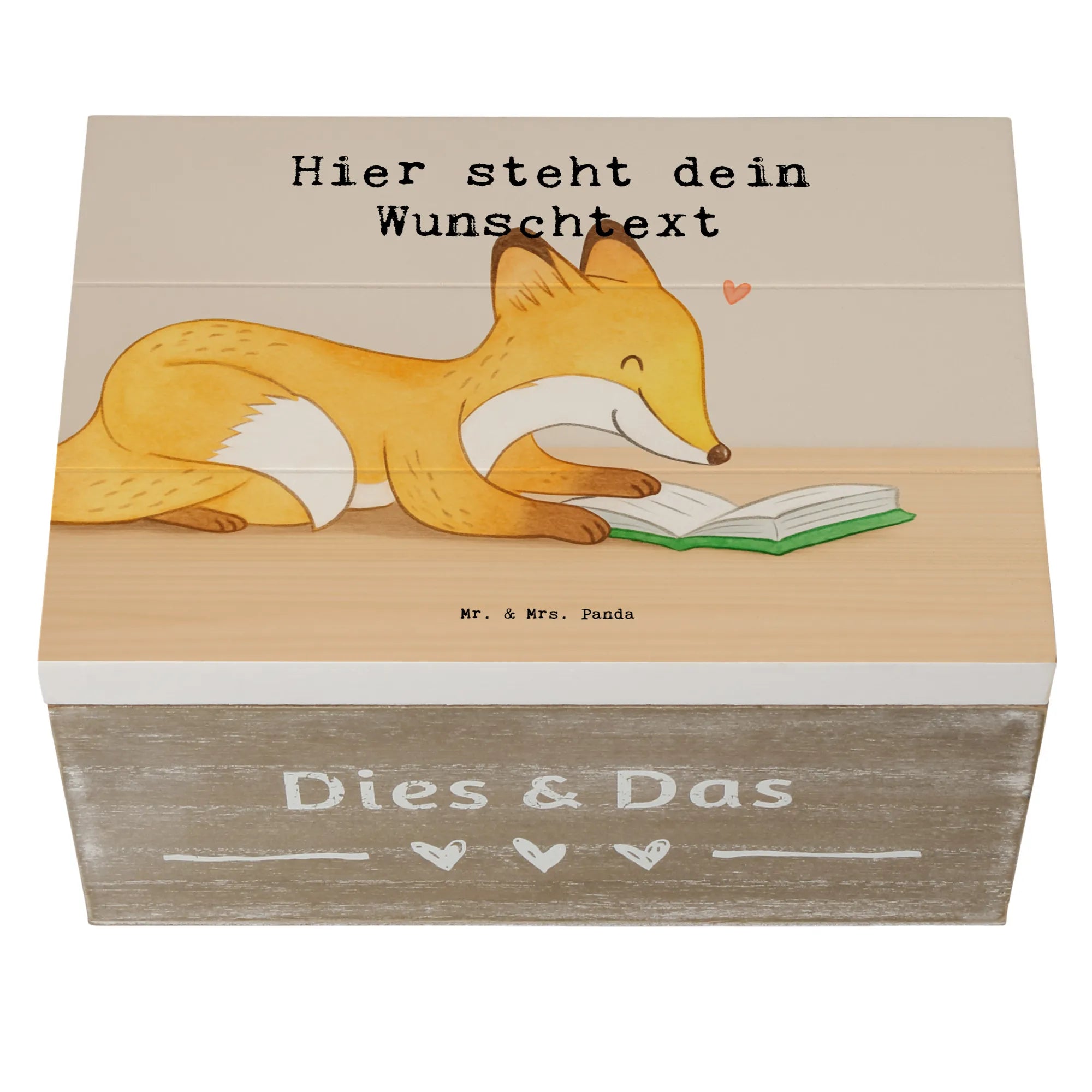 Personalizowane drewniane pudełko Lis czytać Design - 22 x 15 cm