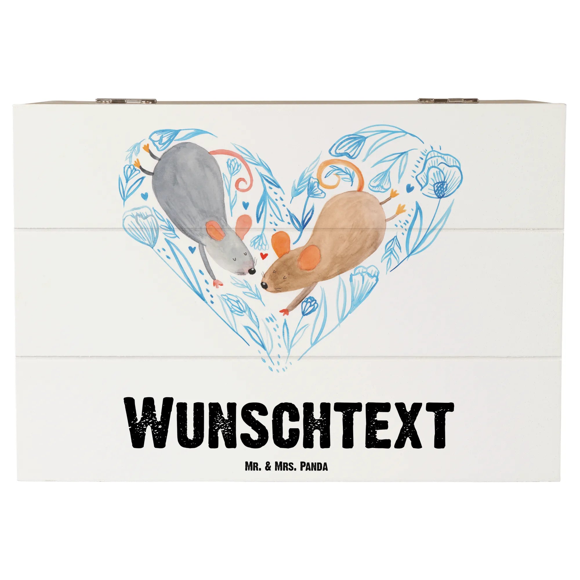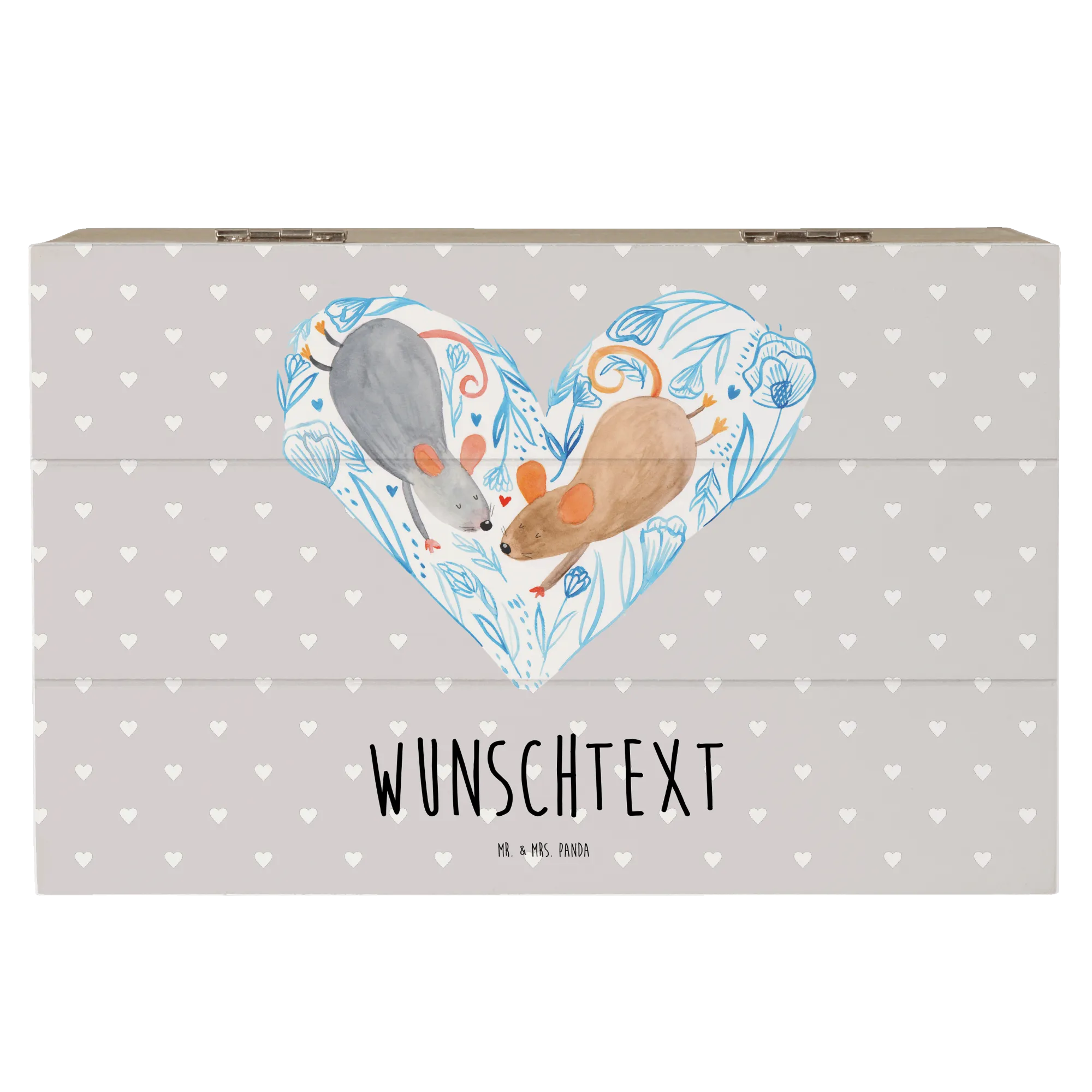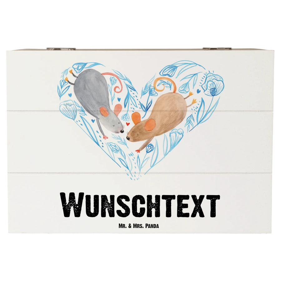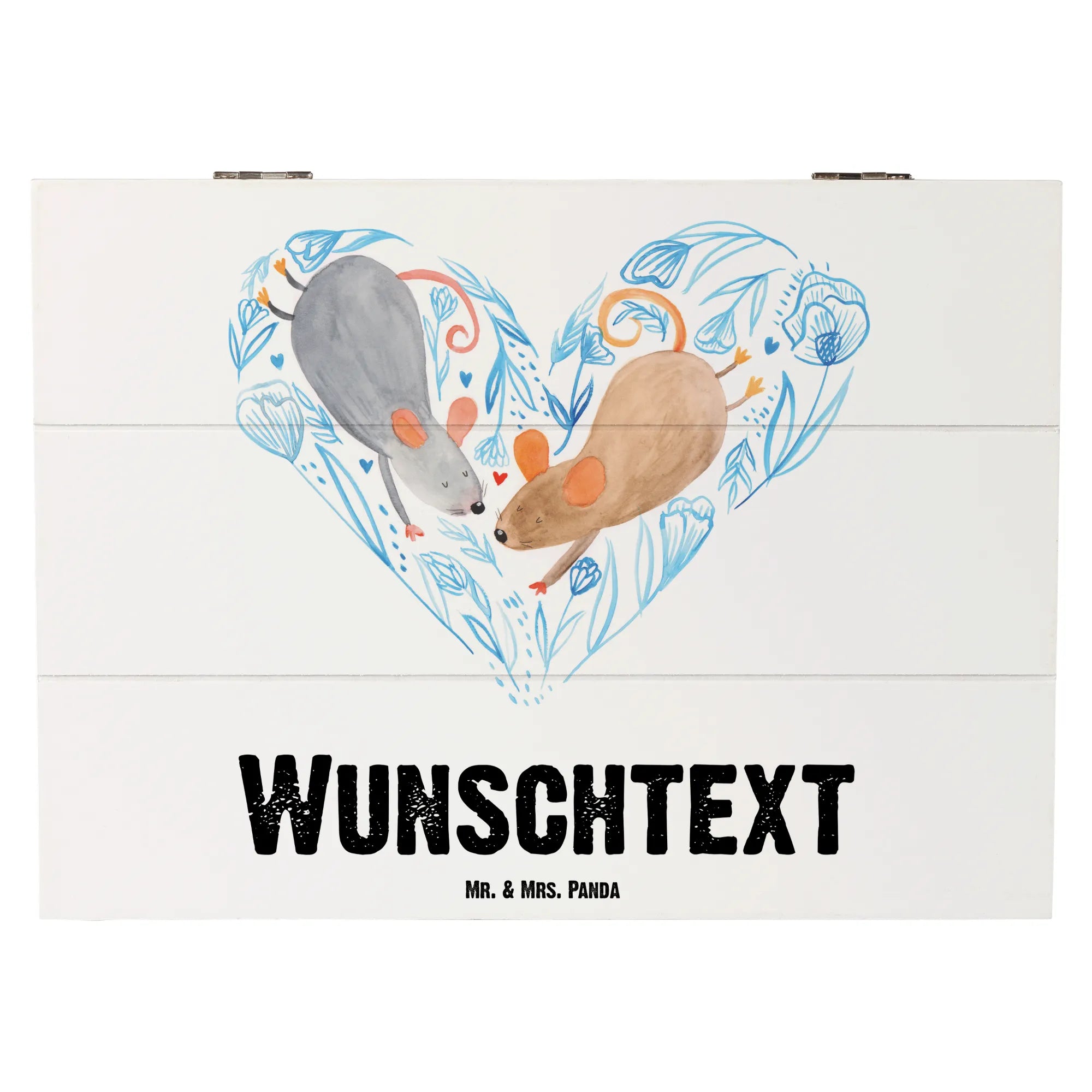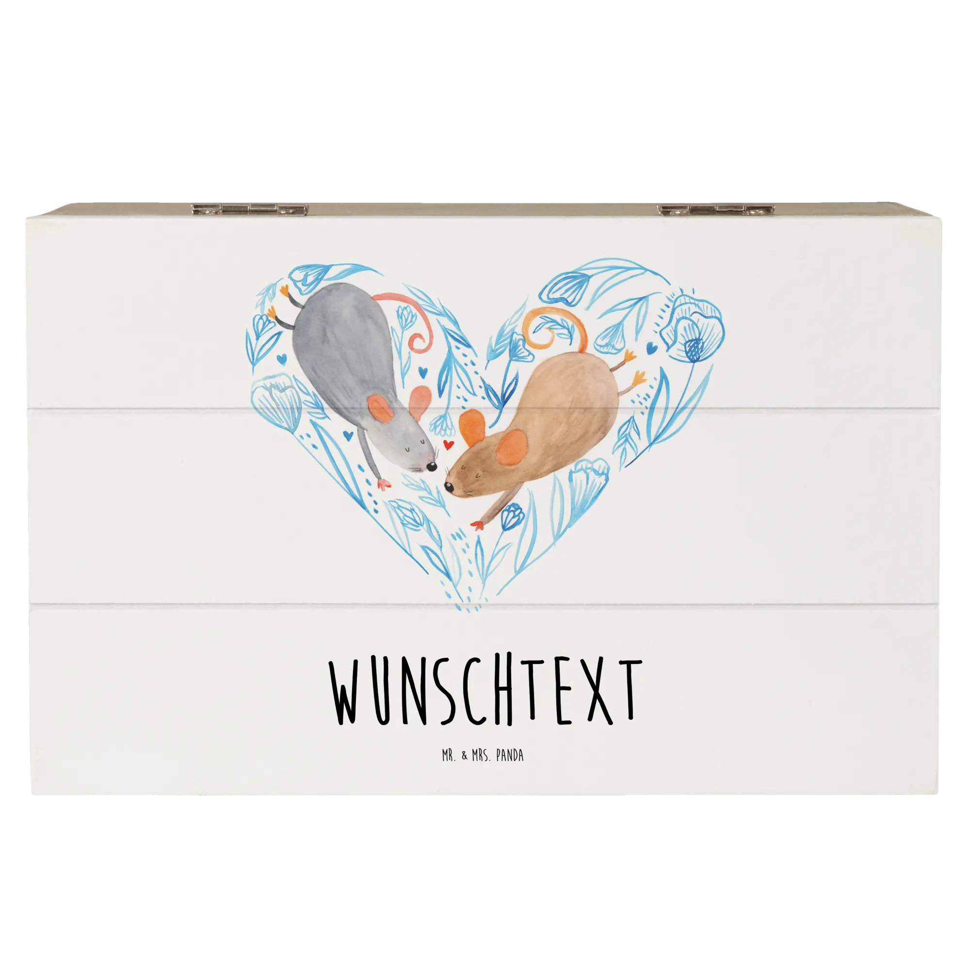Personalizowane drewniane pudełko Myszy serce - 22 x 15 cm - biały