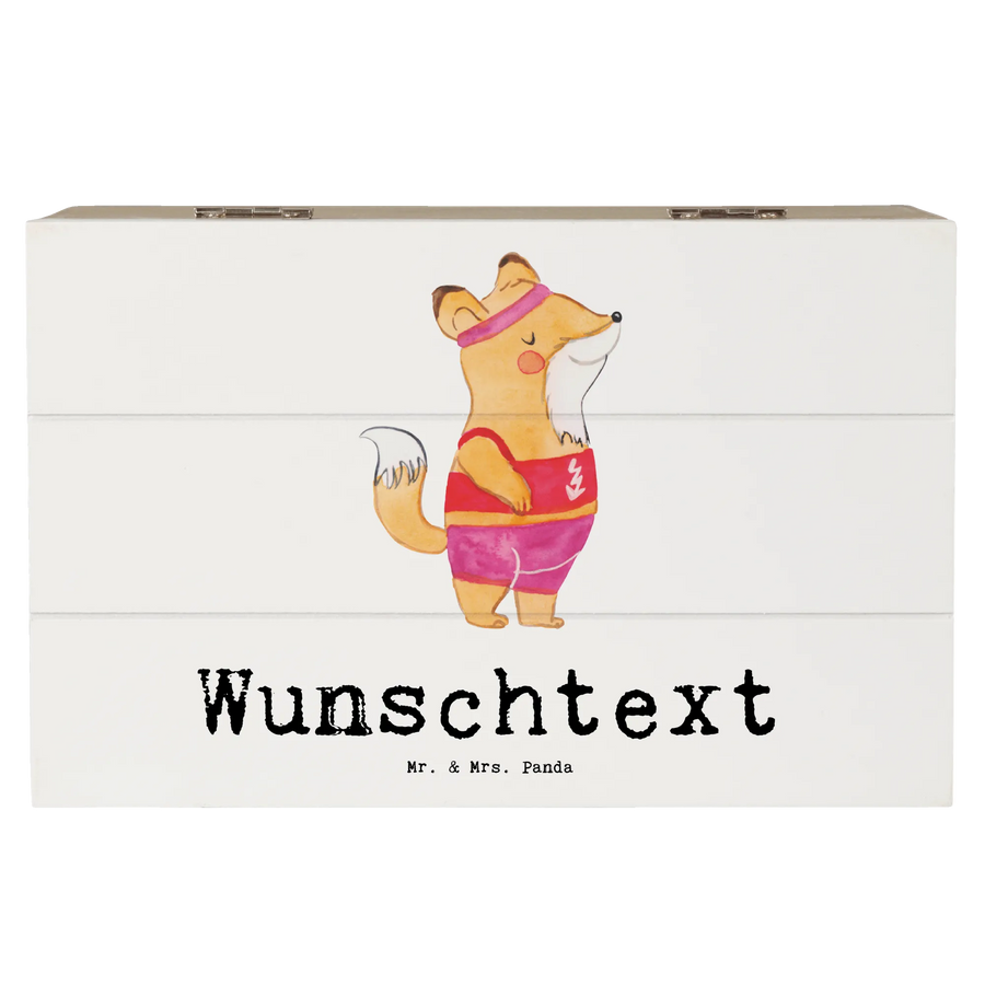 Personalizowane drewniane pudełko nauczycielka wychowania fizycznego Serce - 19 x 12 cm - biały