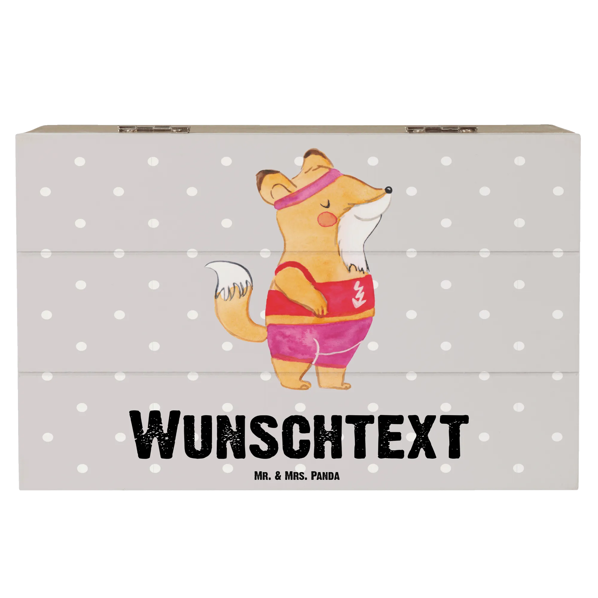 Personalizowane drewniane pudełko nauczycielka wychowania fizycznego Serce - 22 x 15 cm - Szary Pastel