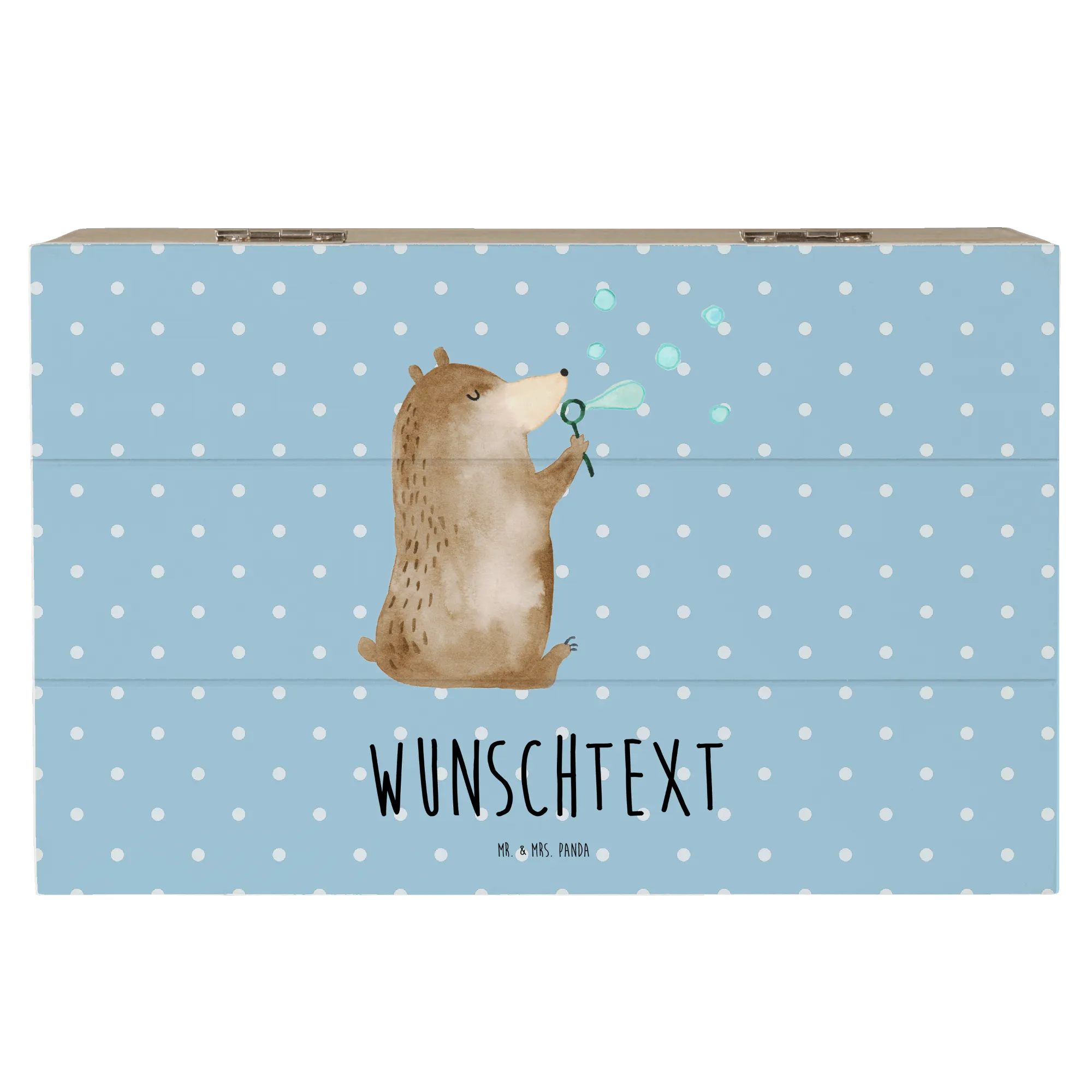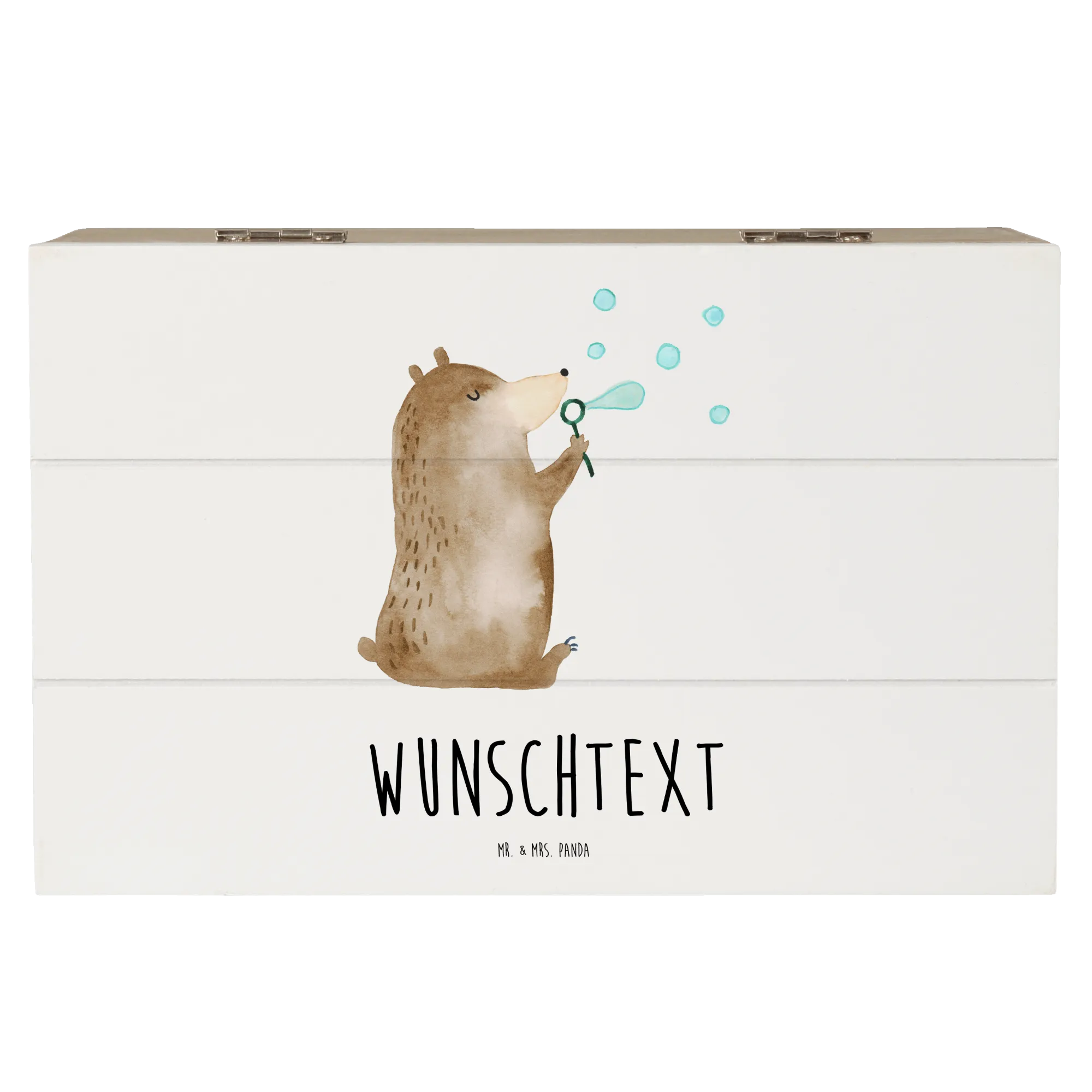 Personalizowane drewniane pudełko niedźwiedź bańki mydlane - 22 x 15 cm - biały
