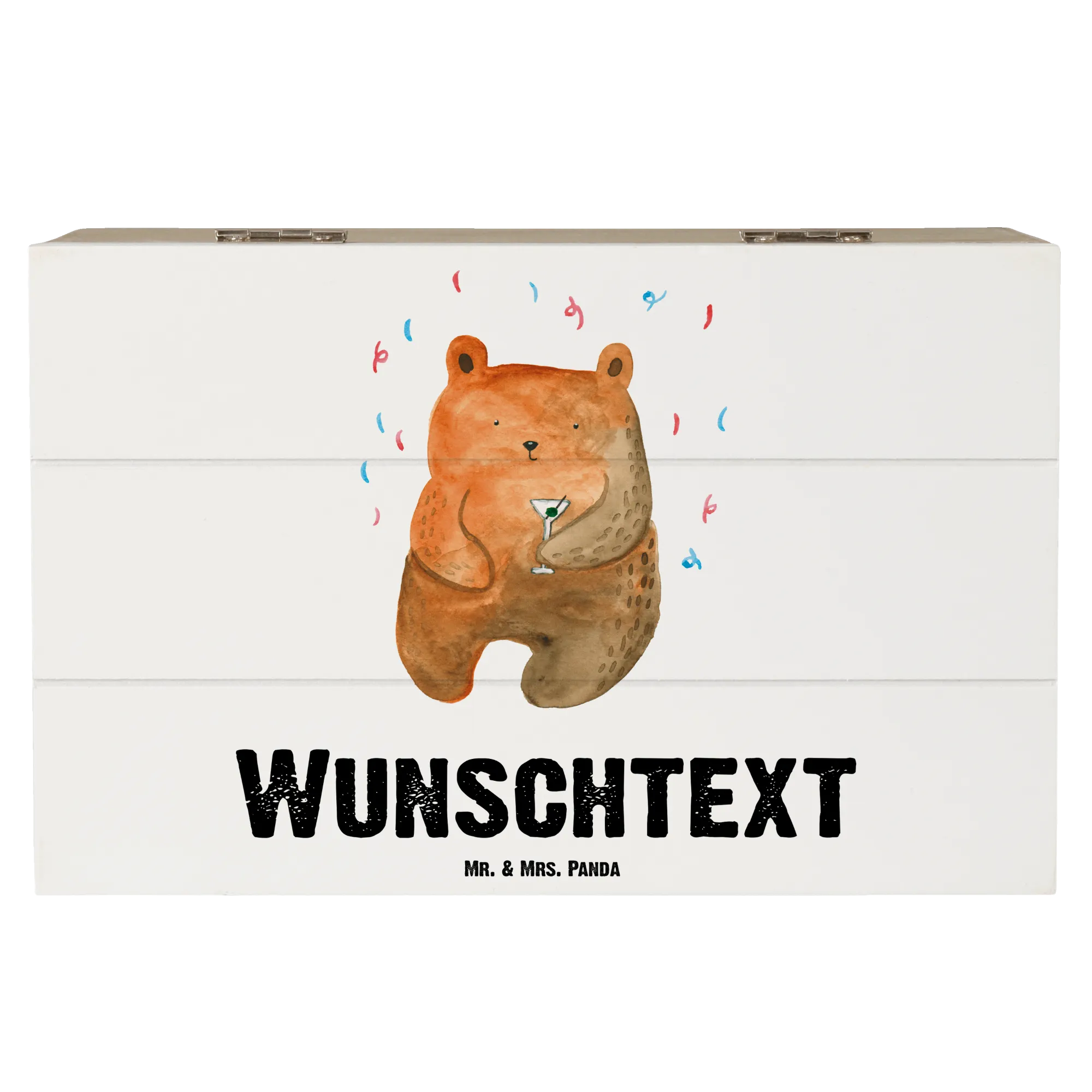 Personalizowane drewniane pudełko Niedźwiedź Impreza - 22 x 15 cm - biały