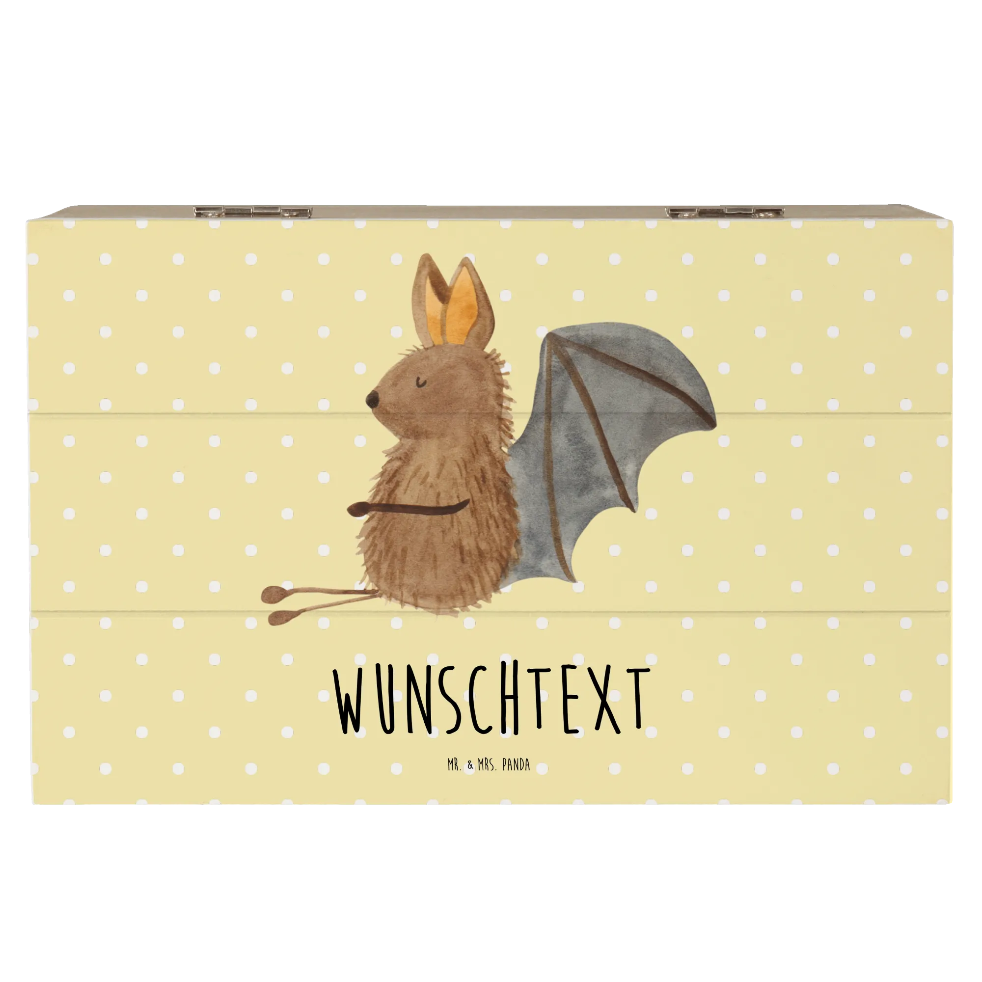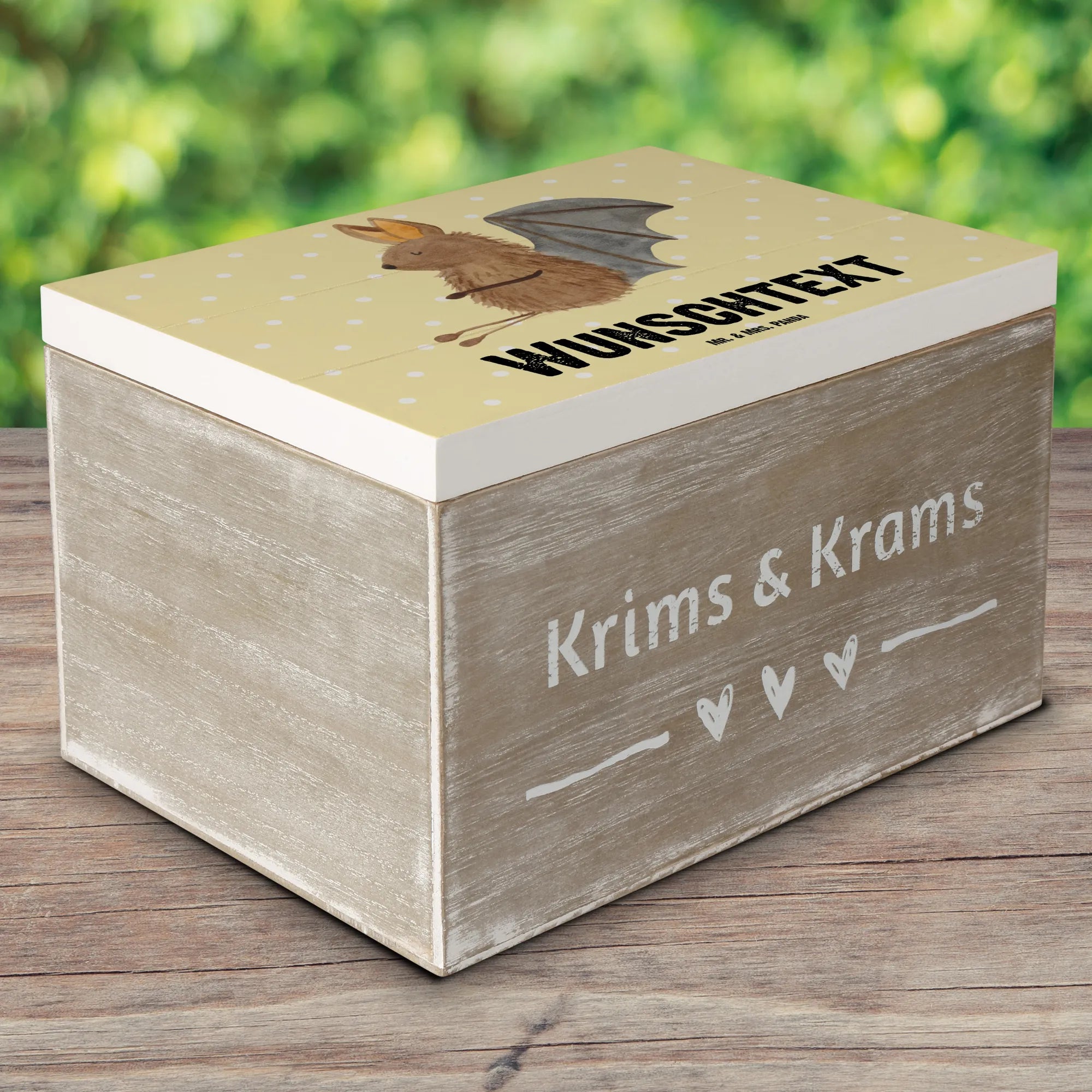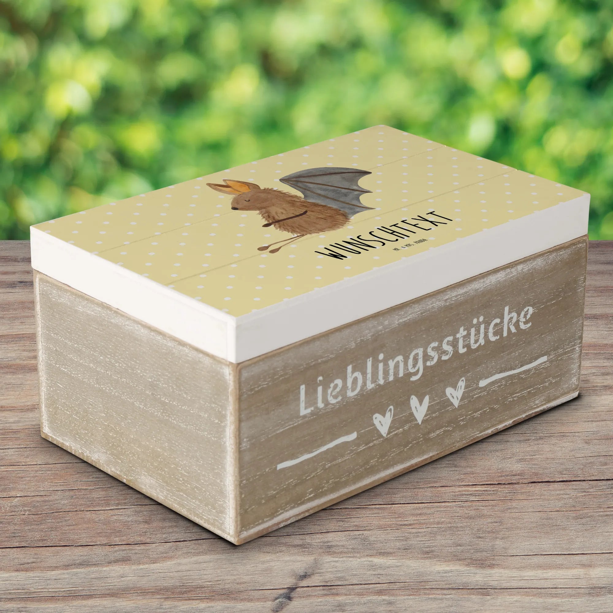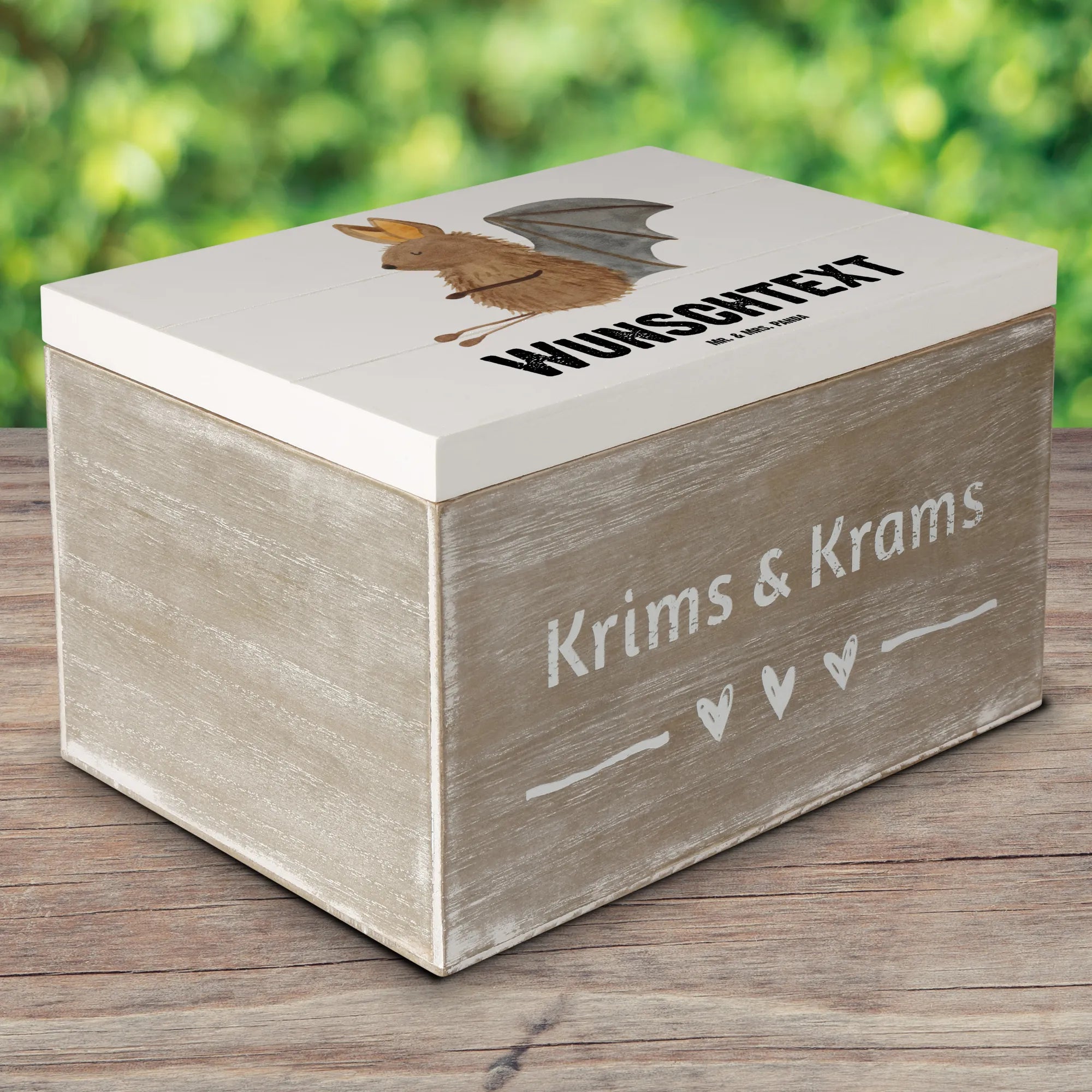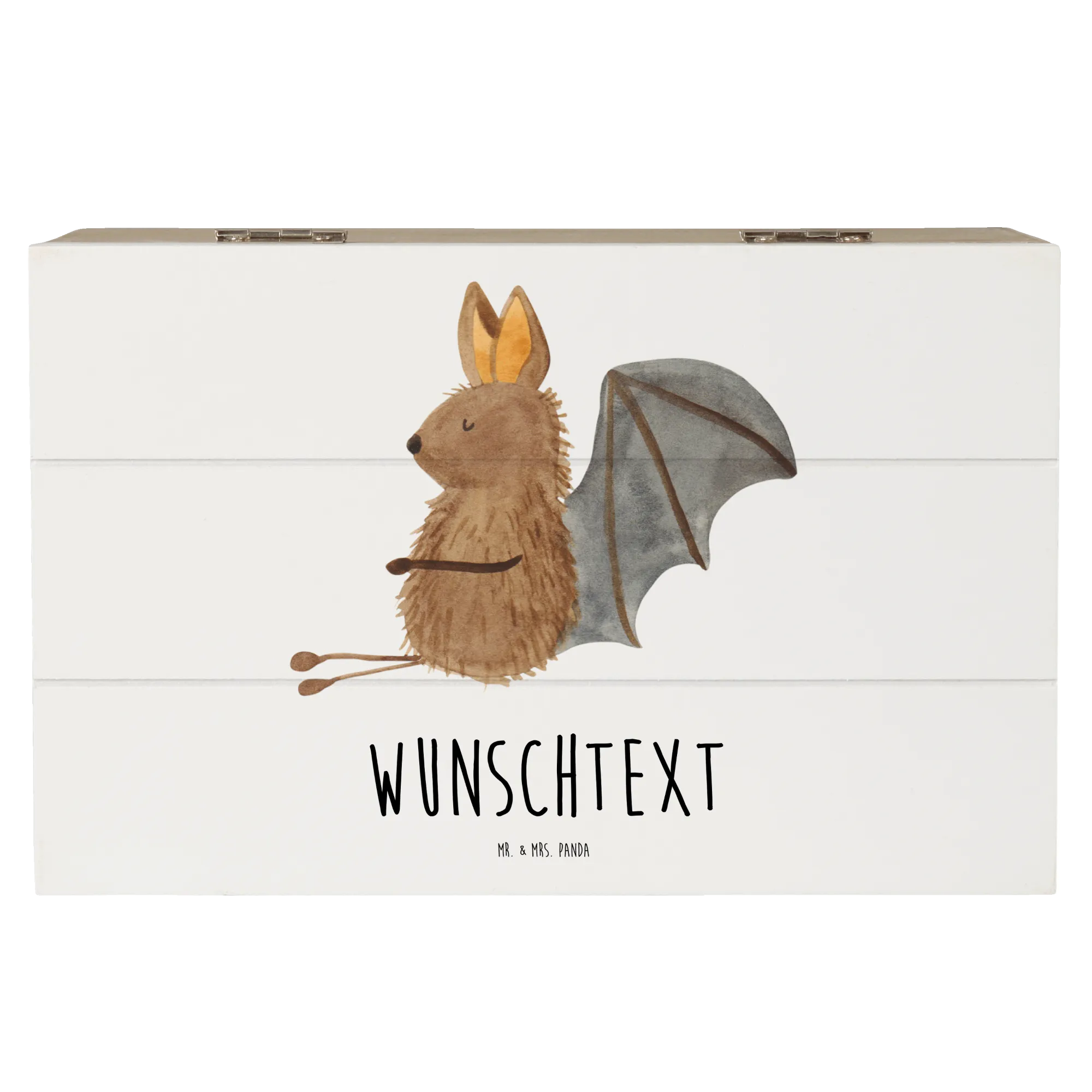 Personalizowane drewniane pudełko Nietoperz siedzenie - 22 x 15 cm - biały