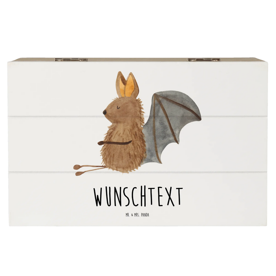 Personalizowane drewniane pudełko Nietoperz siedzenie - 19 x 12 cm - biały