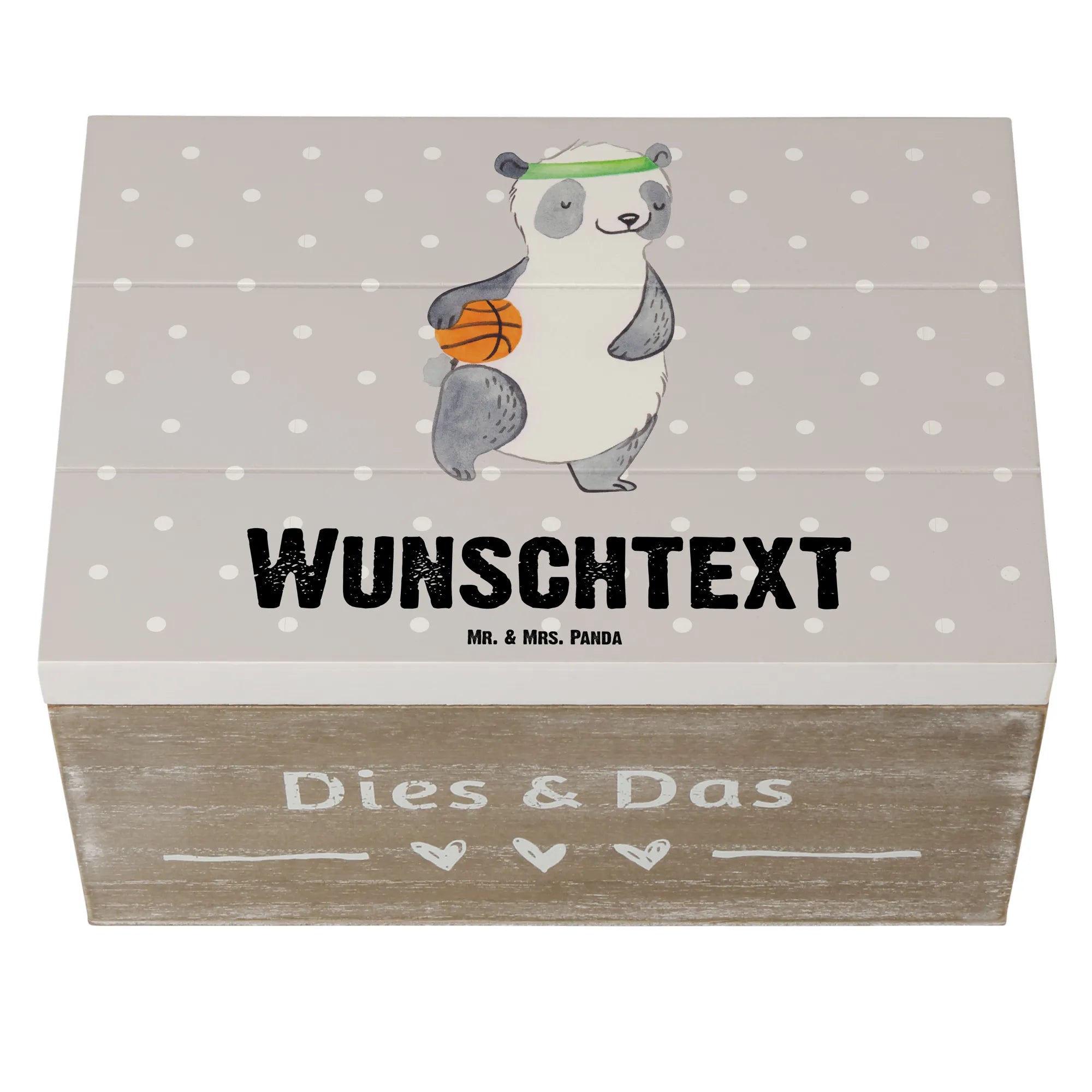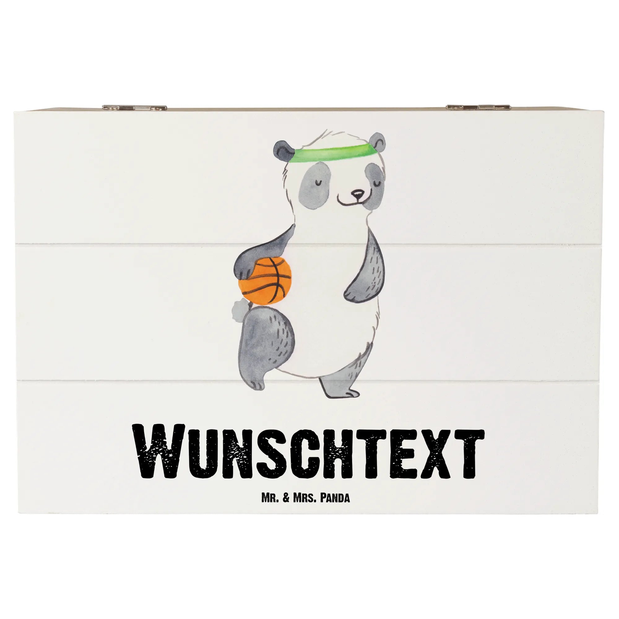 Personalizowane drewniane pudełko Panda koszykówka - 19 x 12 cm - biały