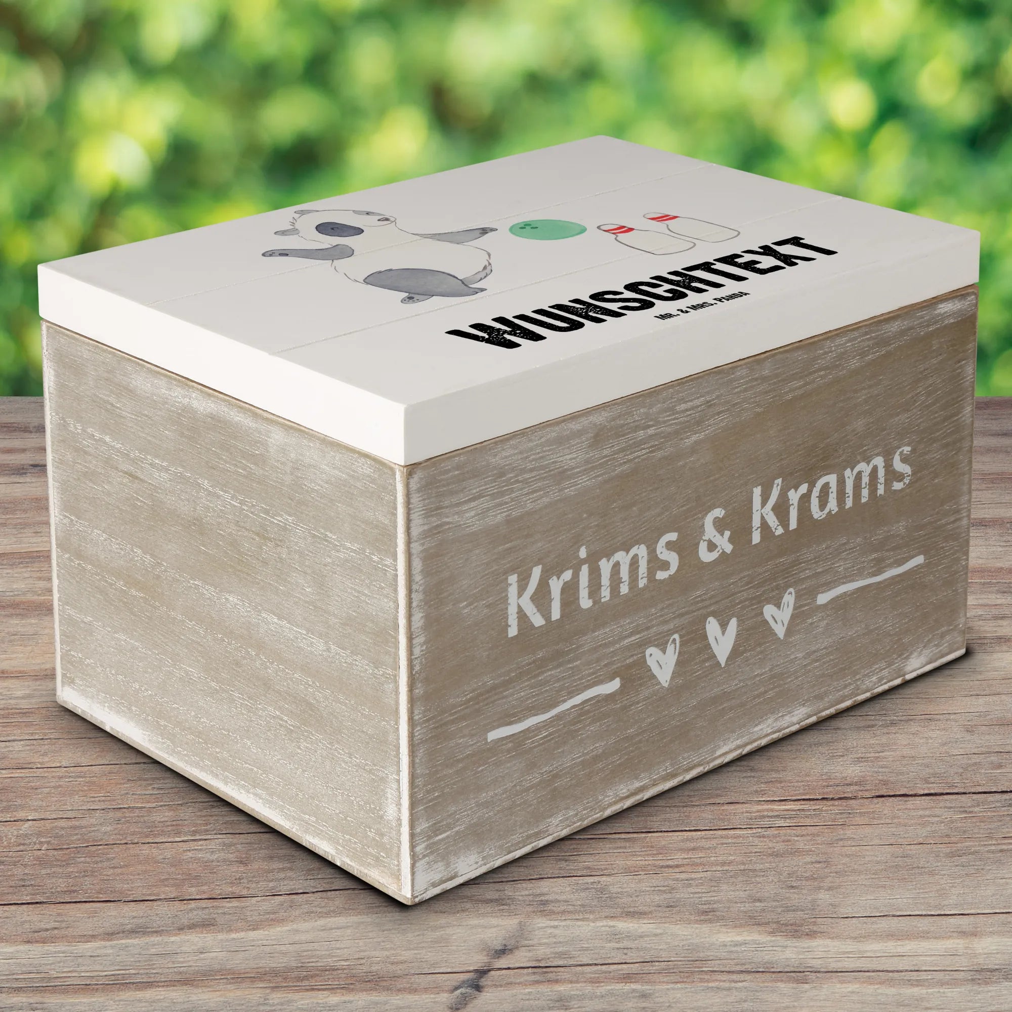 Personalizowane drewniane pudełko Panda kręgle - 22 x 15 cm - biały