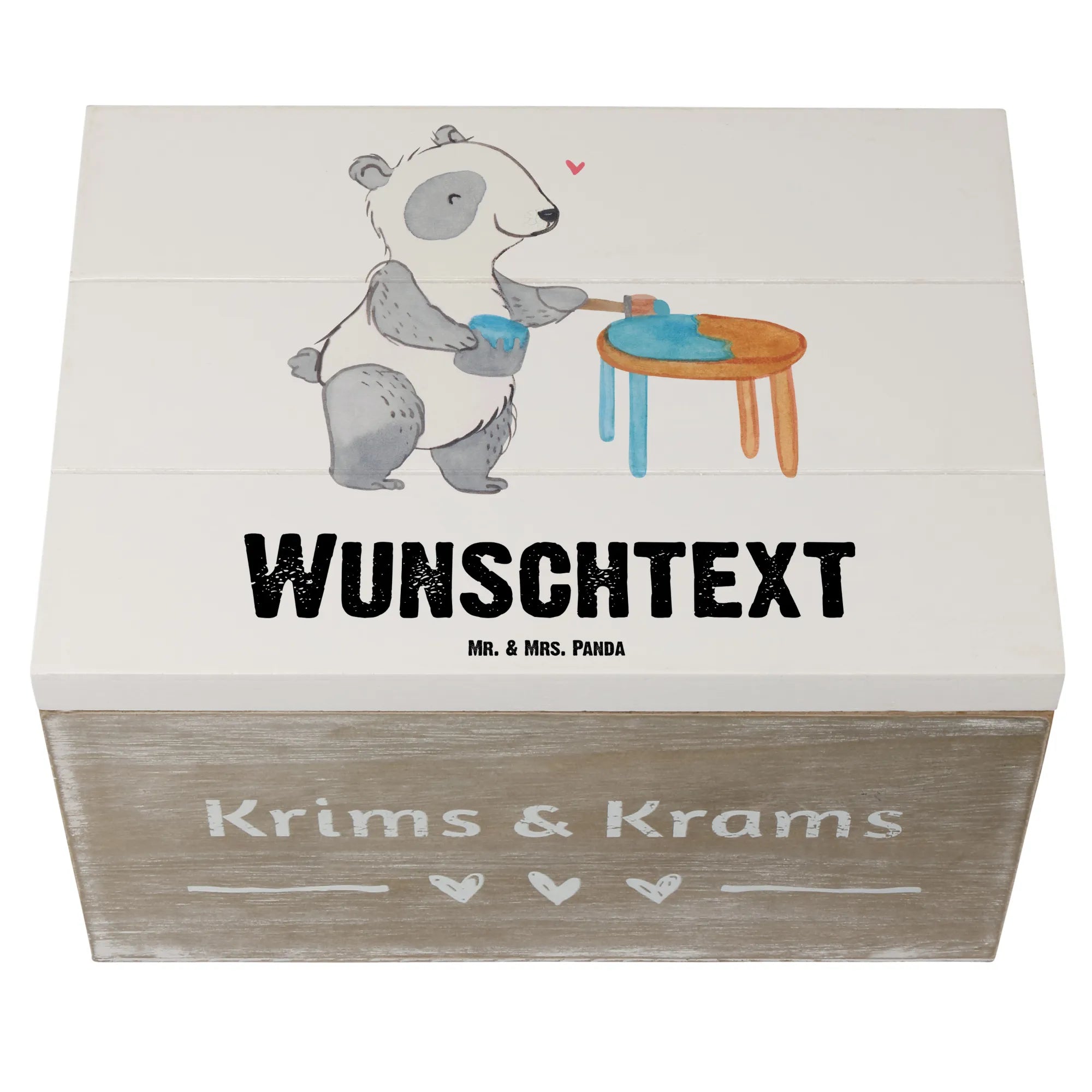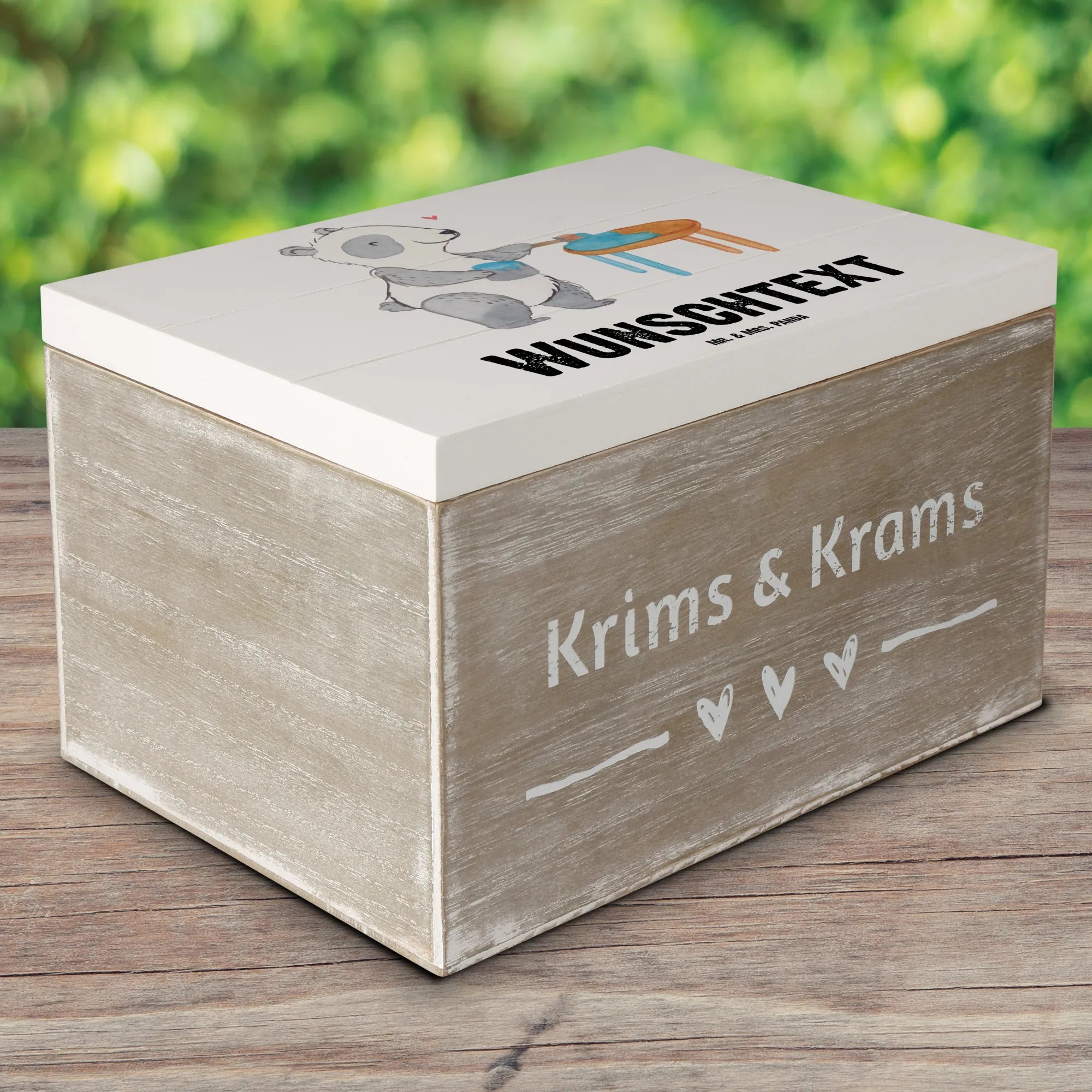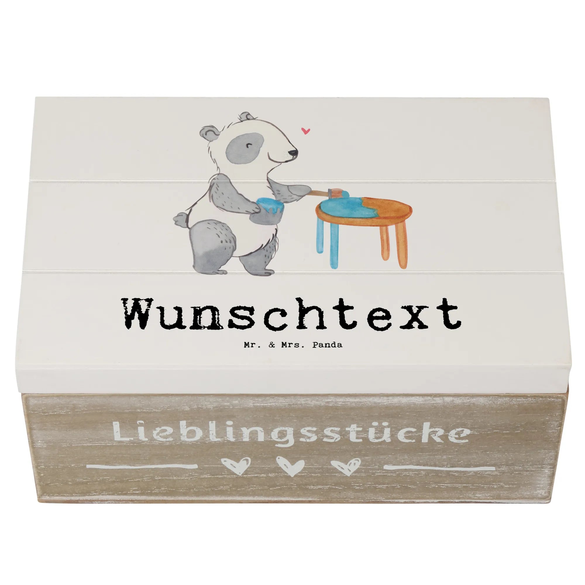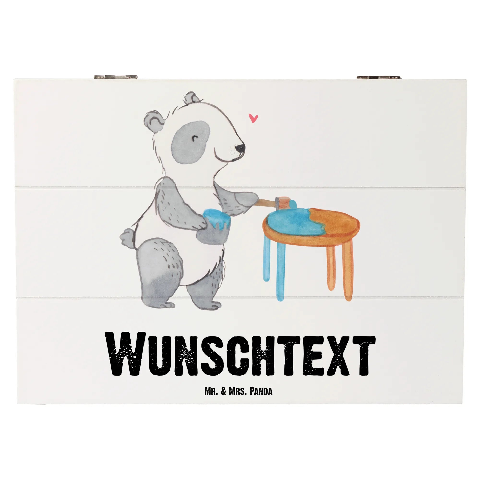 Personalizowane drewniane pudełko Panda Renowacja mebli - 22 x 15 cm - biały
