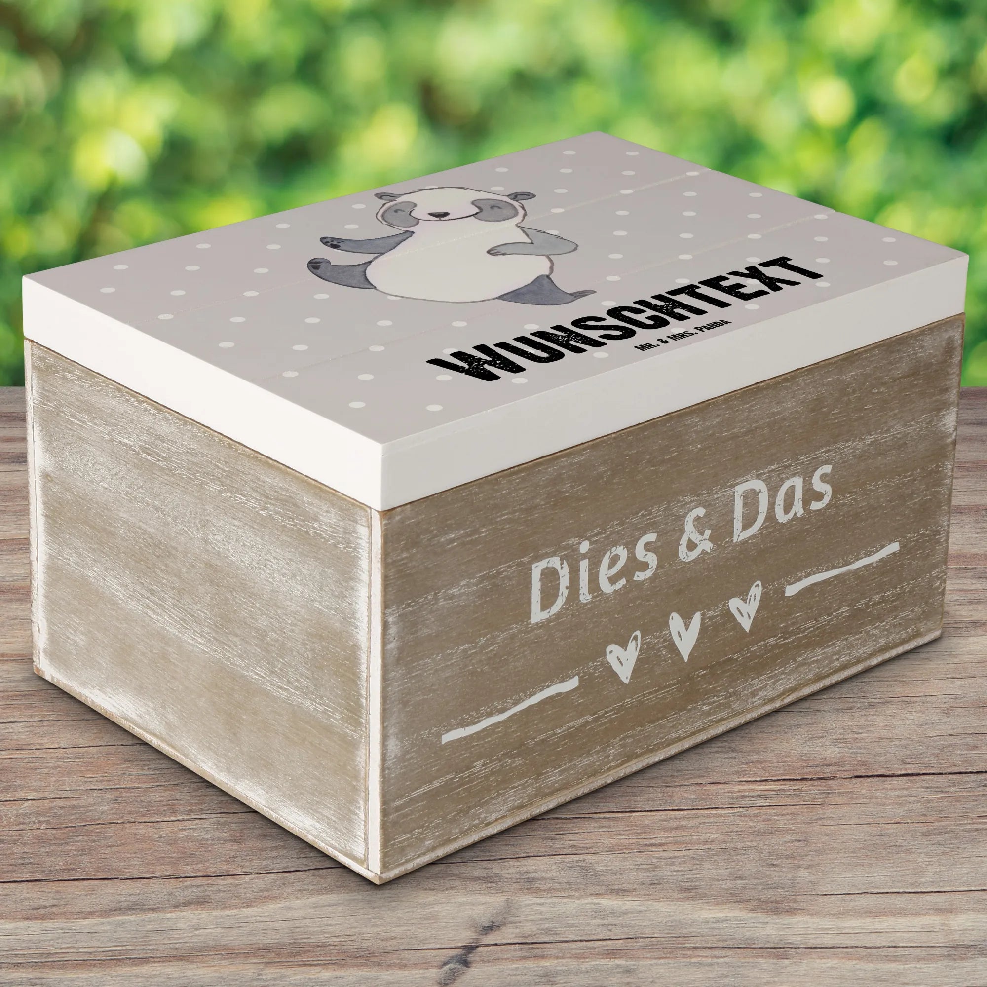 Personalizowane drewniane pudełko Panda sztuka walki - 22 x 15 cm - biały