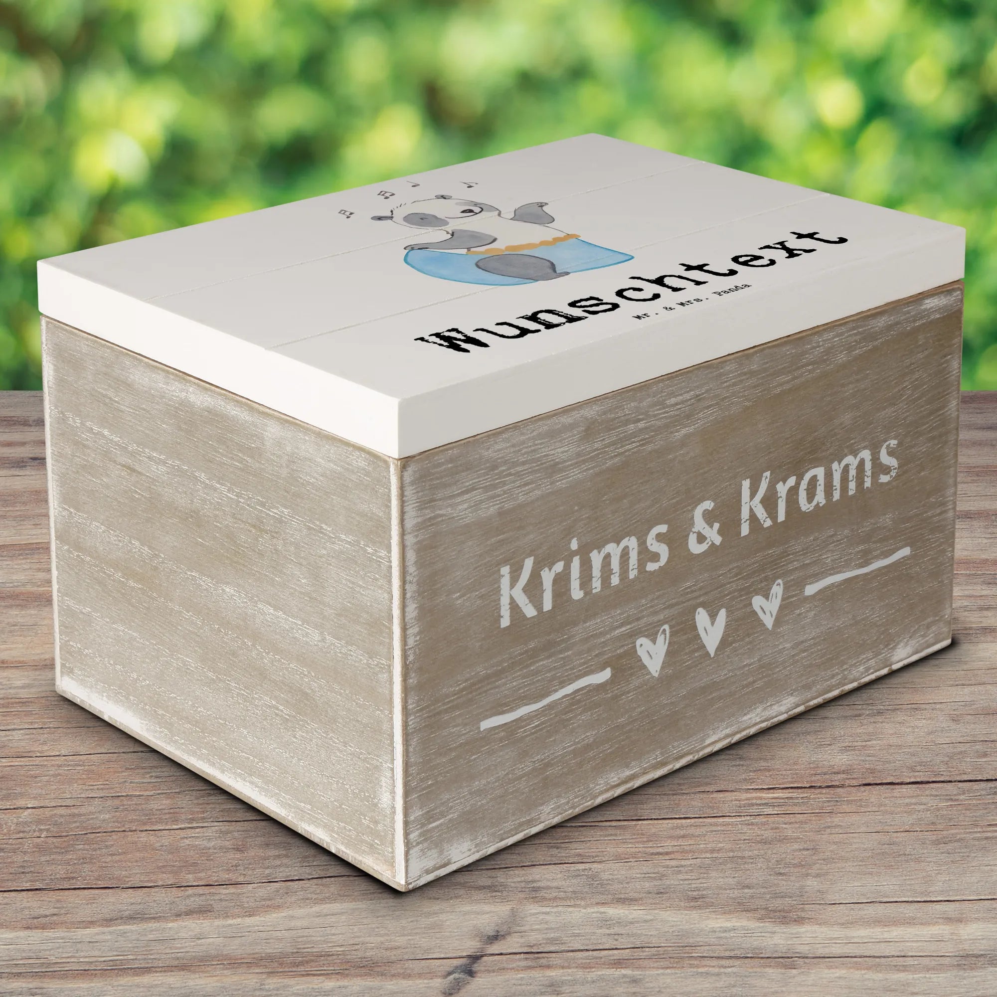 Personalizowane drewniane pudełko Panda taniec brzucha - 22 x 15 cm - biały