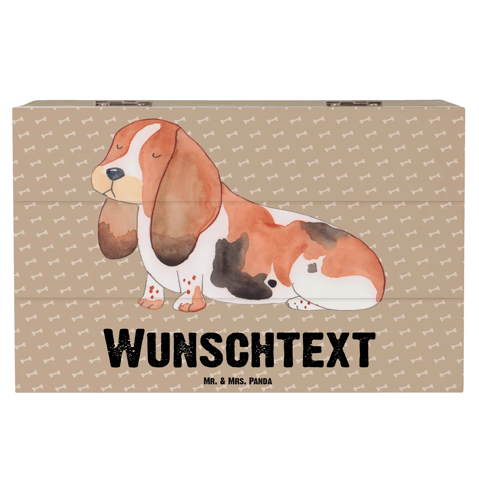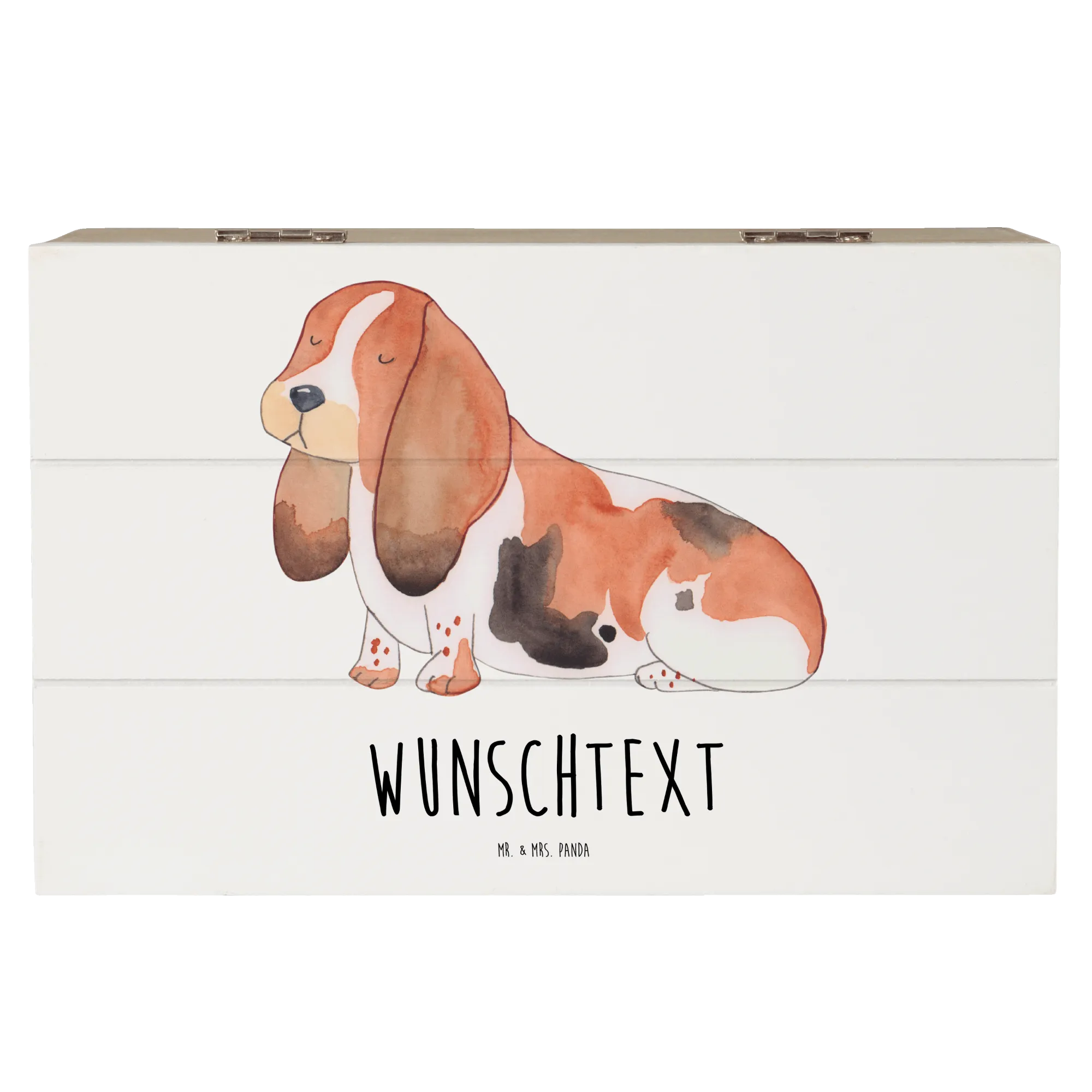 Personalizowane drewniane pudełko pies Basset Hound - 22 x 15 cm - biały