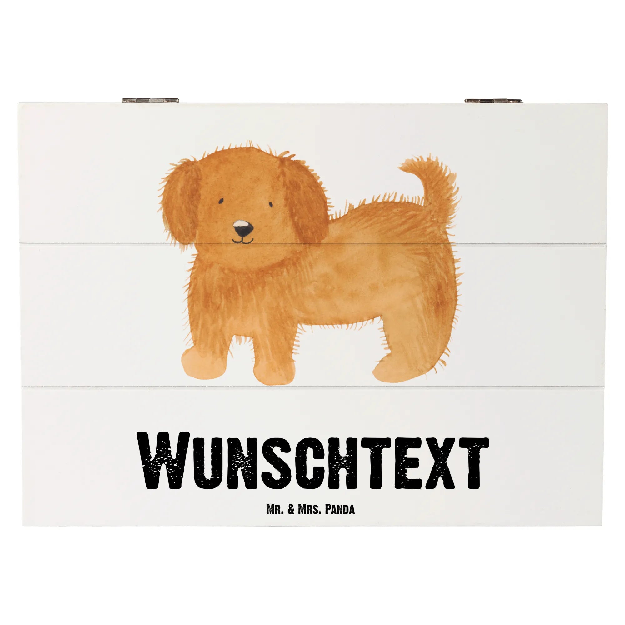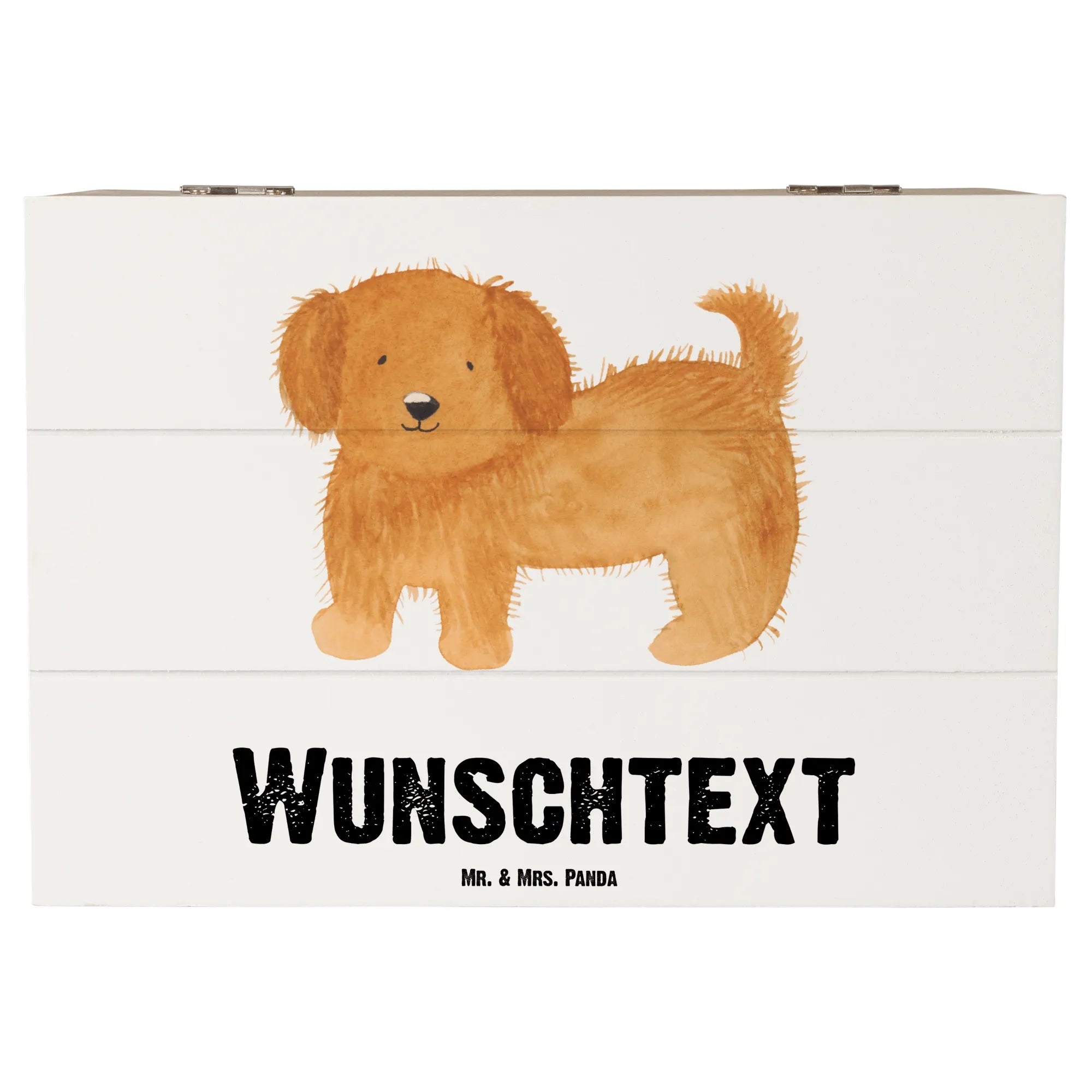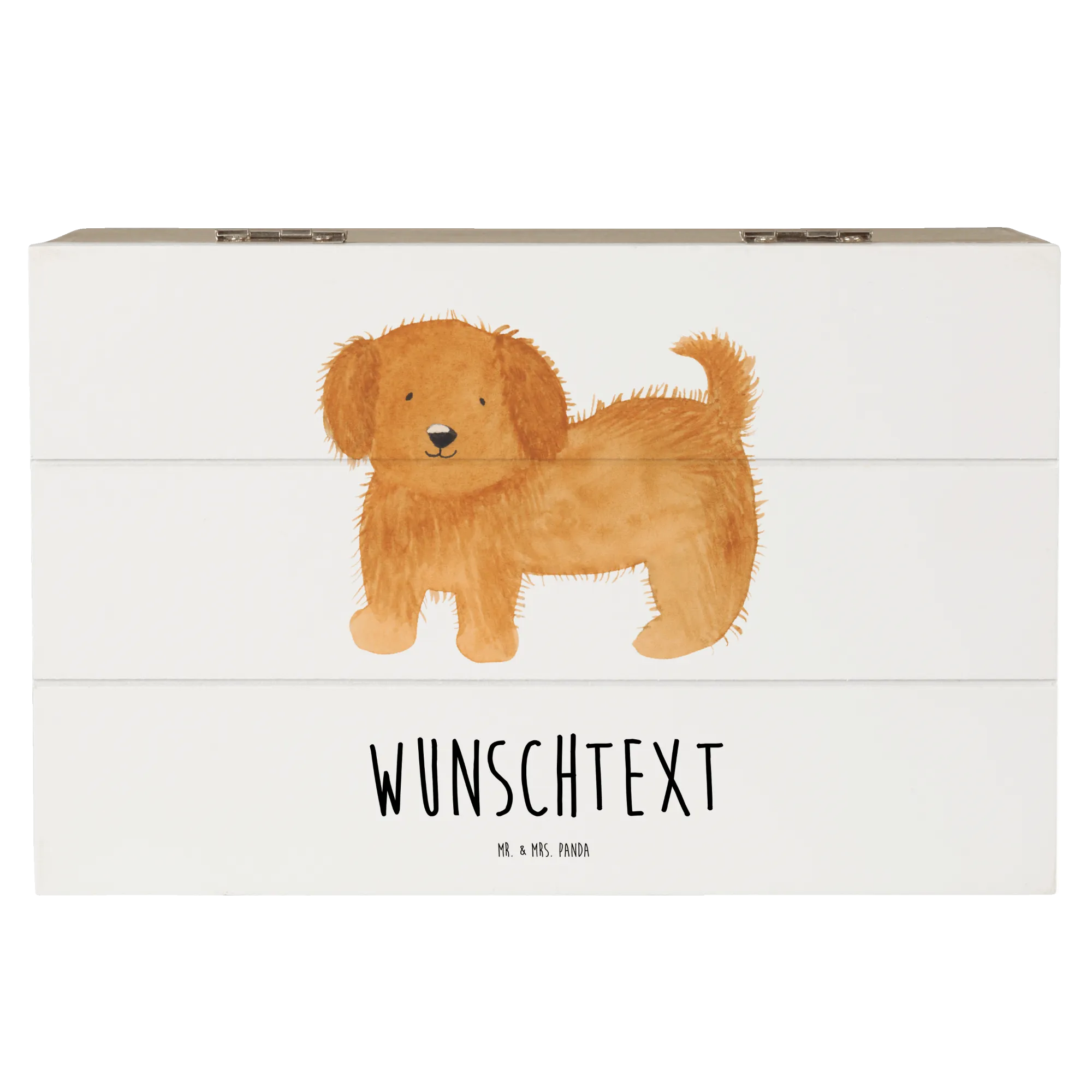Personalizowane drewniane pudełko pies puszysty - 22 x 15 cm - biały