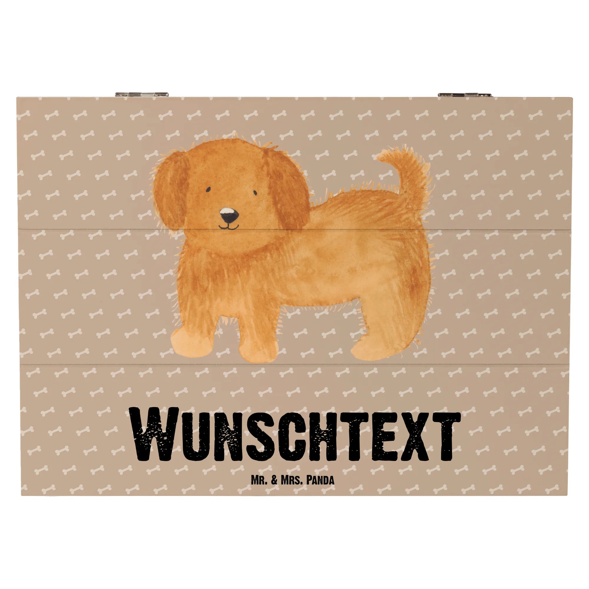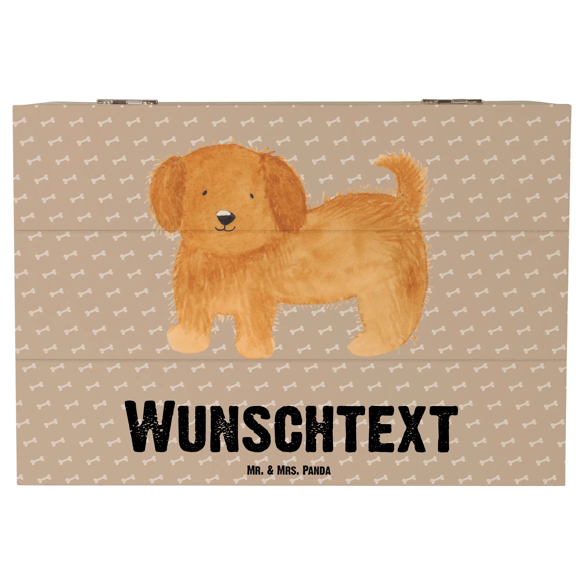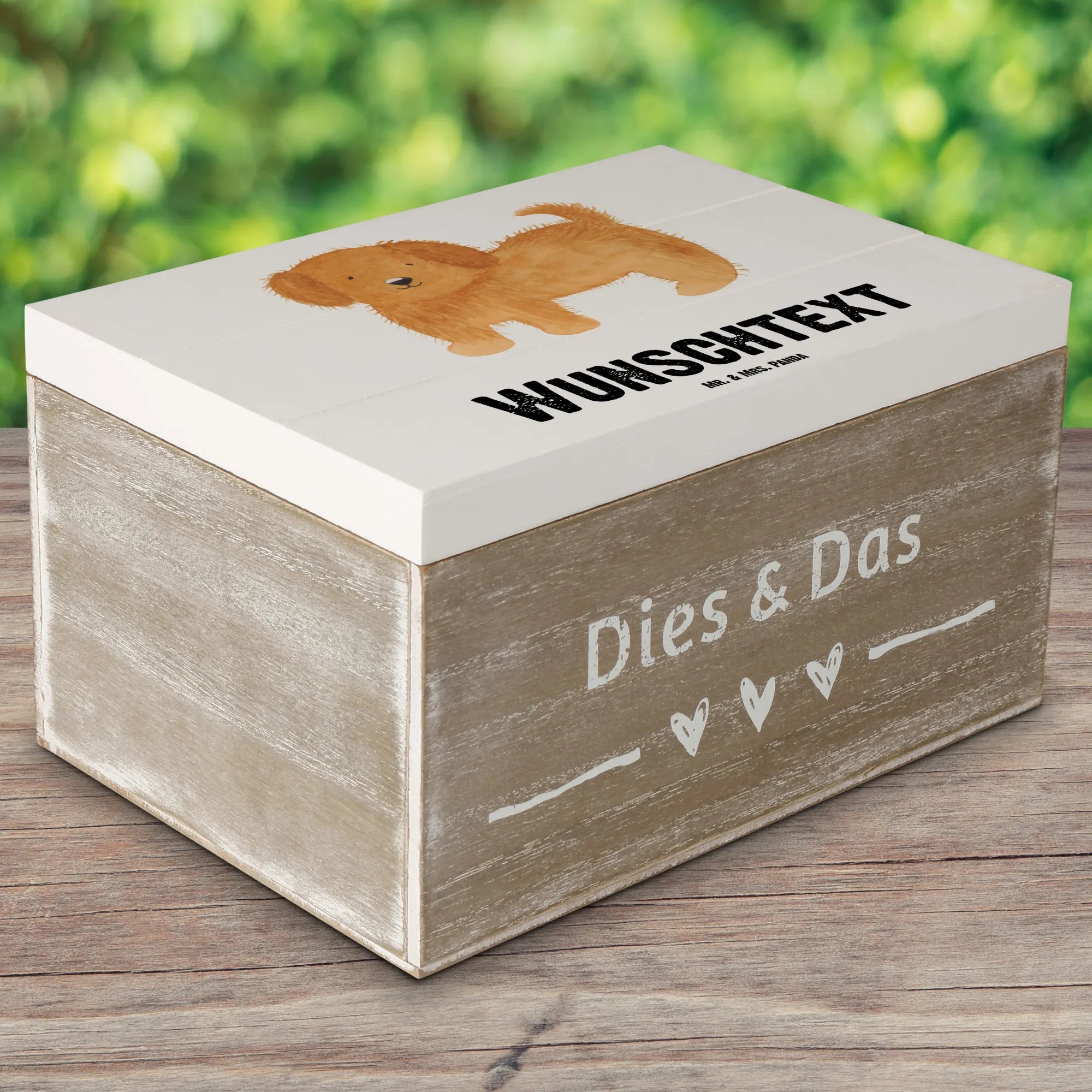 Personalizowane drewniane pudełko pies puszysty - 22 x 15 cm - biały