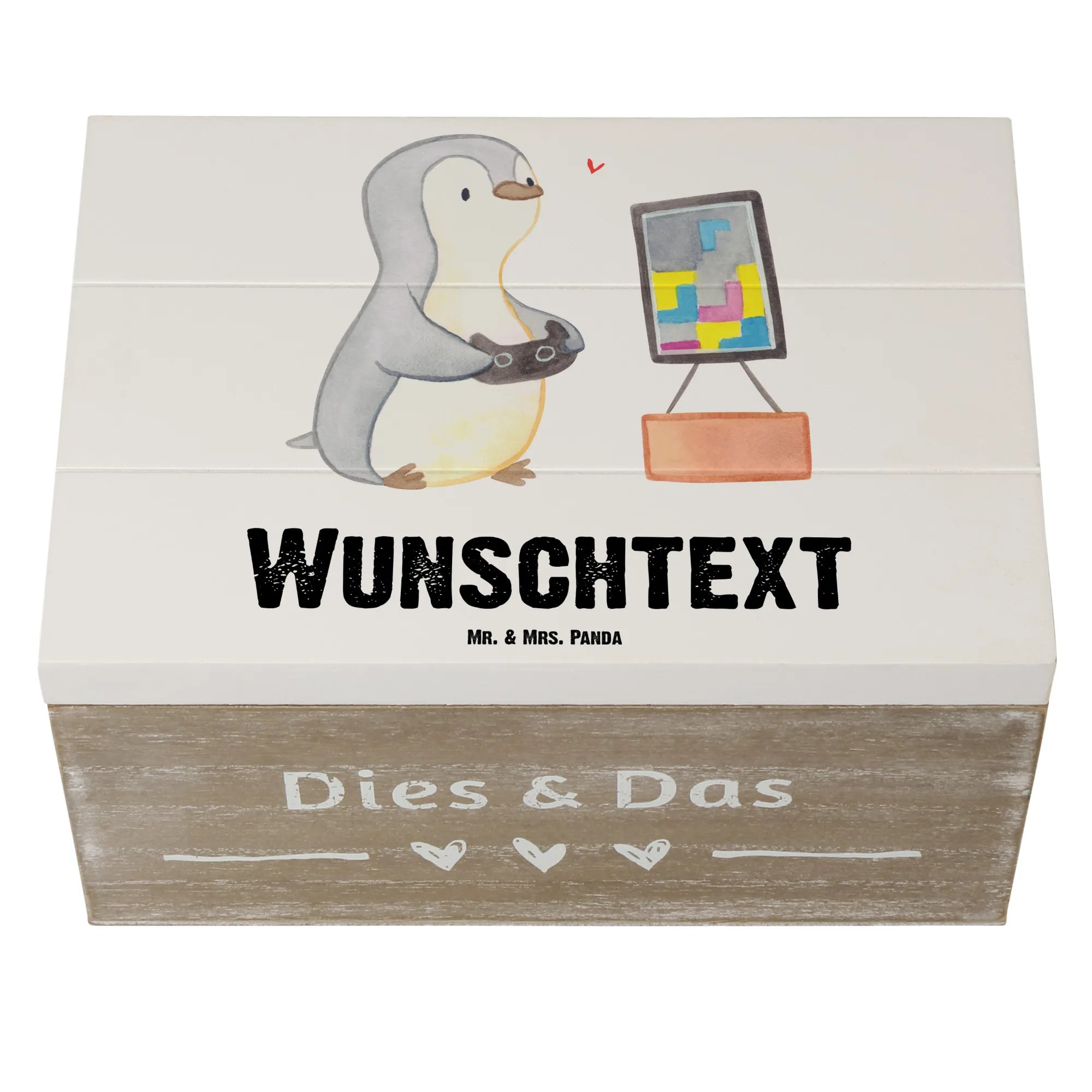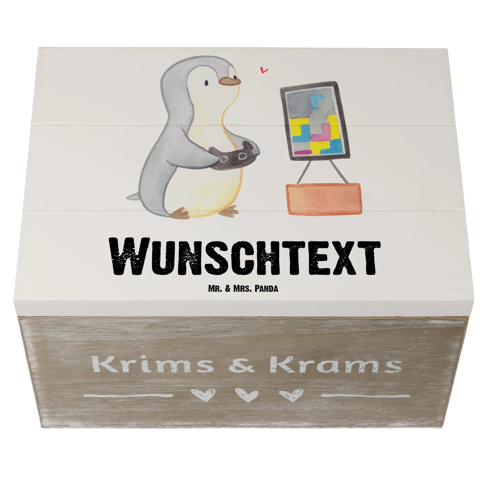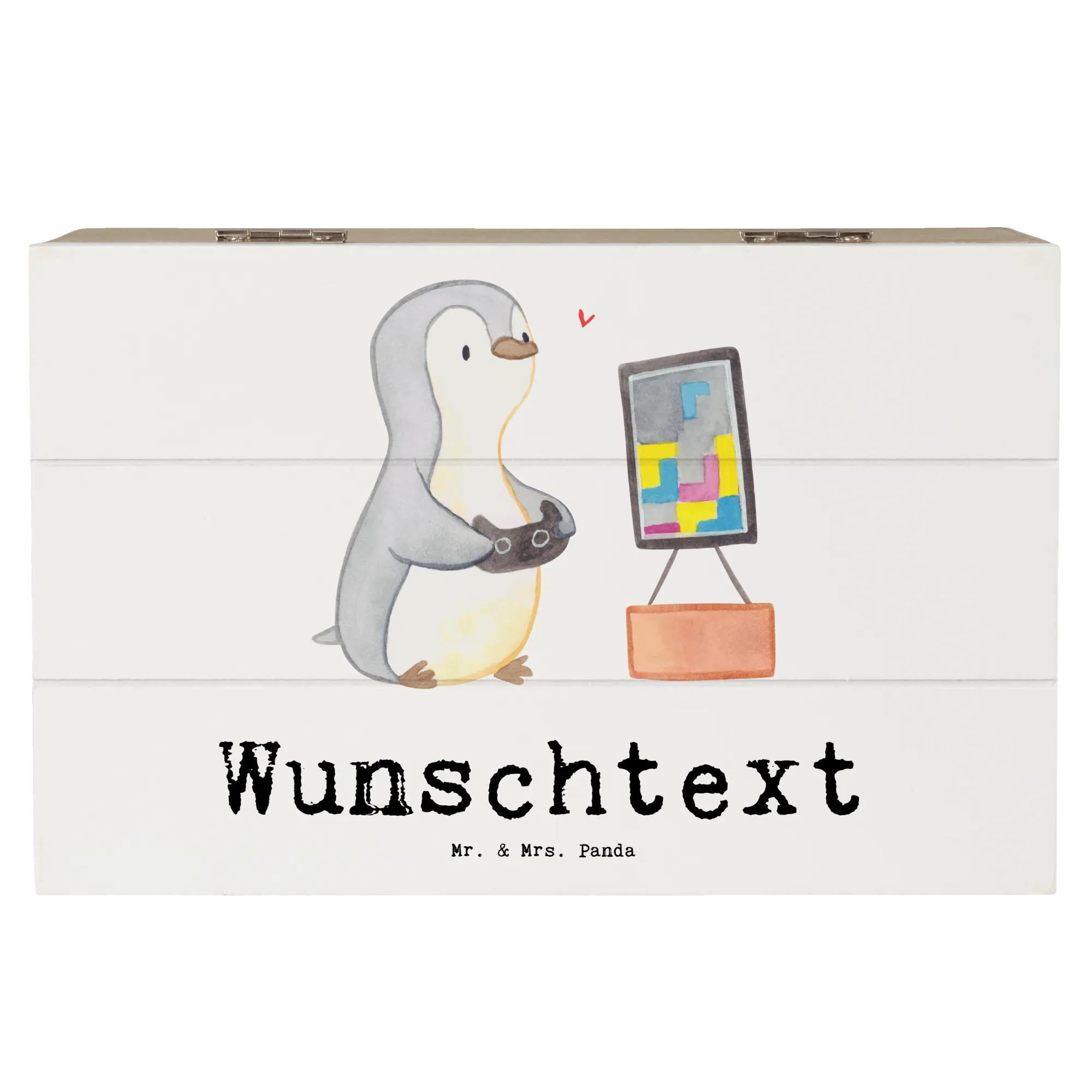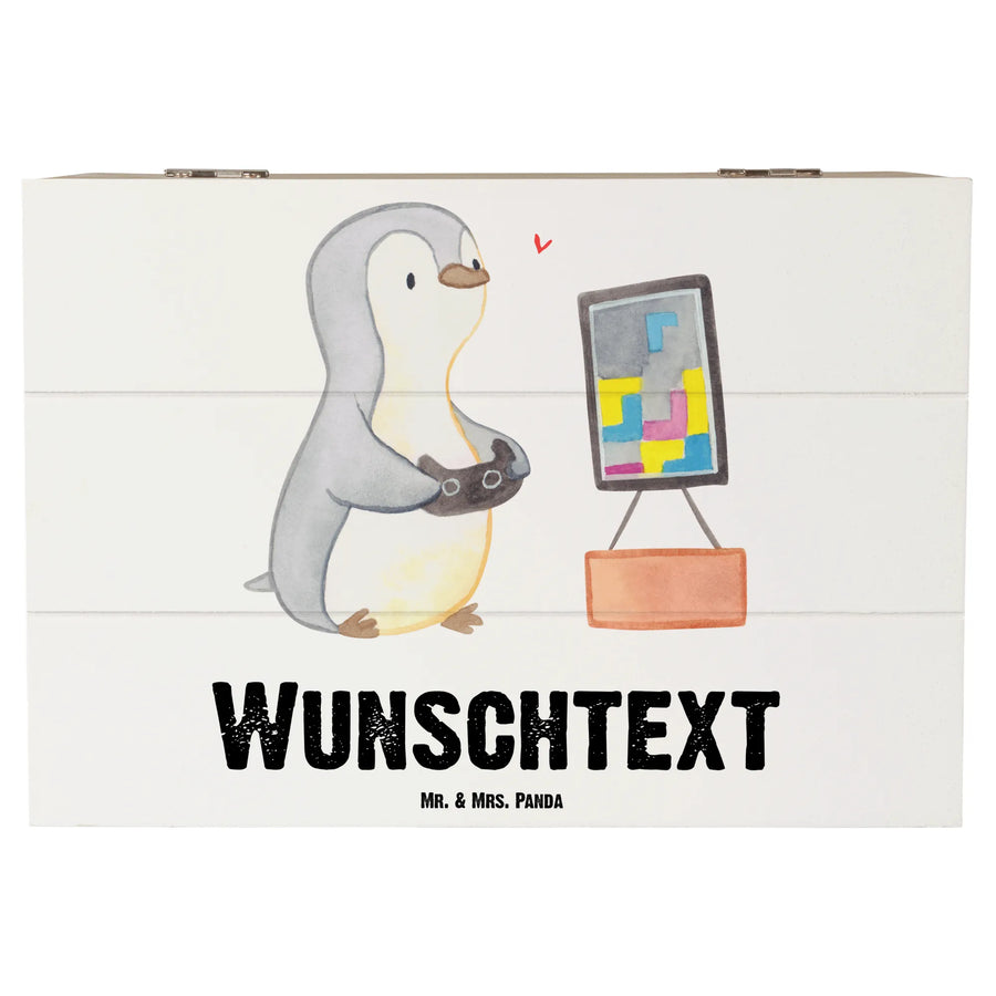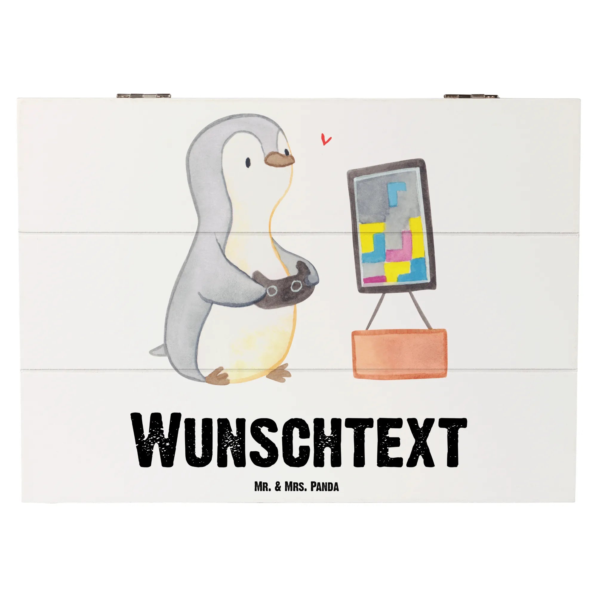 Personalizowane drewniane pudełko Pingwin Granie - 22 x 15 cm - biały