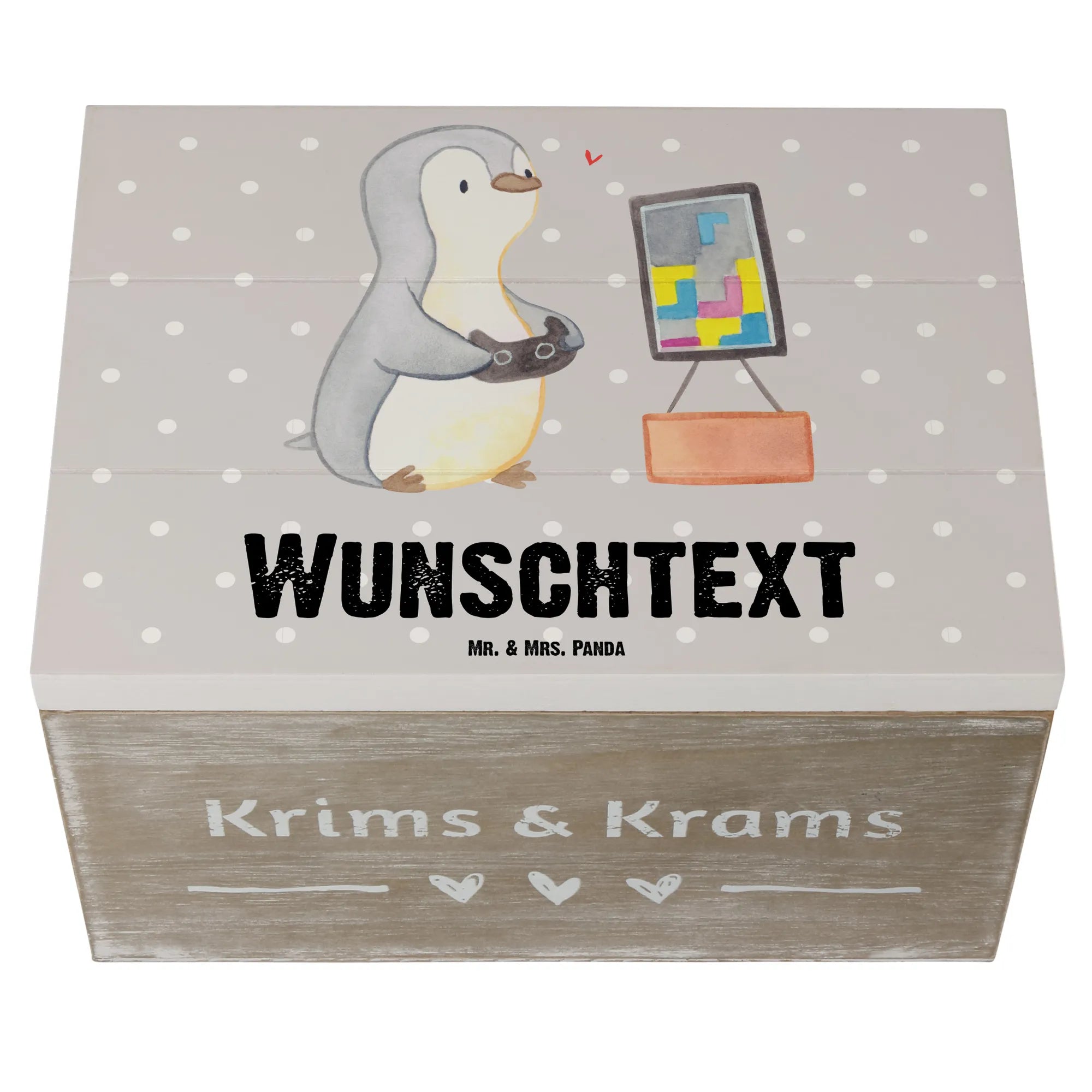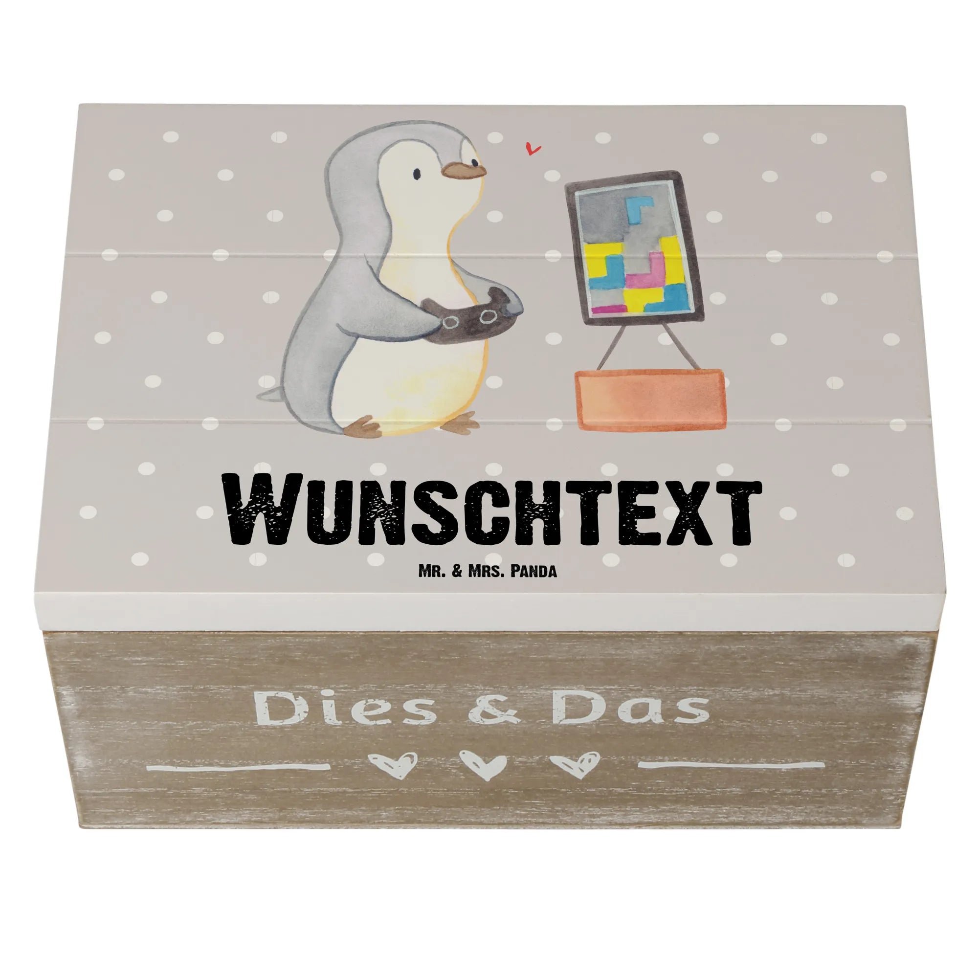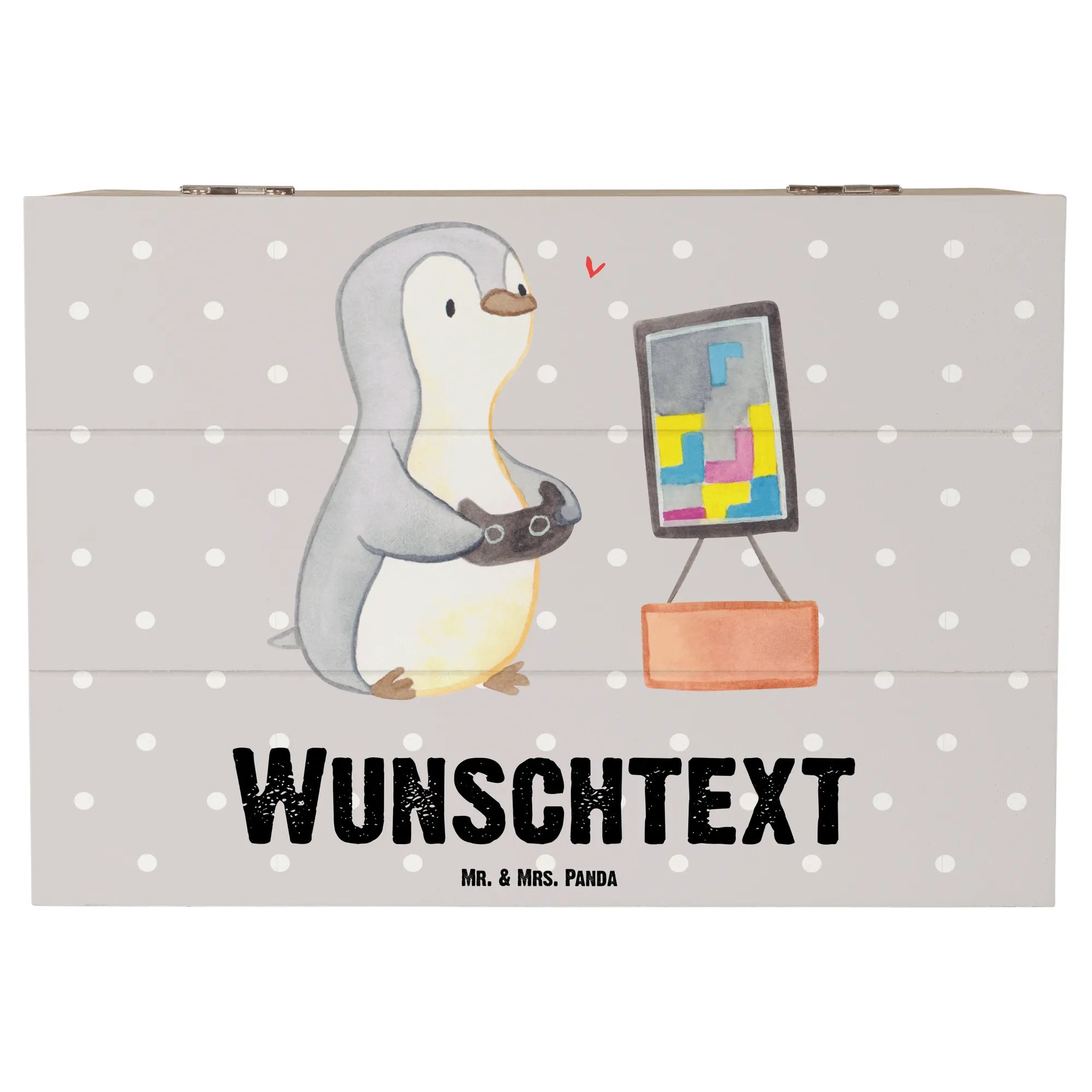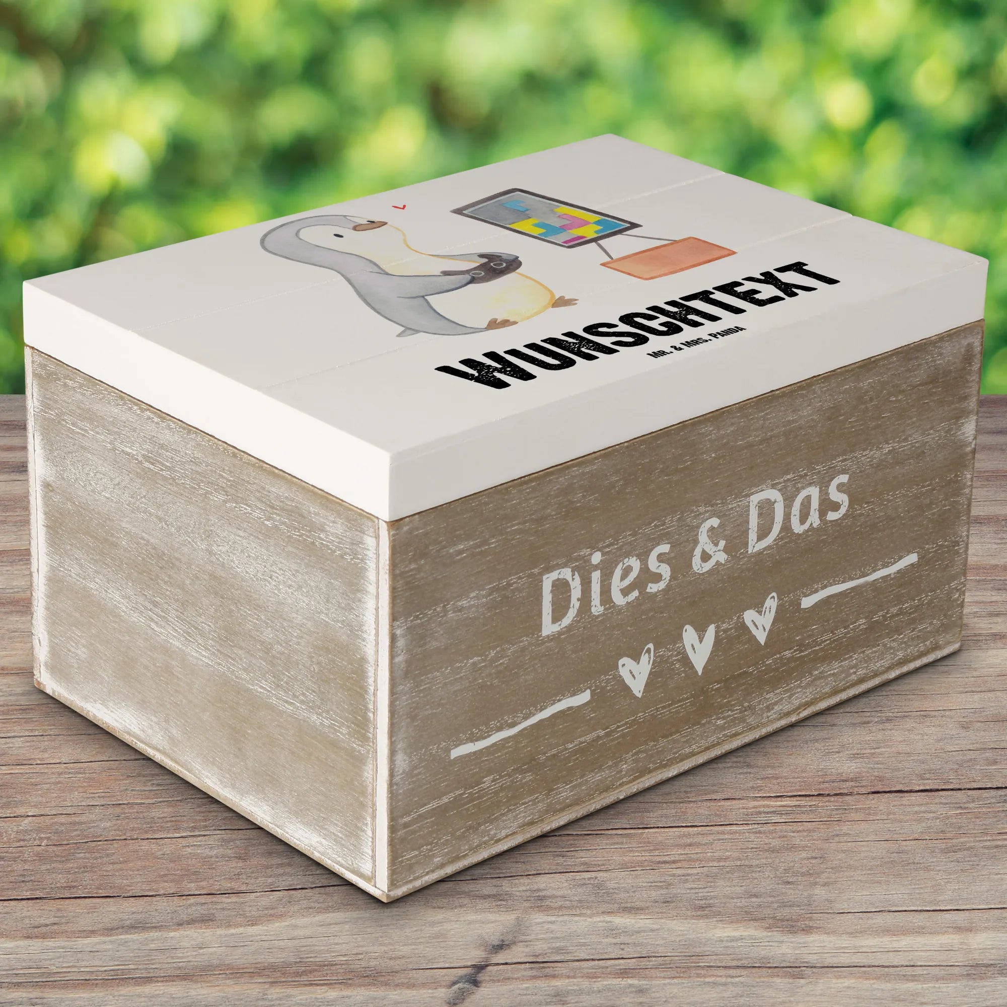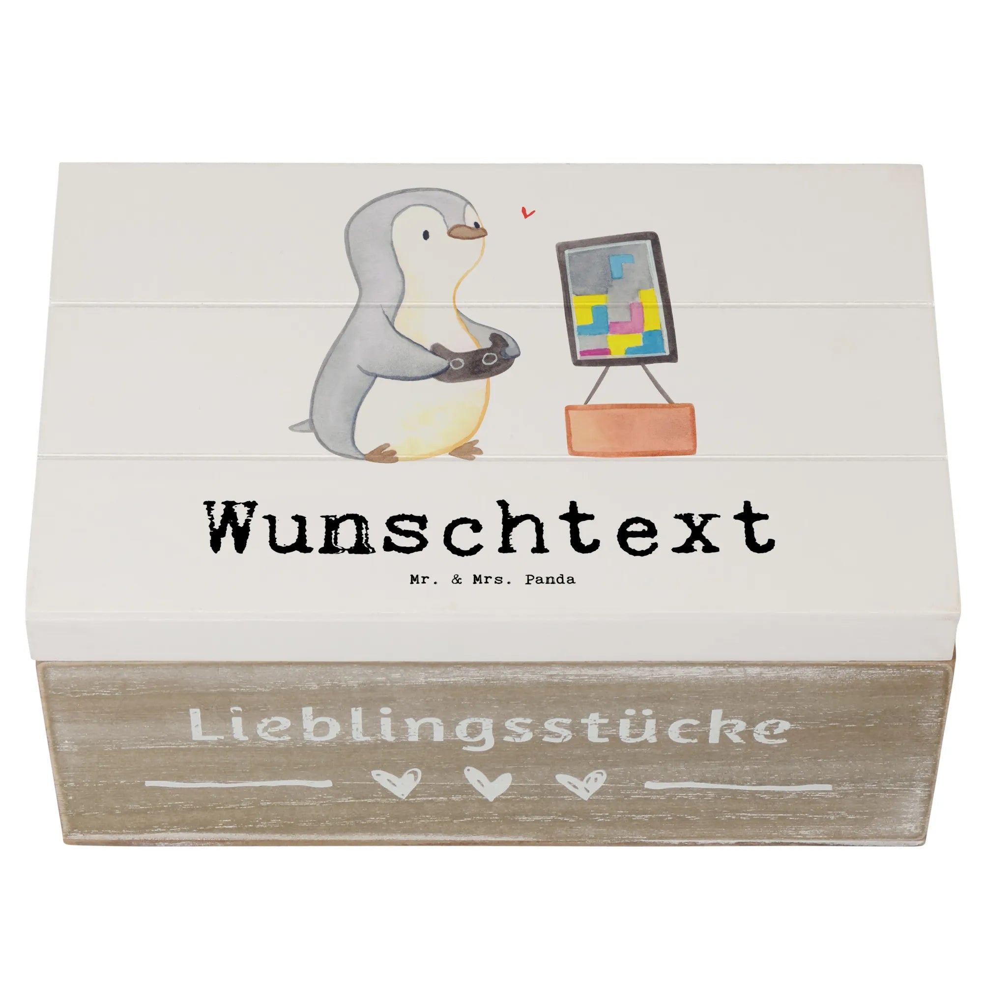Personalizowane drewniane pudełko Pingwin Granie - 22 x 15 cm - biały