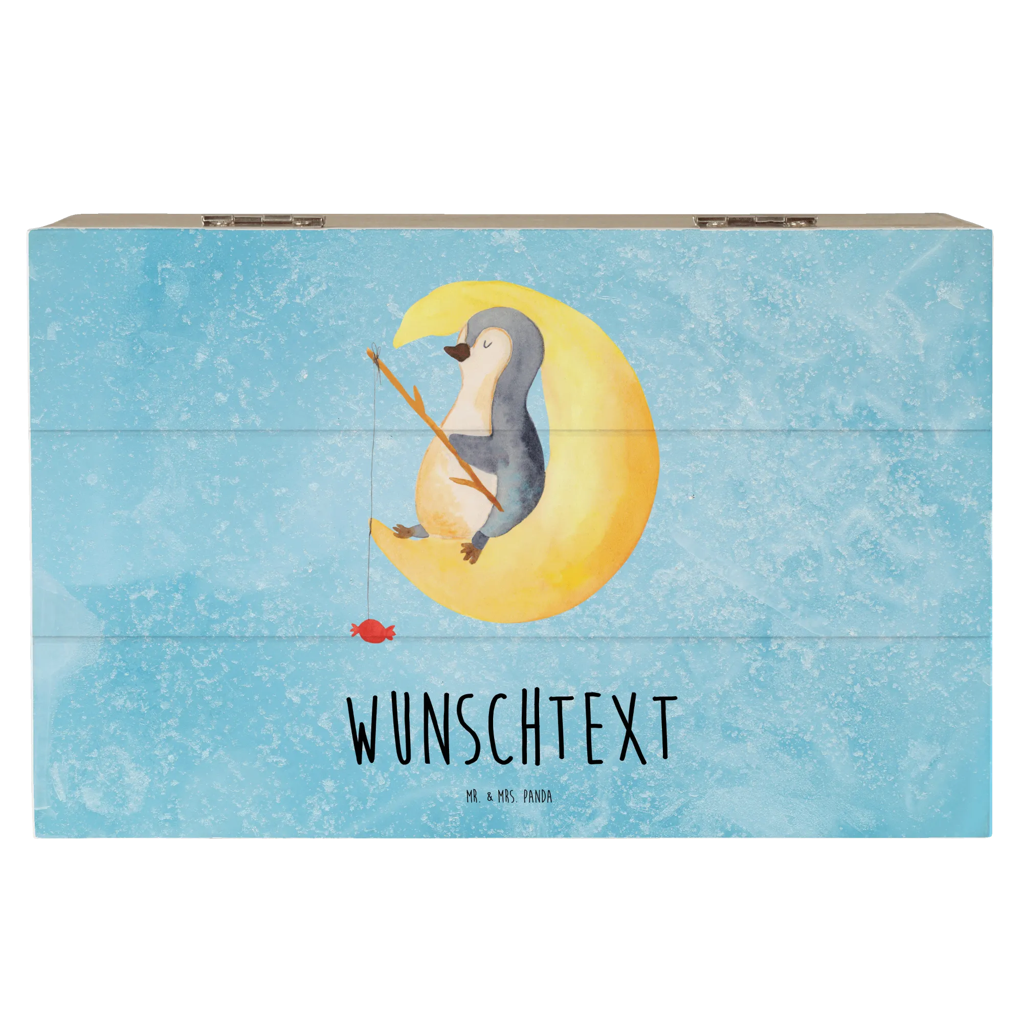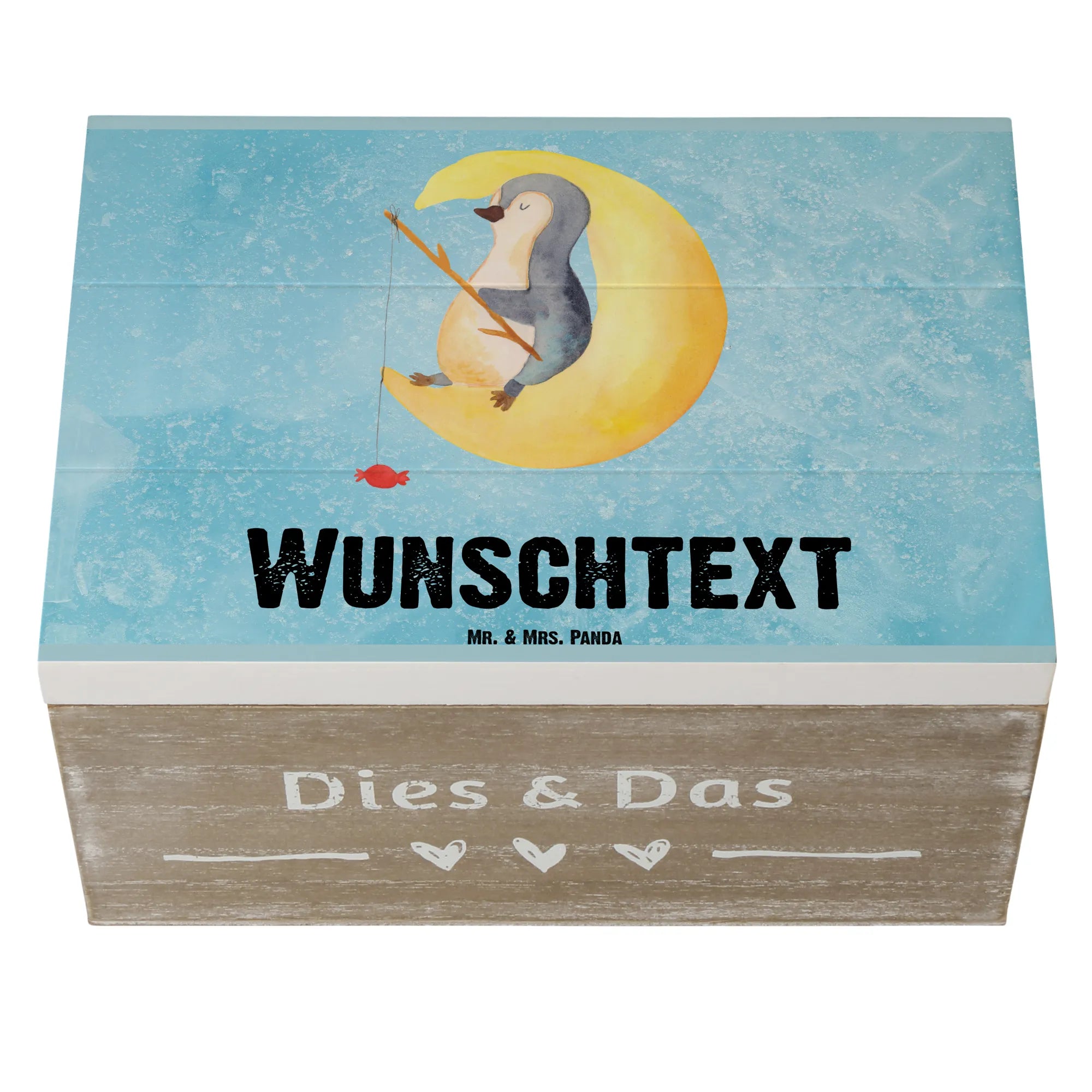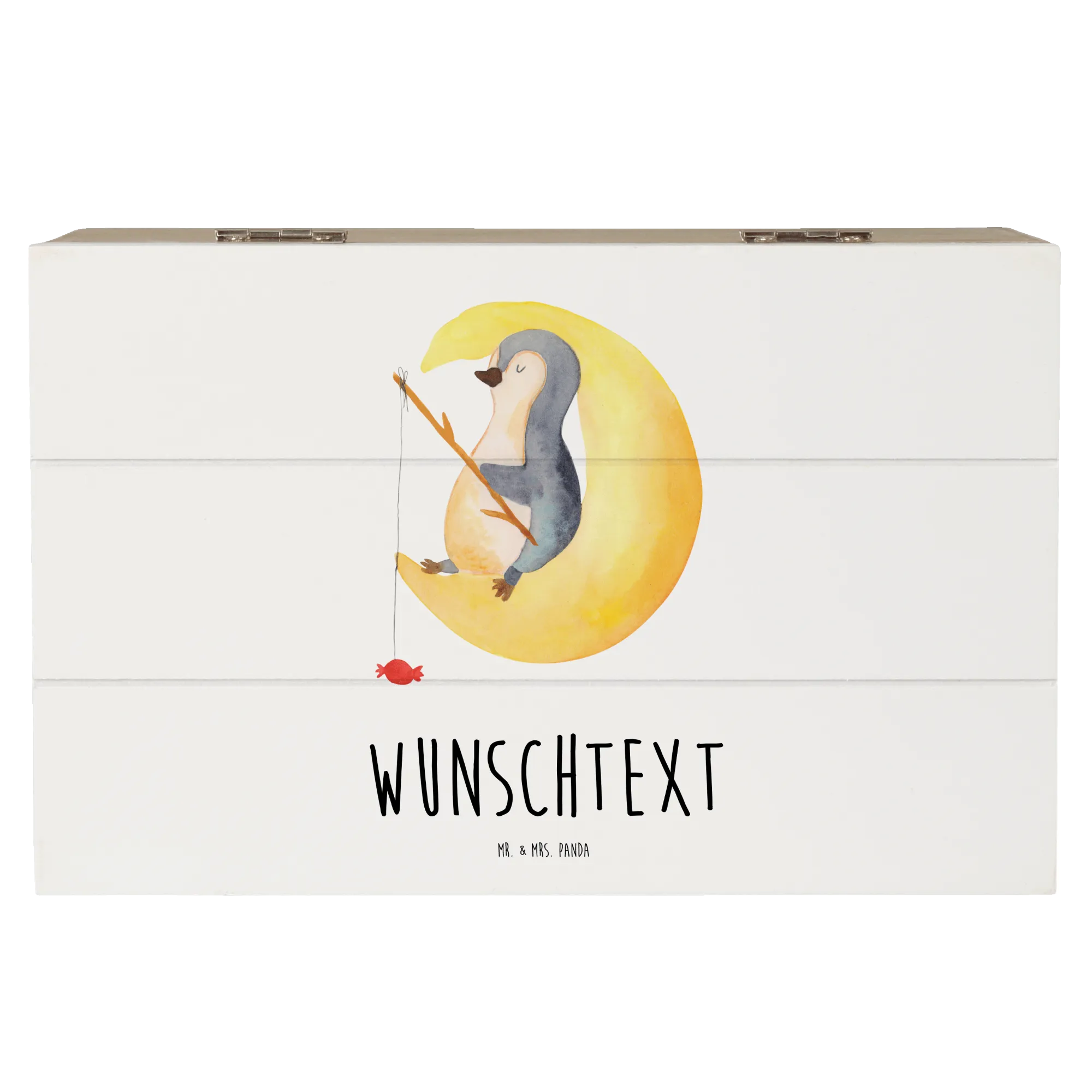 Personalizowane drewniane pudełko pingwin księżyc - 22 x 15 cm - Biały