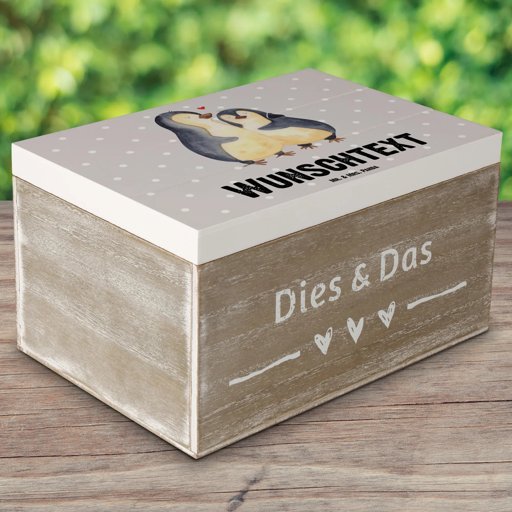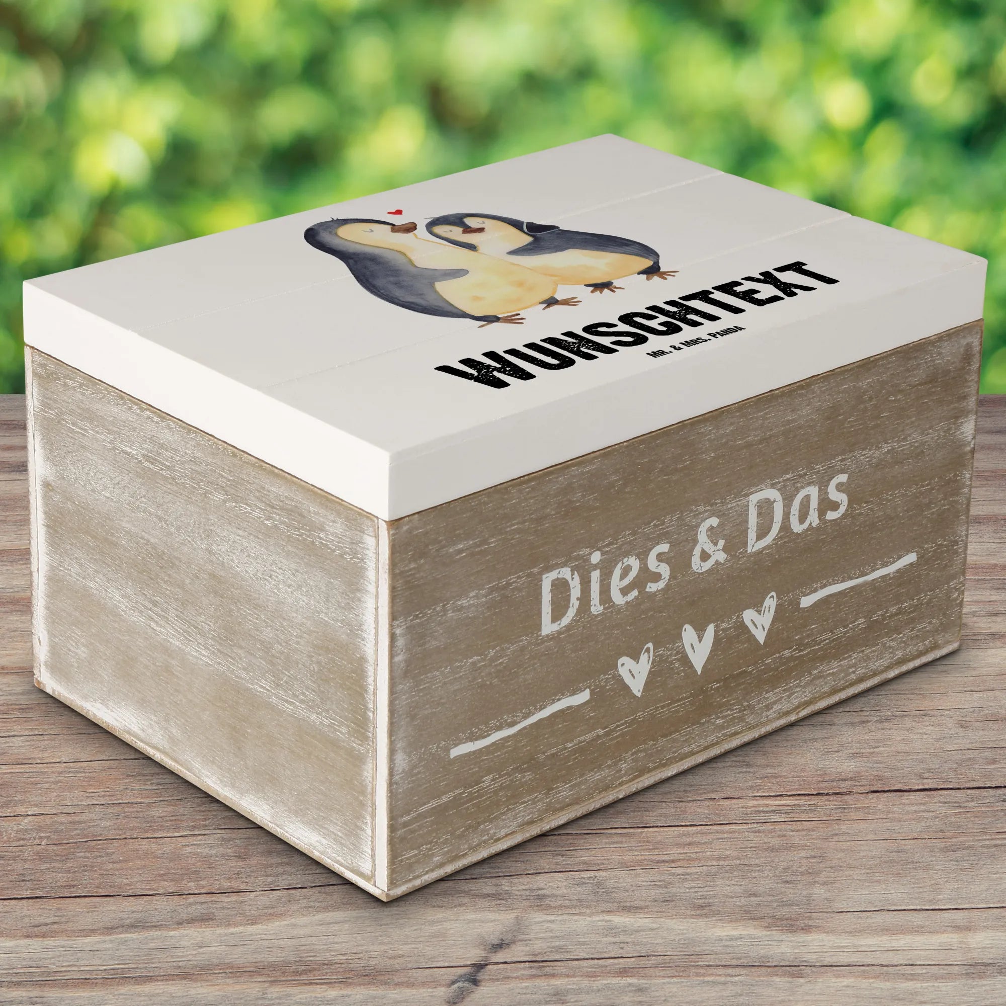 Personalizowane drewniane pudełko pingwin Najlepszy mężczyzna na świecie - 22 x 15 cm - Biały