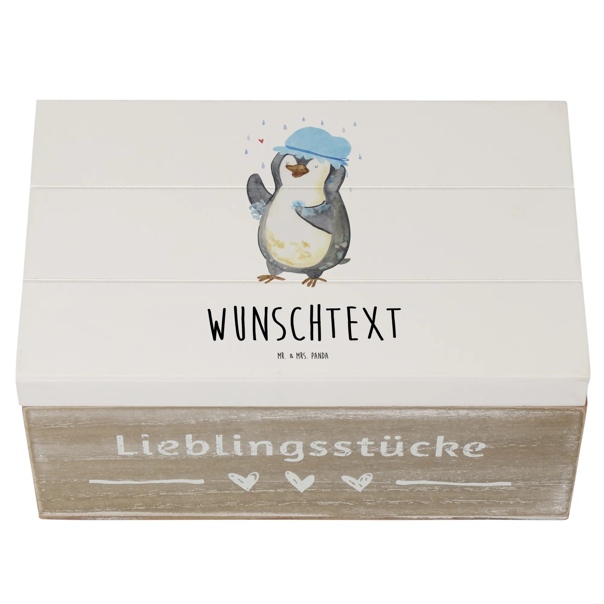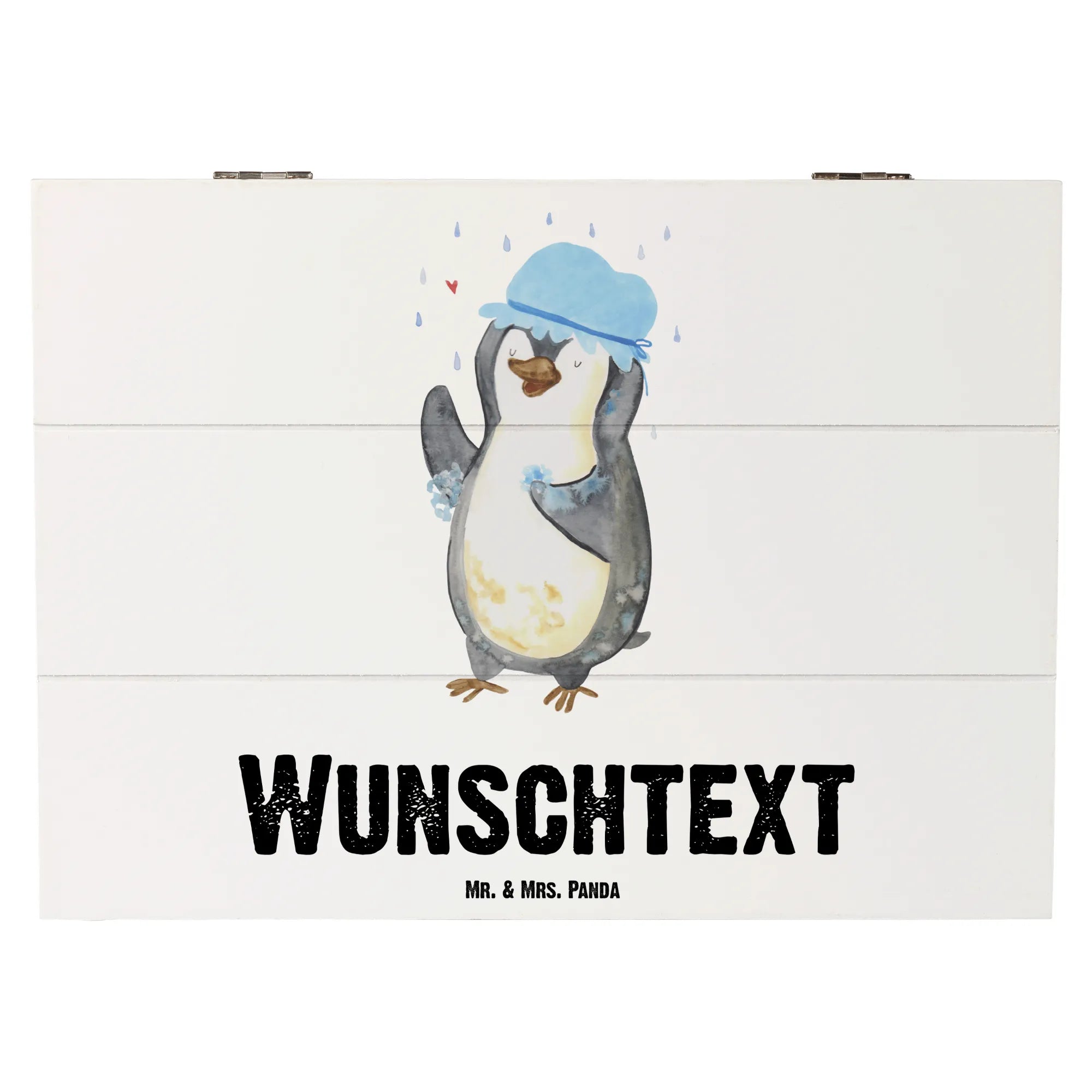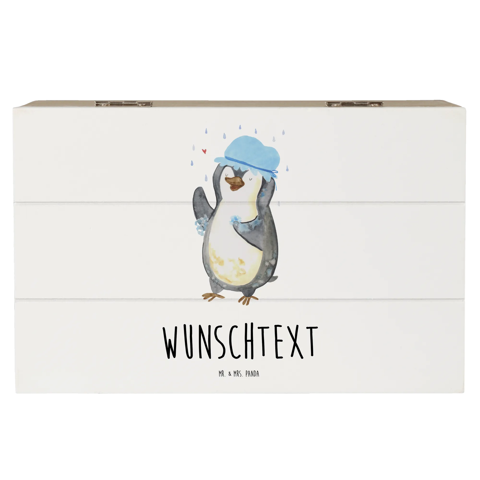 Personalizowane drewniane pudełko Pingwin Prysznic - 22 x 15 cm - Biały