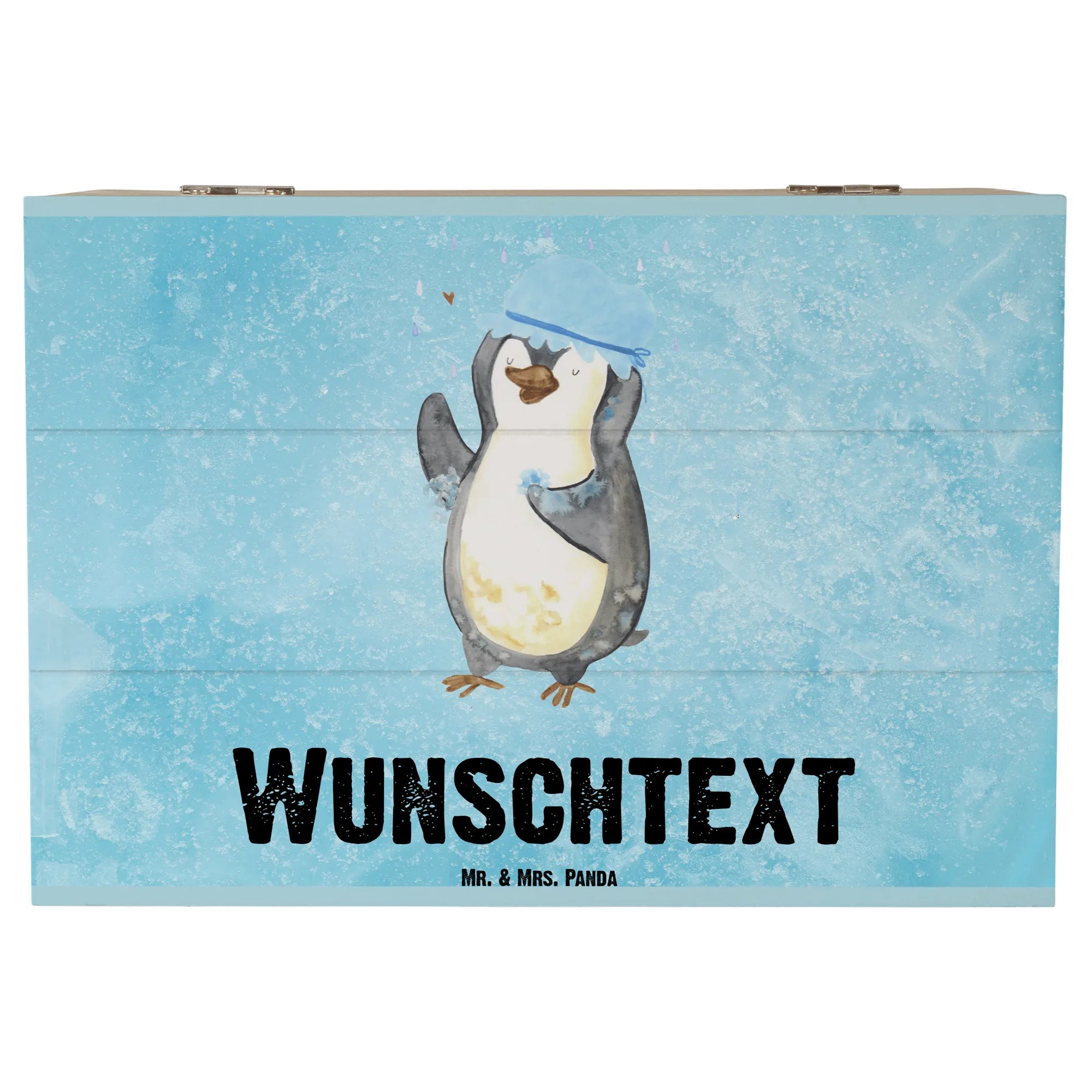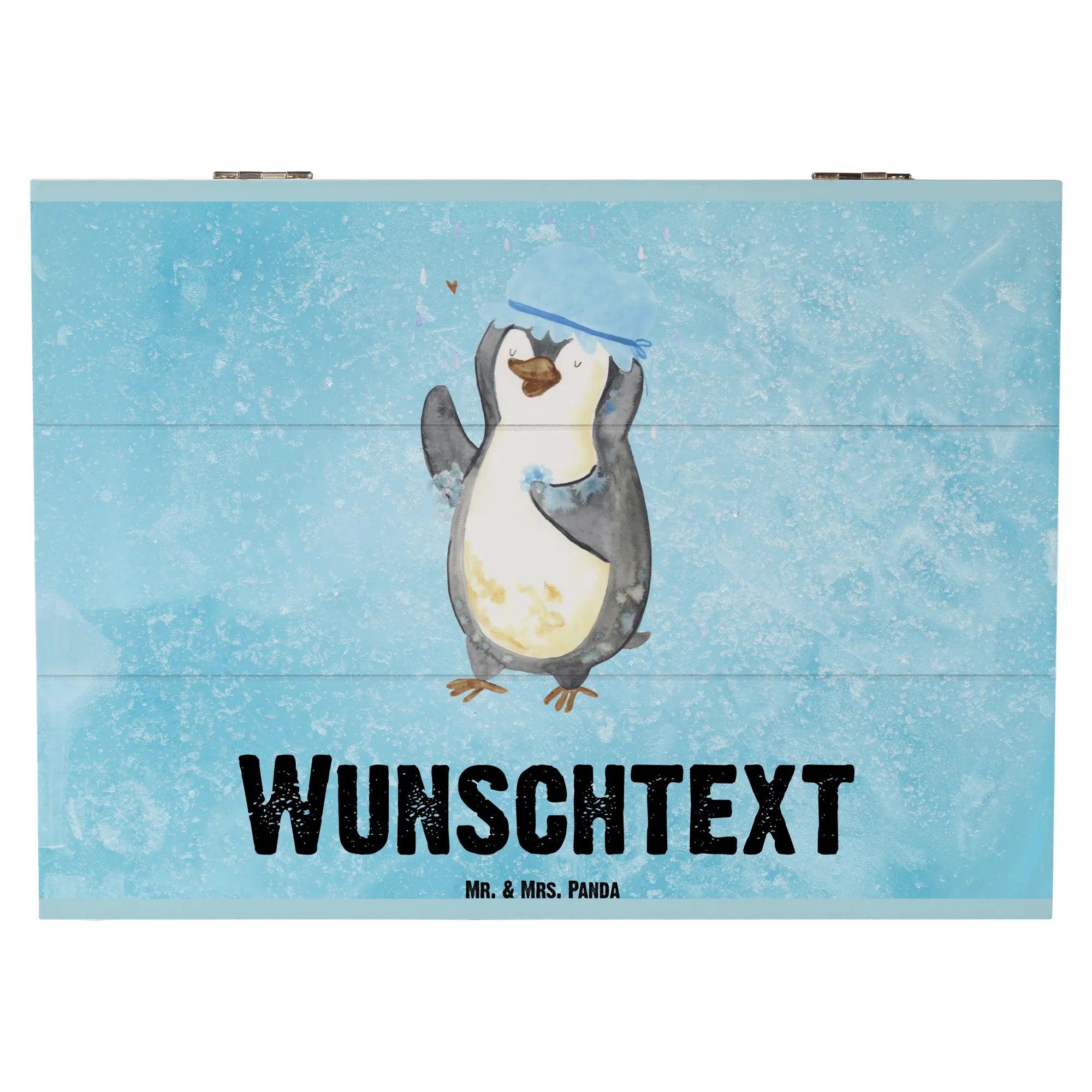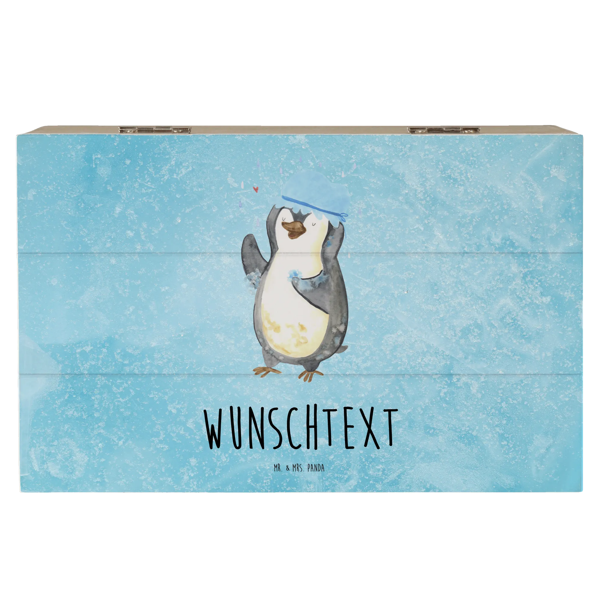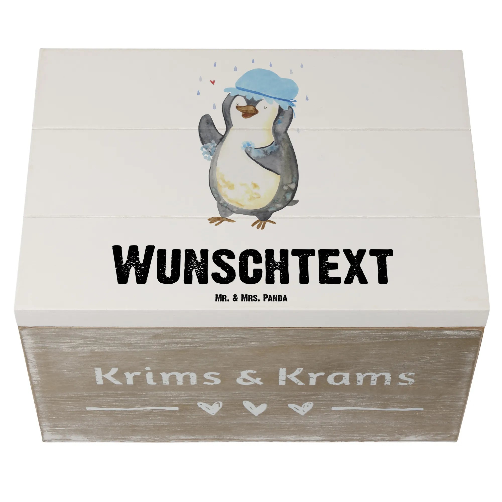 Personalizowane drewniane pudełko Pingwin Prysznic - 22 x 15 cm - Biały