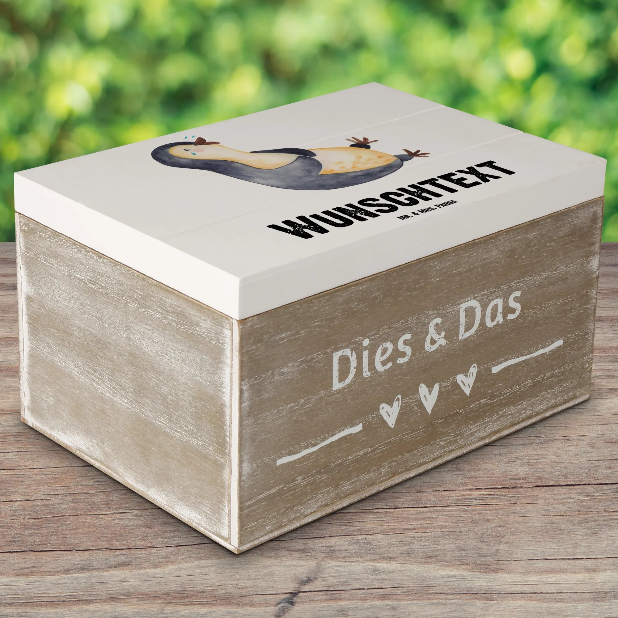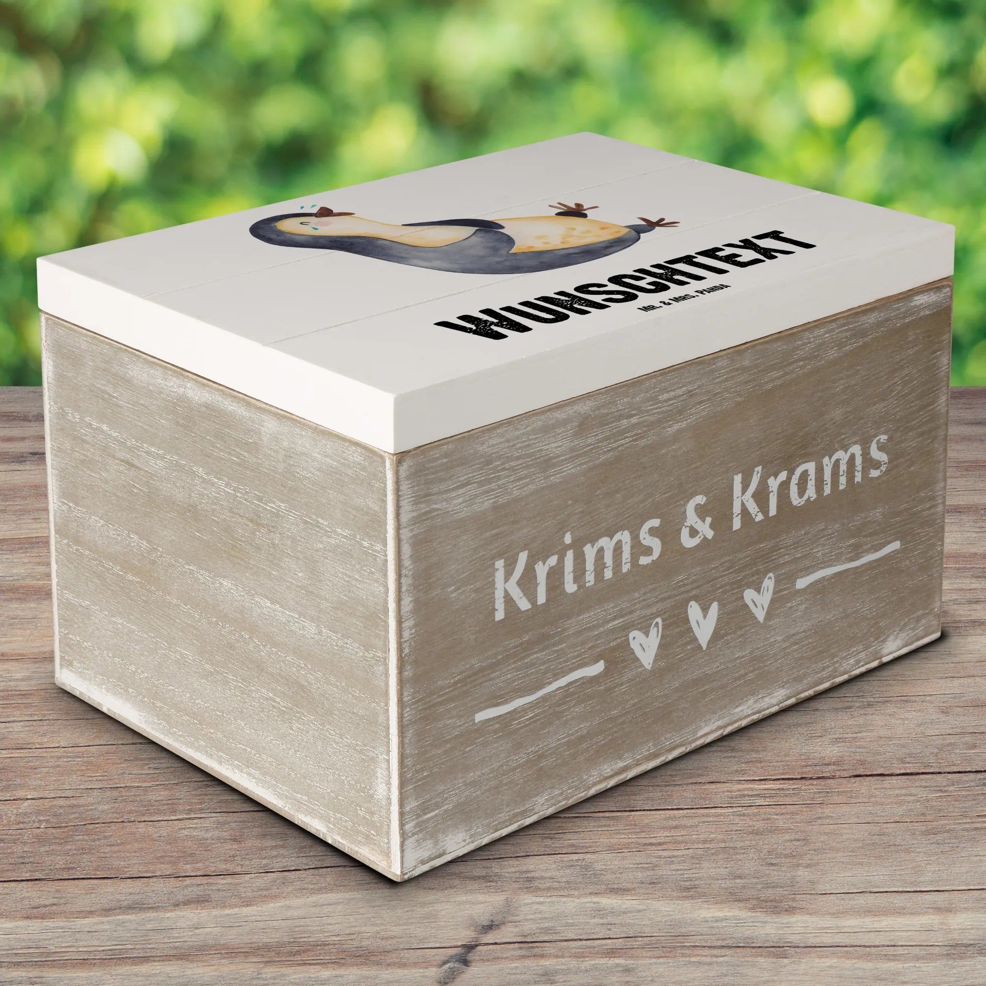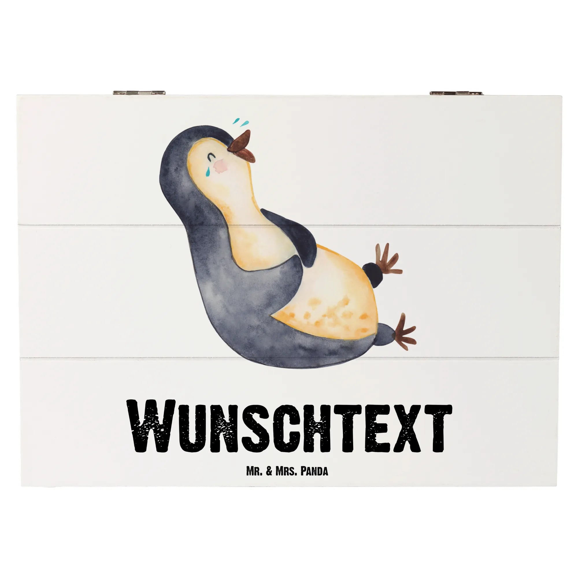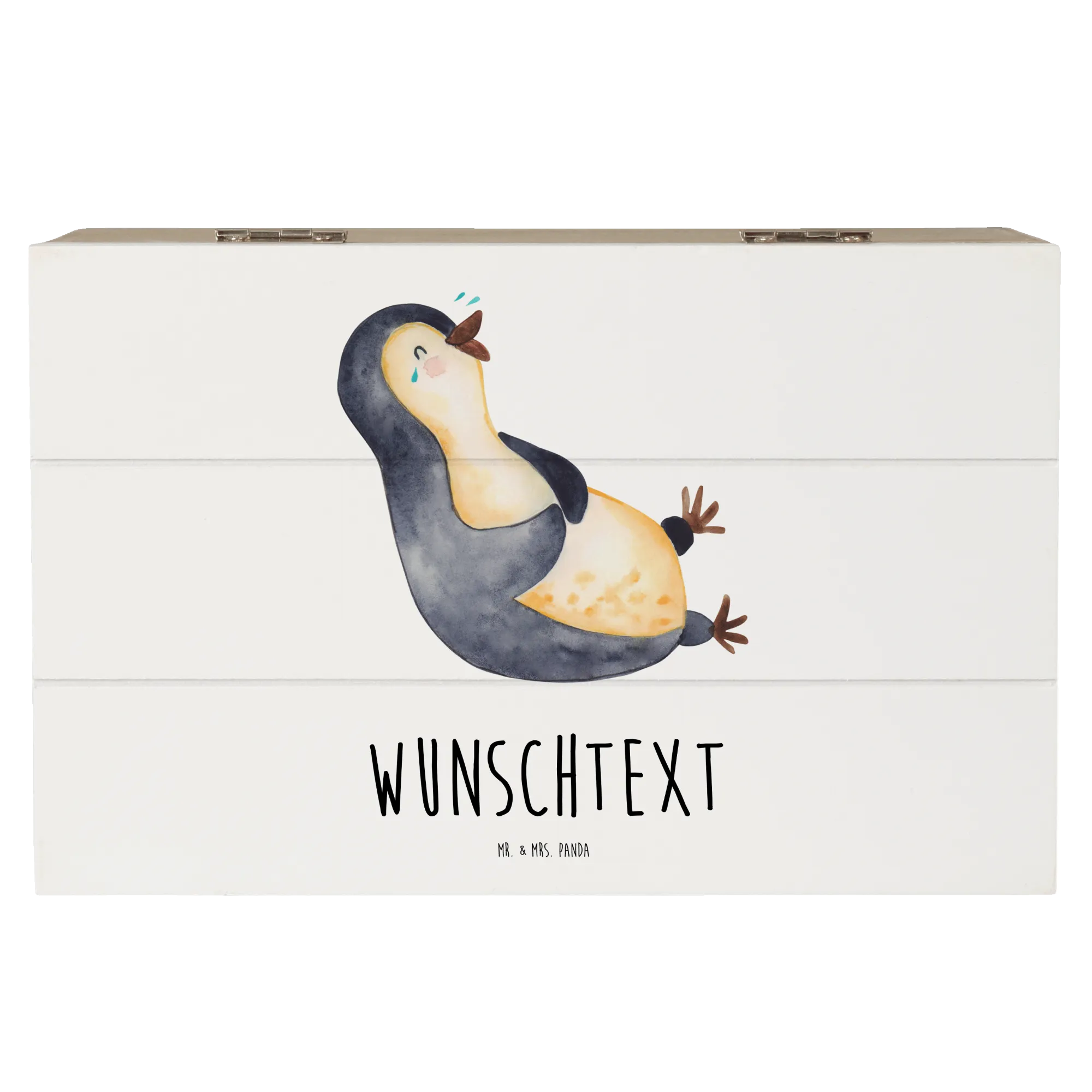 Personalizowane drewniane pudełko pingwin Śmiech - 22 x 15 cm - Biały