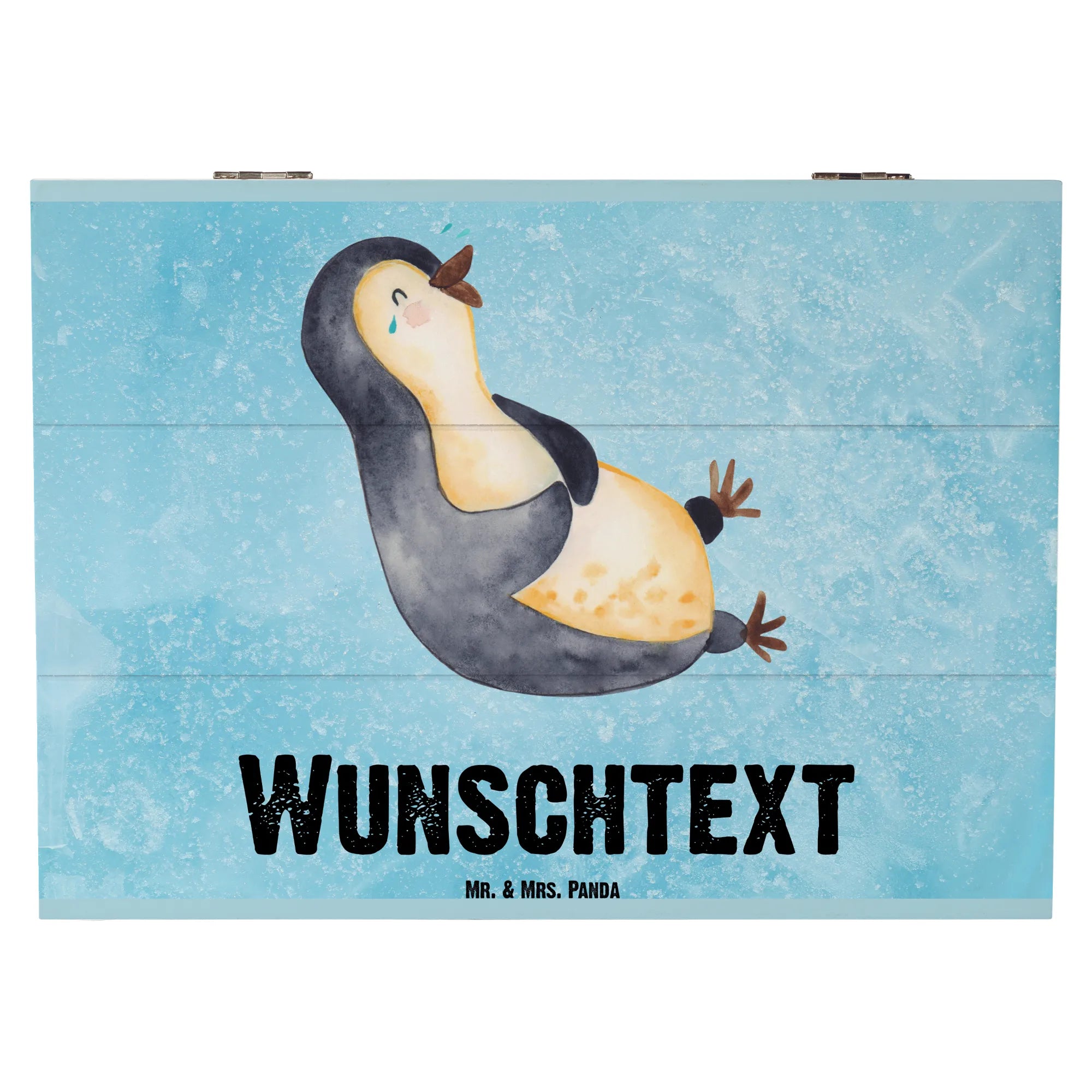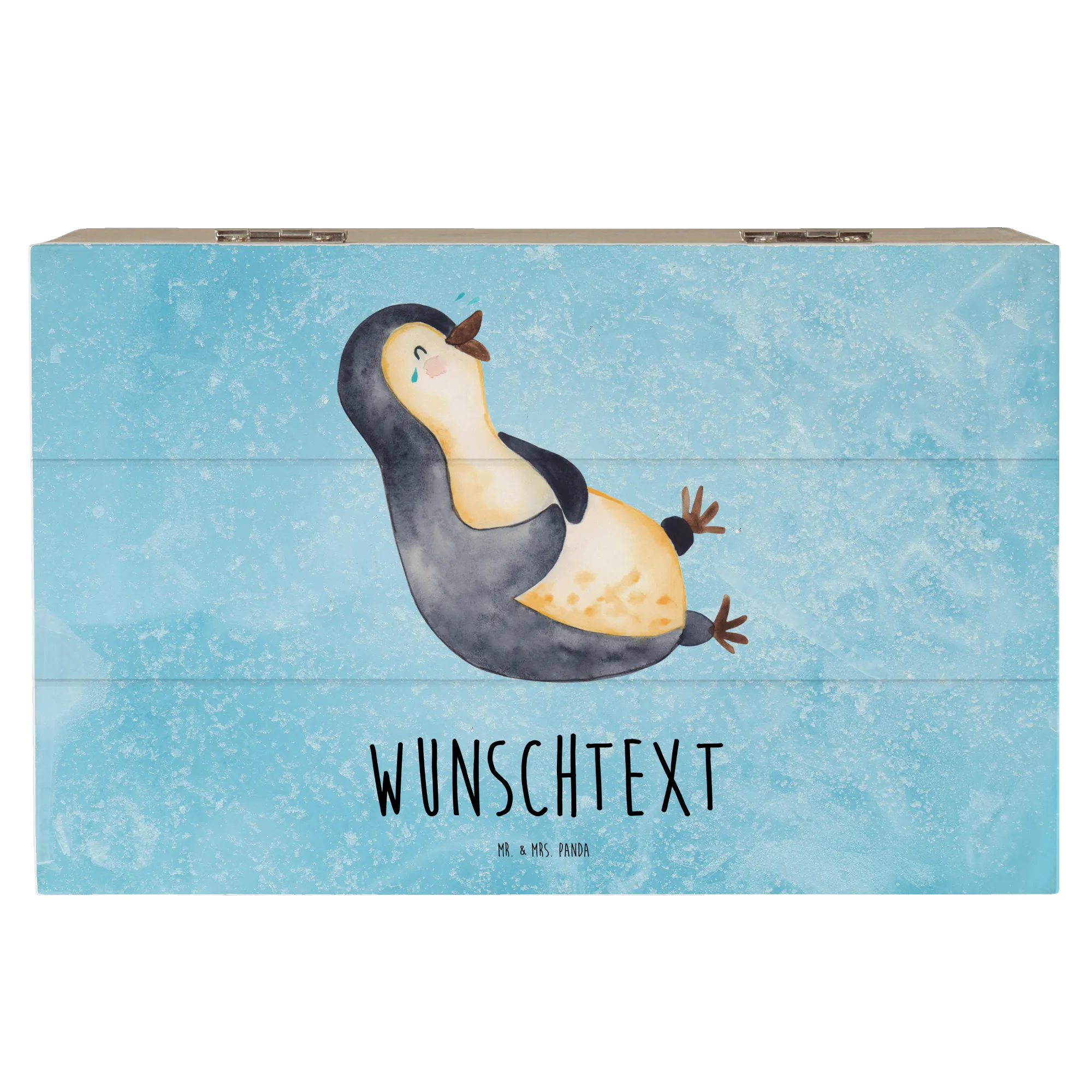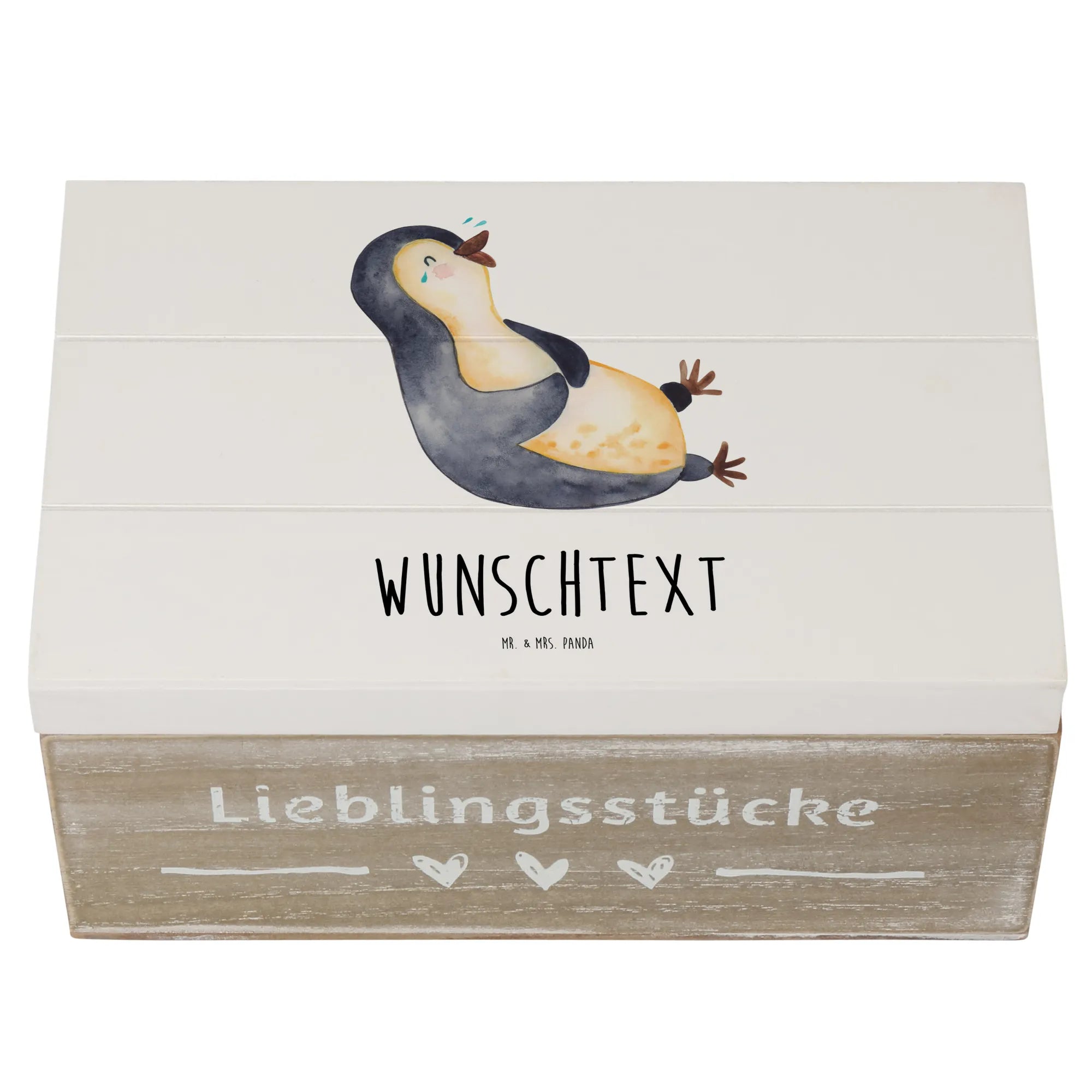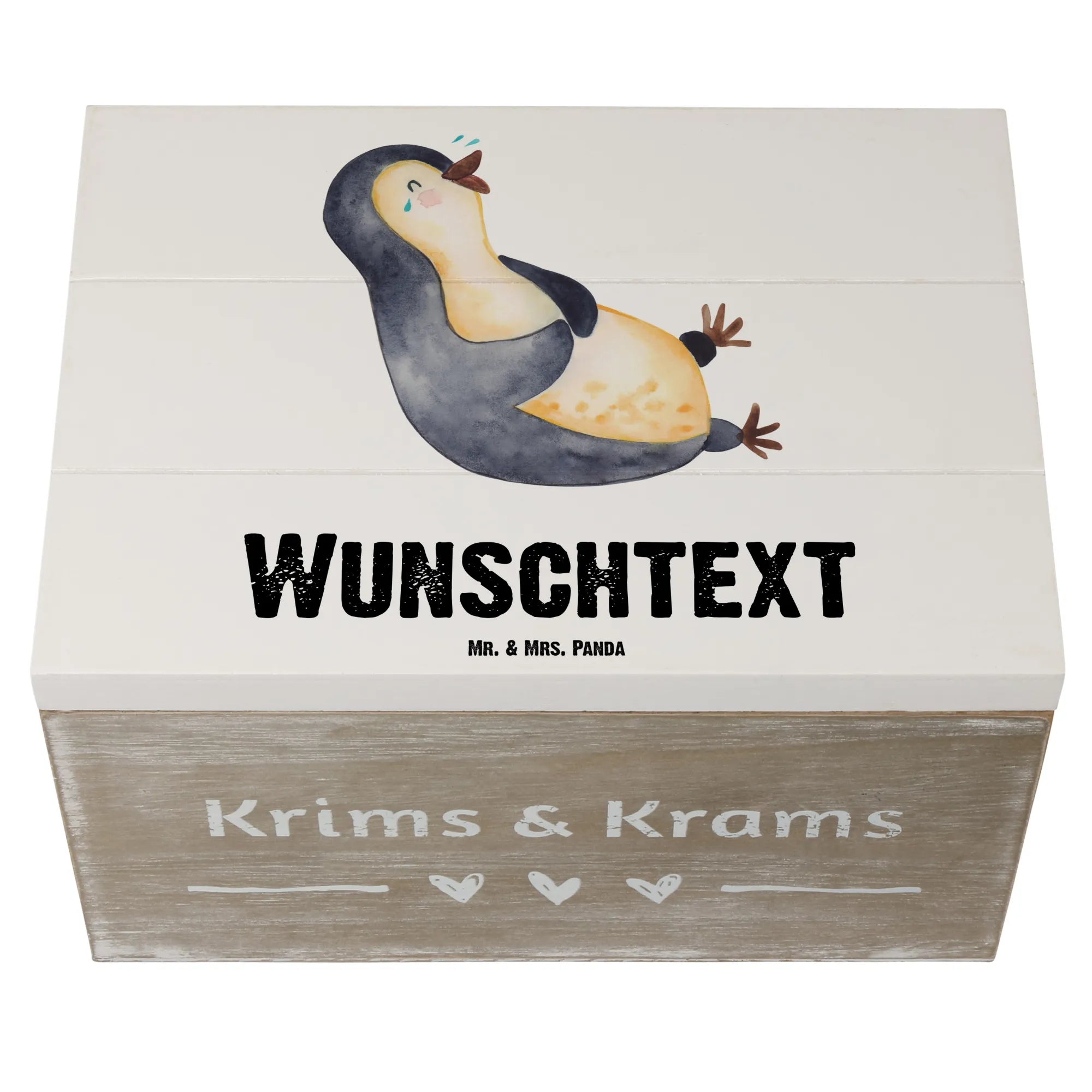 Personalizowane drewniane pudełko pingwin Śmiech - 22 x 15 cm - Biały
