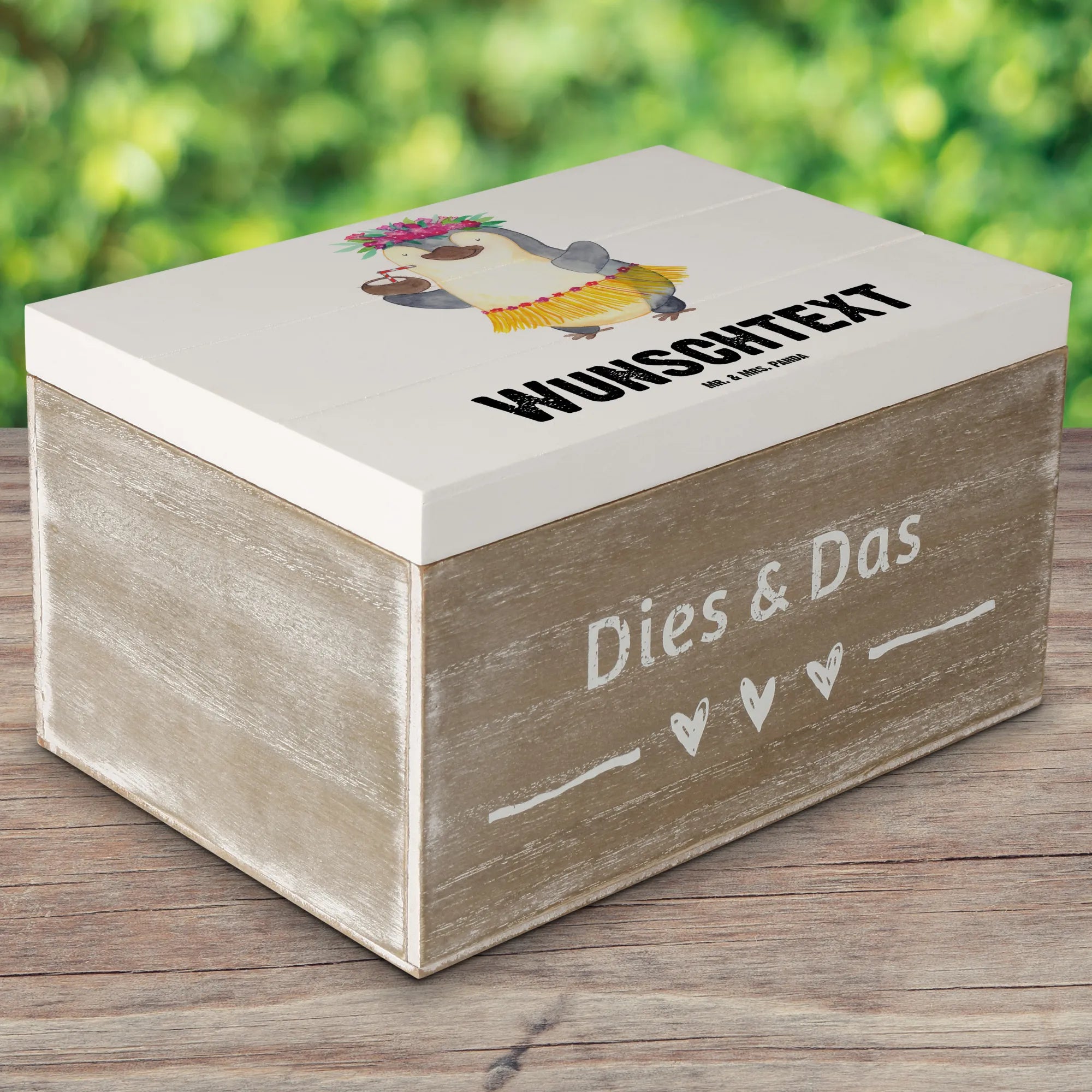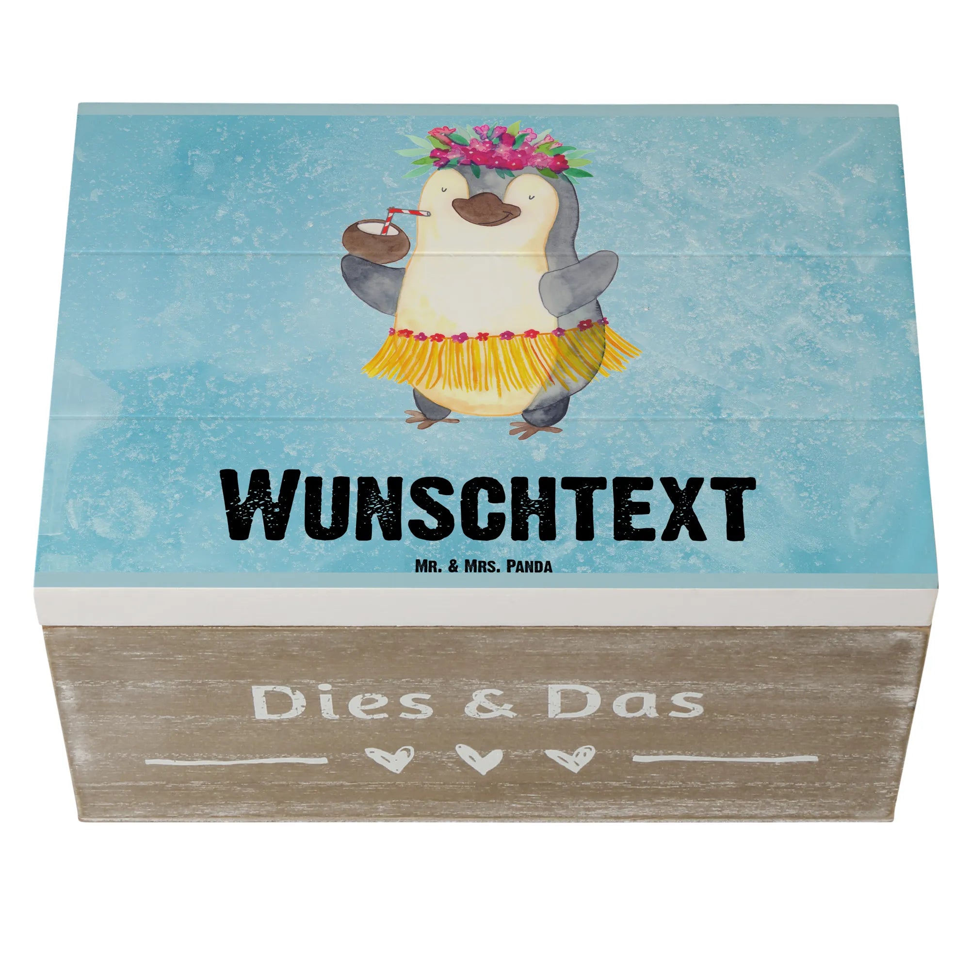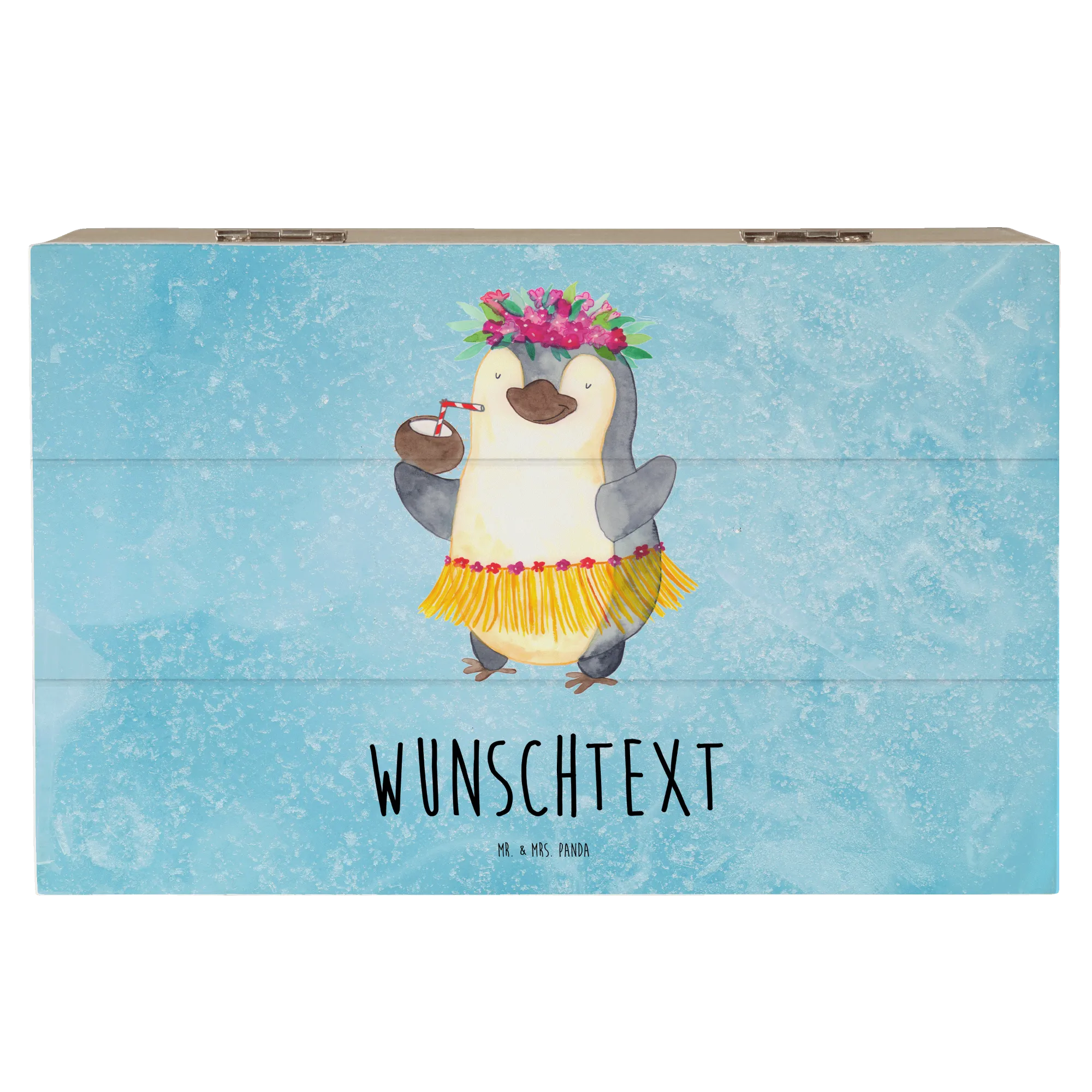 Personalizowane drewniane pudełko Pingwin z Kokosem - 22 x 15 cm - lodowoniebieski