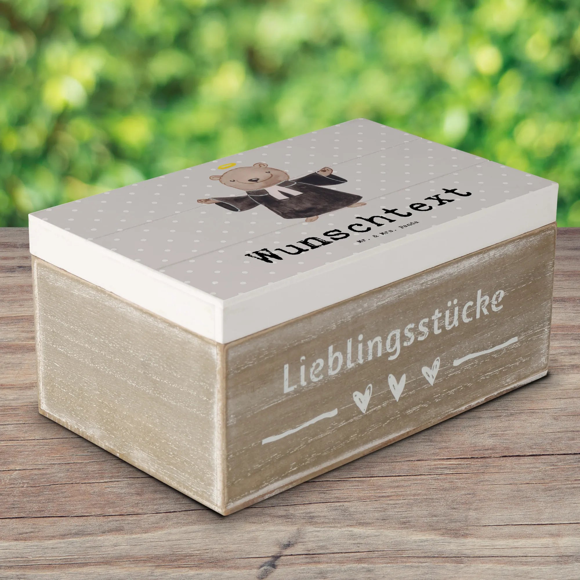 Personalizowane drewniane pudełko proboszcz serce - 22 x 15 cm - Biały