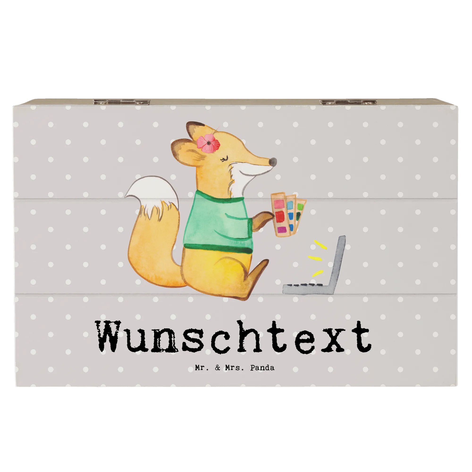 Personalizowane drewniane pudełko Projektantka mediów serce - 22 x 15 cm - Pastelowy szary