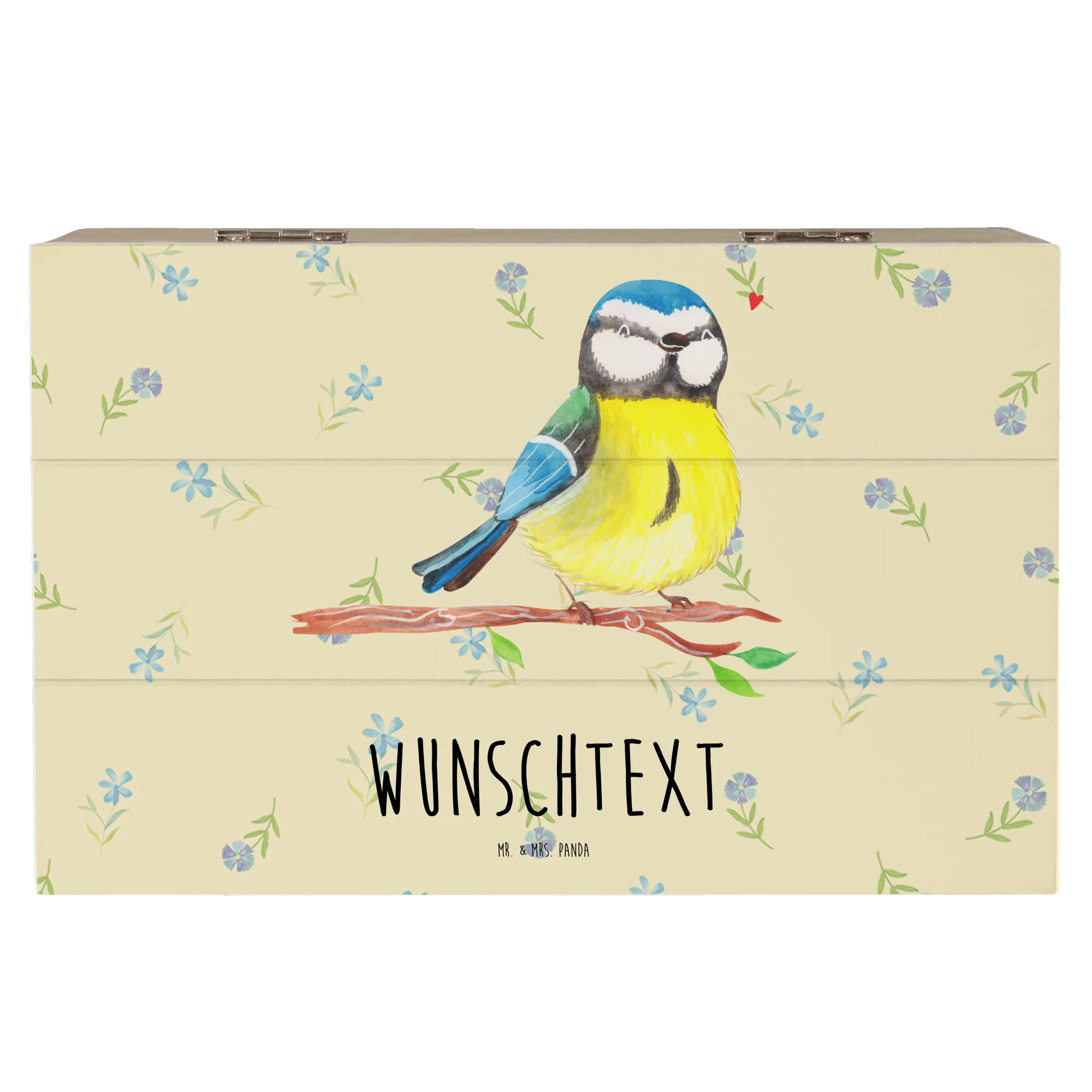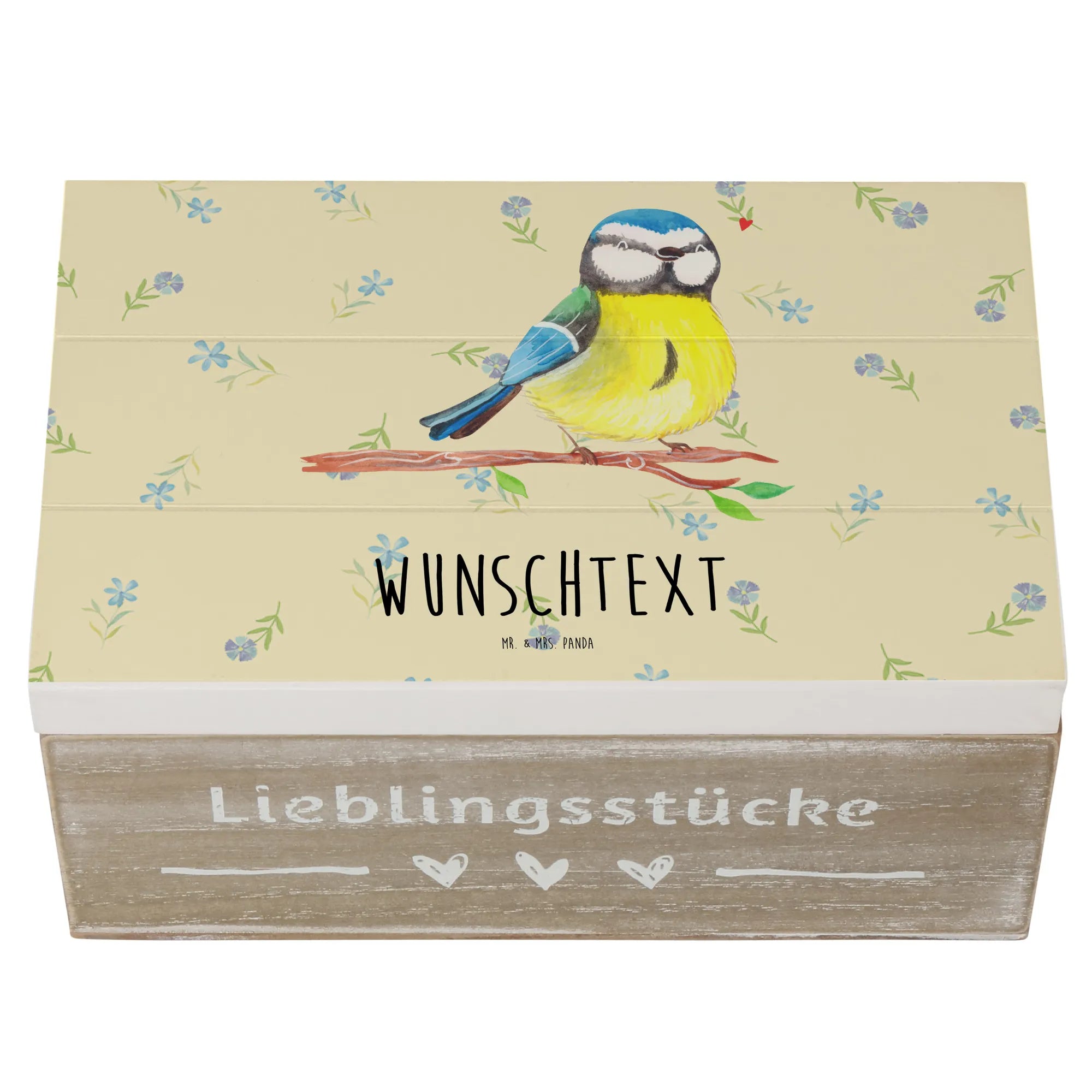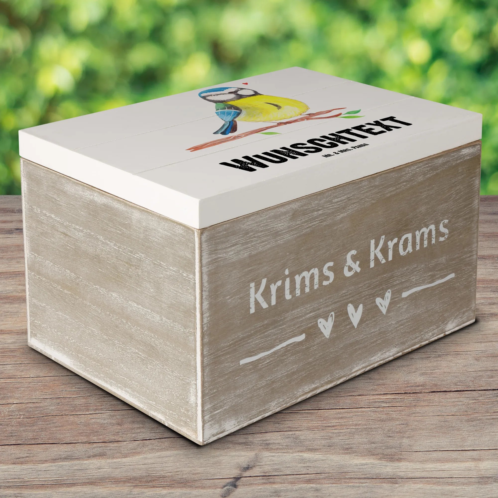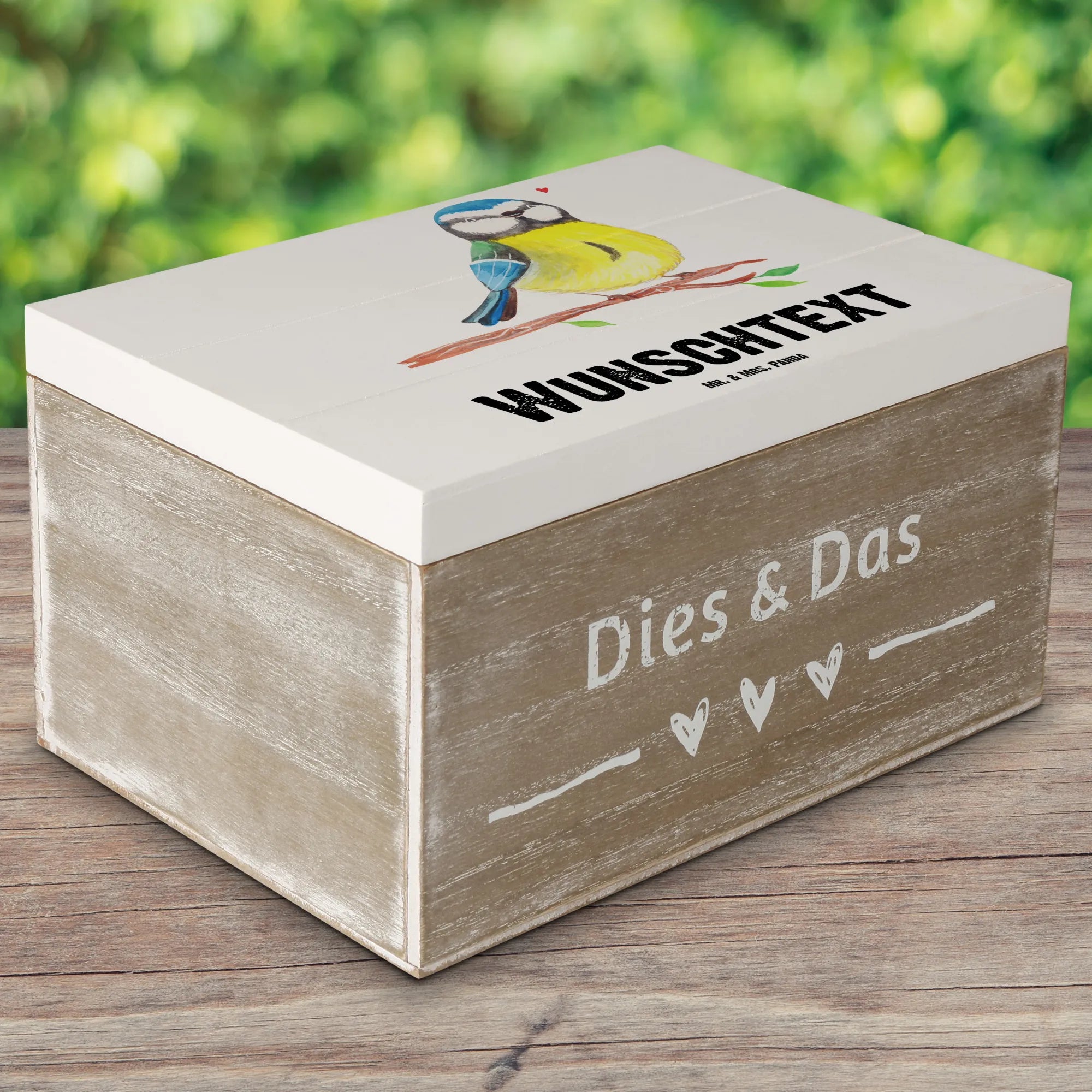 Personalizowane drewniane pudełko ptak modraszek - 22 x 15 cm - biały