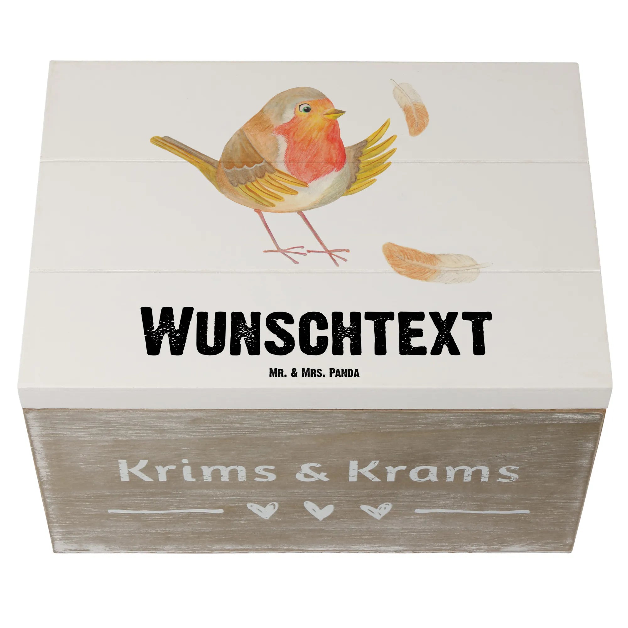 Personalizowane drewniane pudełko rudzik Pióra - 22 x 15 cm - biały