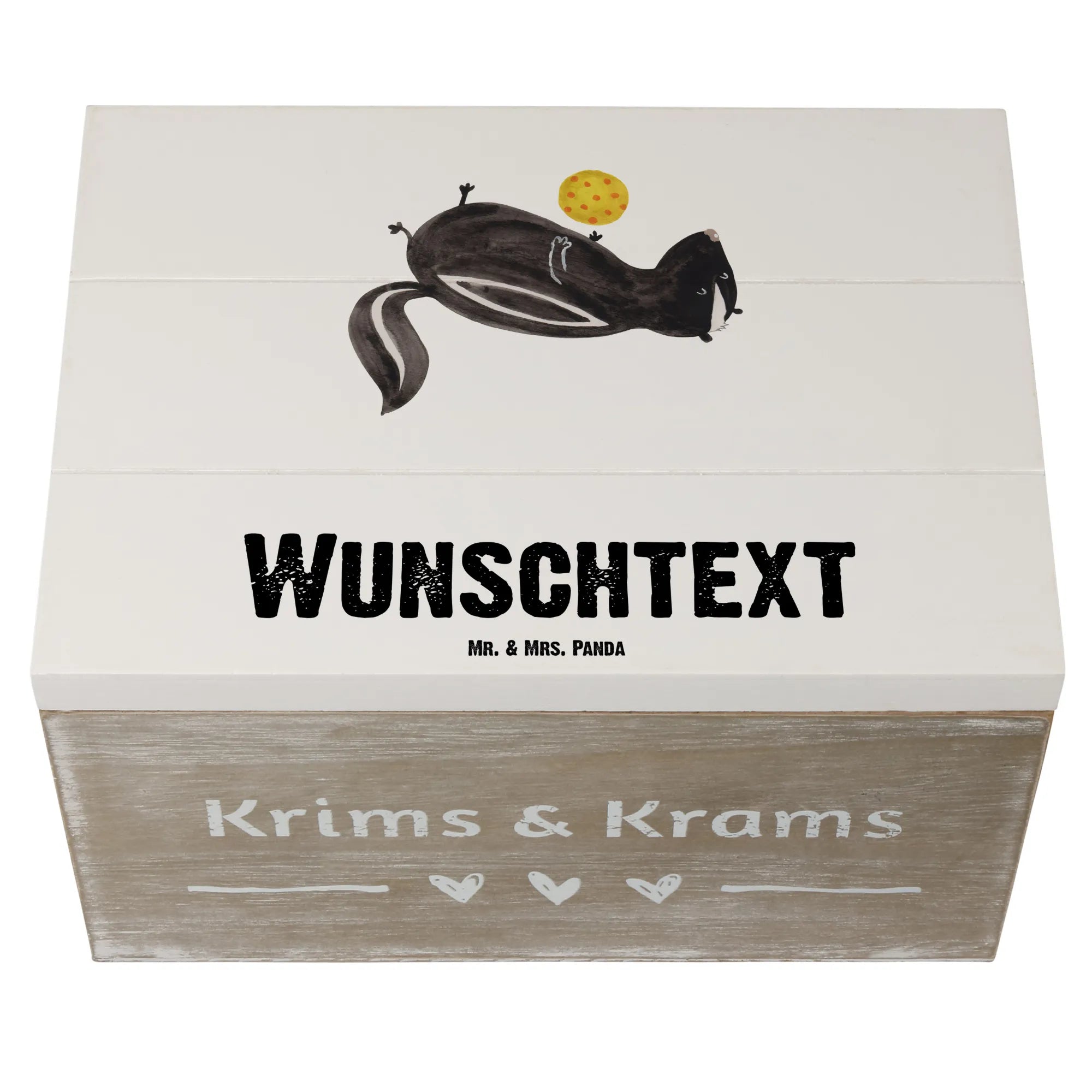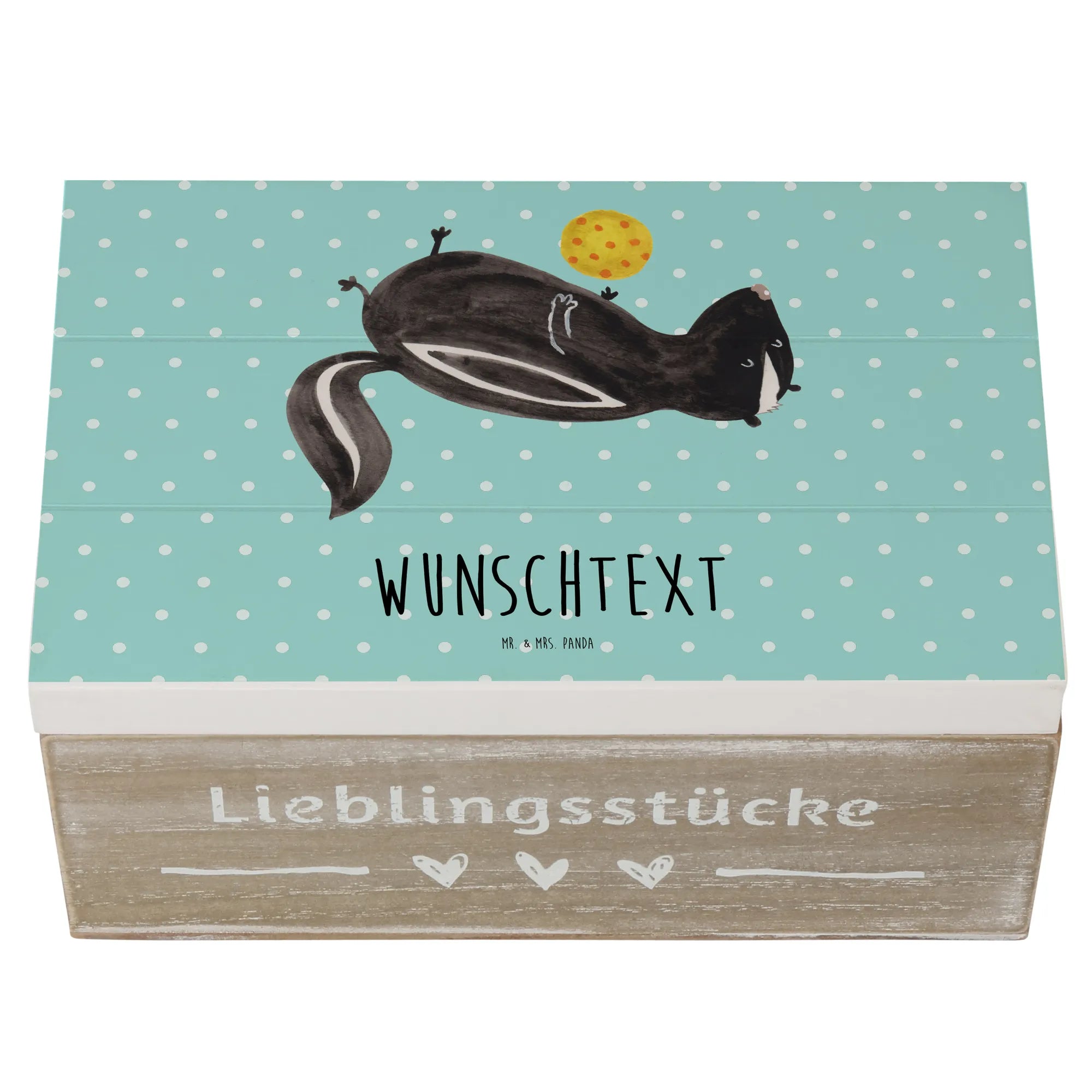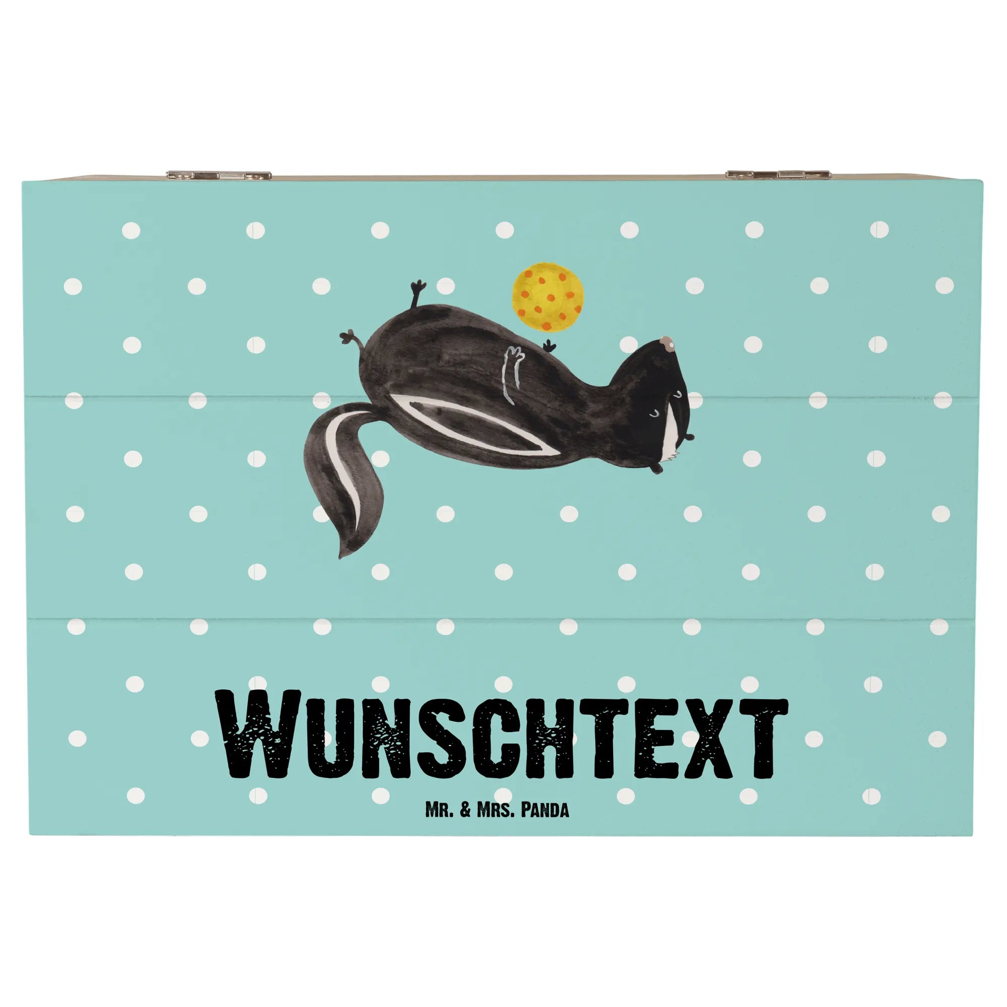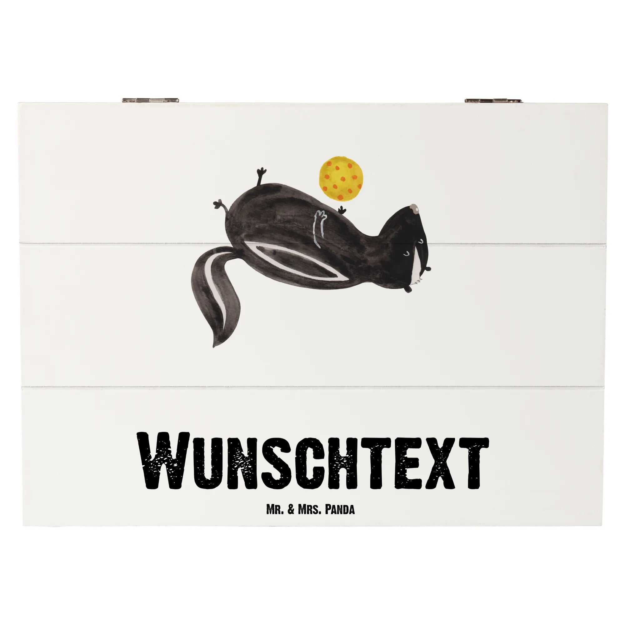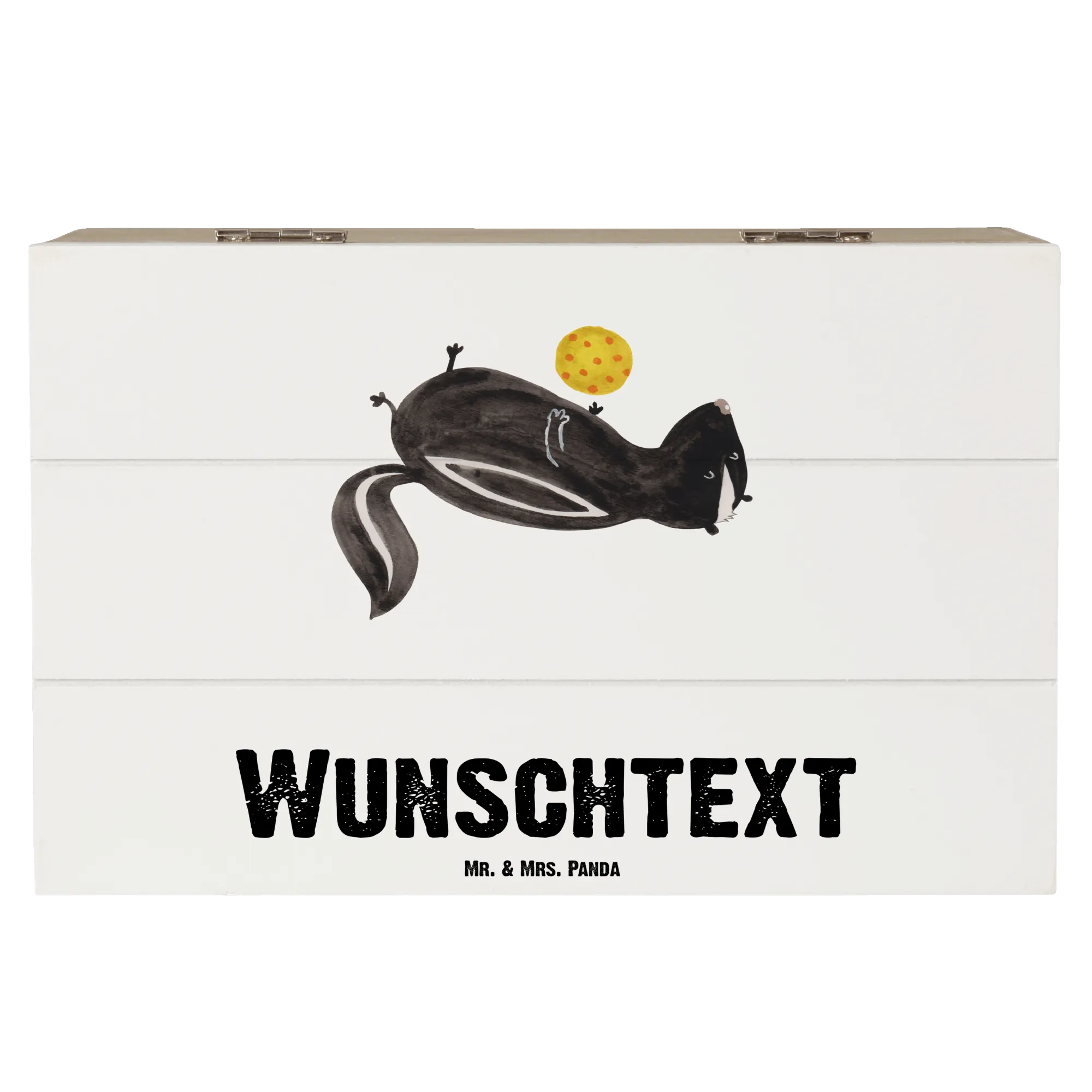 Personalizowane drewniane pudełko skunks piłka - 22 x 15 cm - Biały