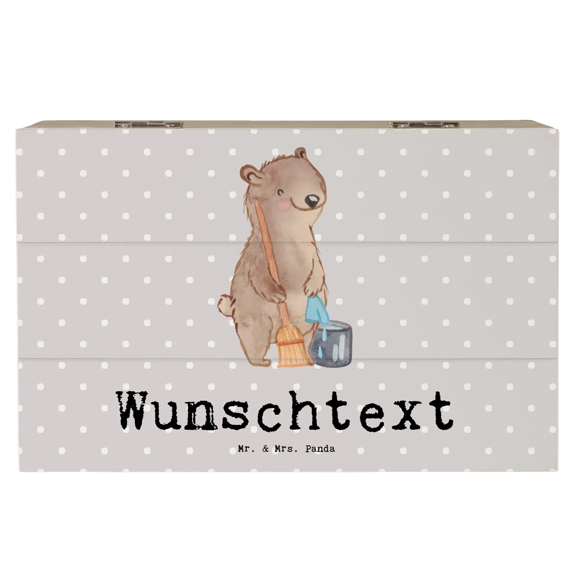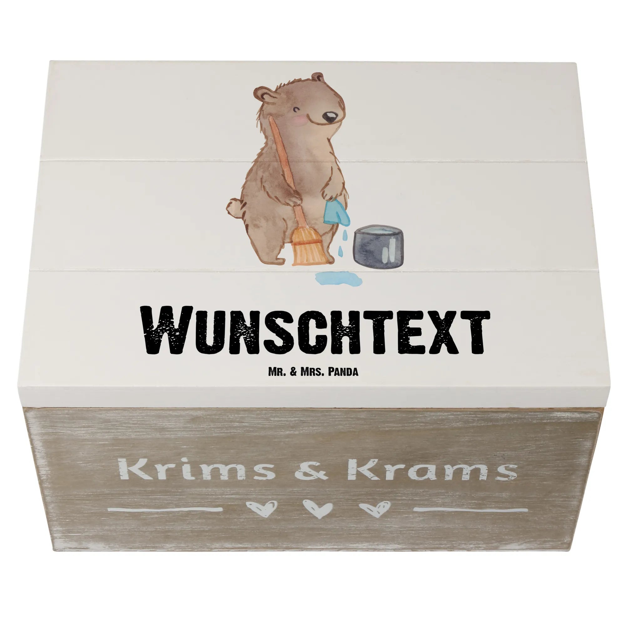 Personalizowane drewniane pudełko sprzątaczka Serce - 22 x 15 cm - biały