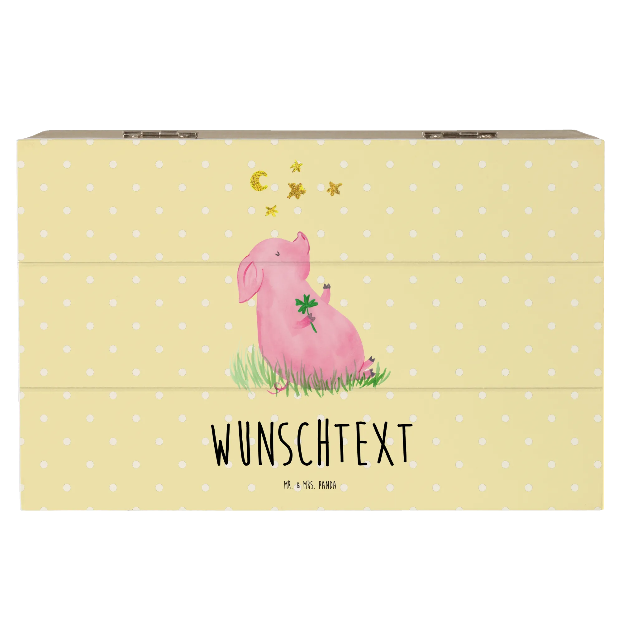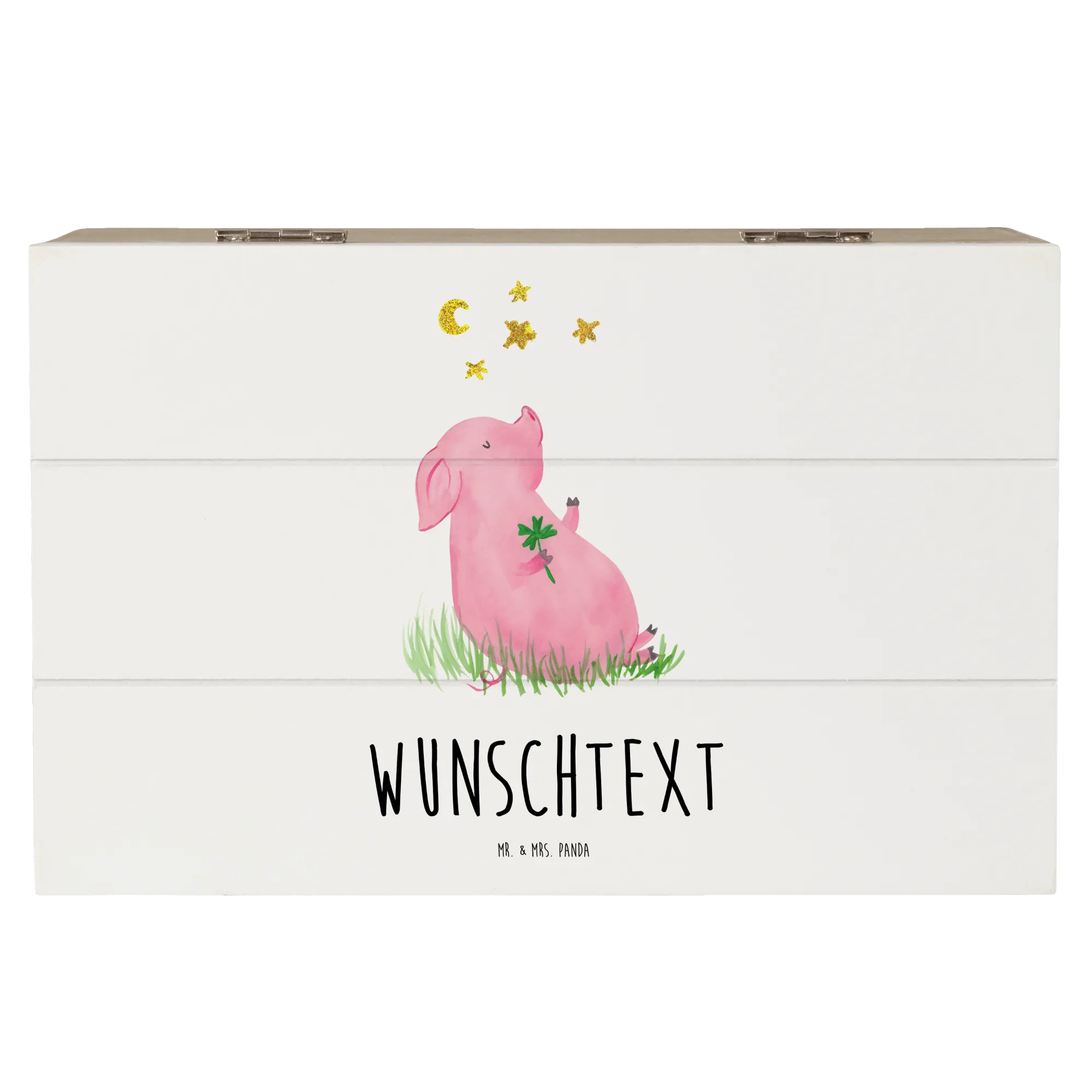 Personalizowane drewniane pudełko świnia Szczęście - 19 x 12 cm - biały