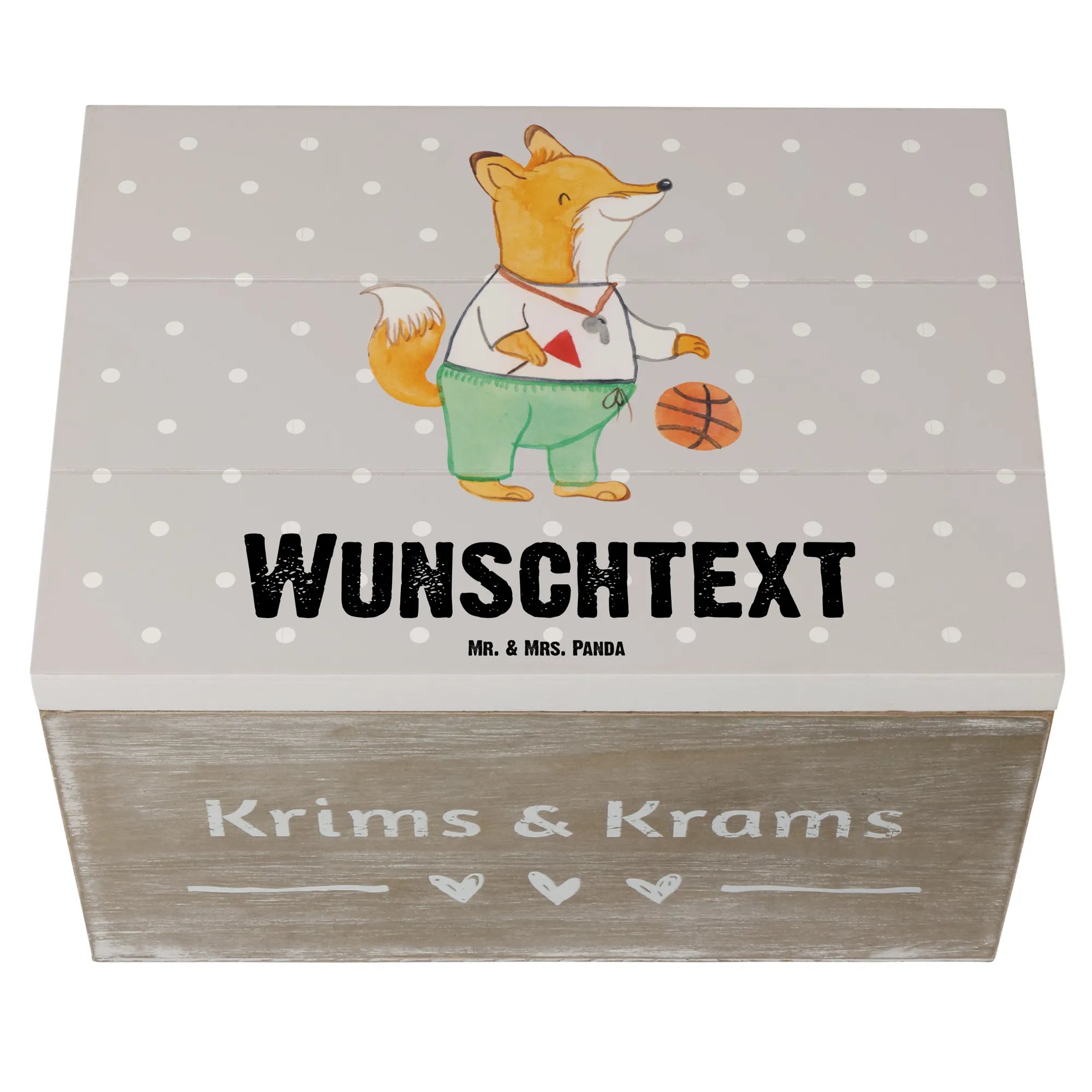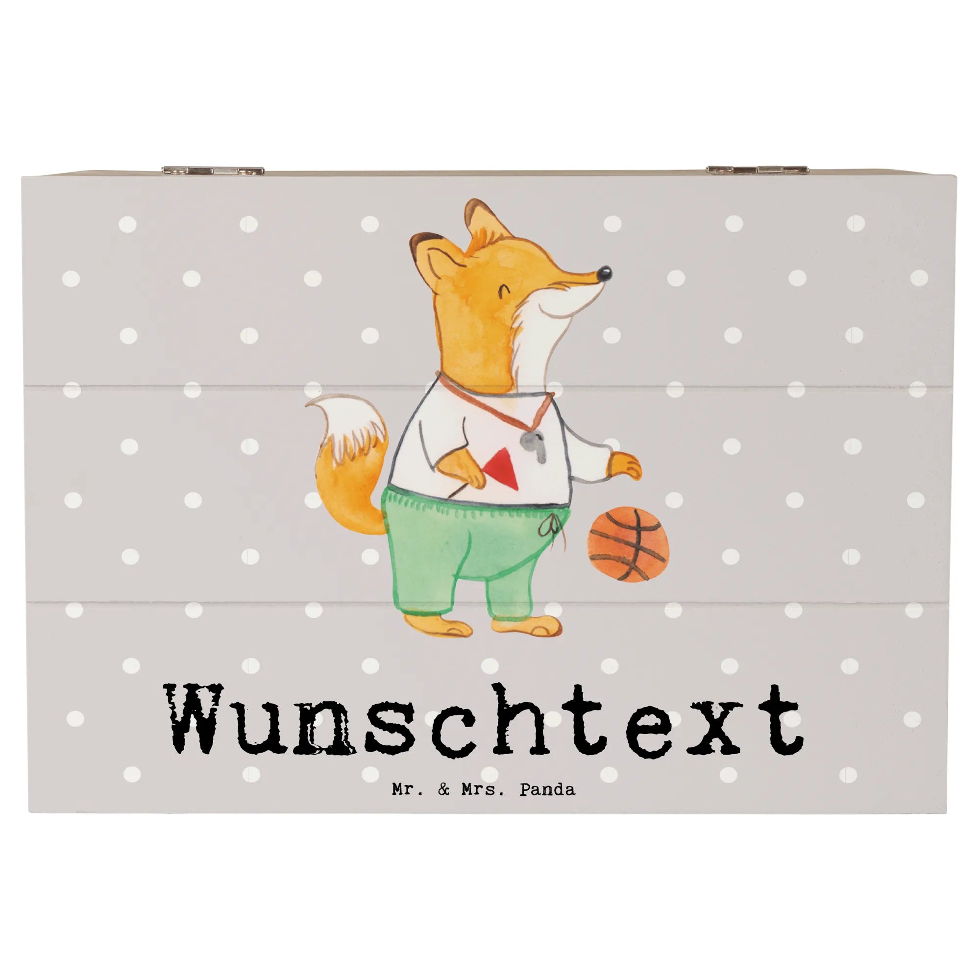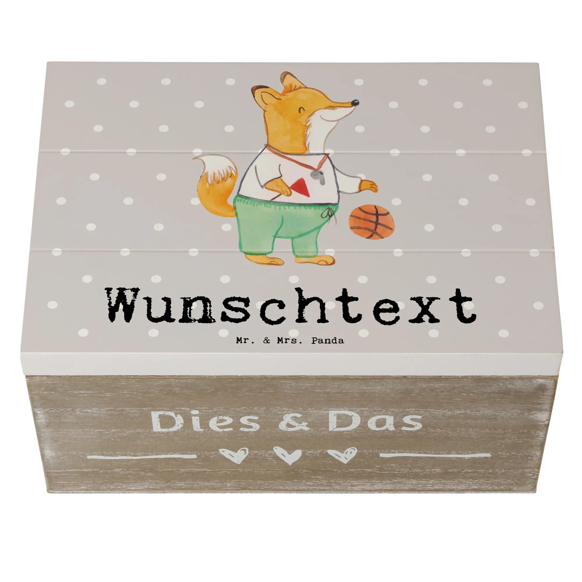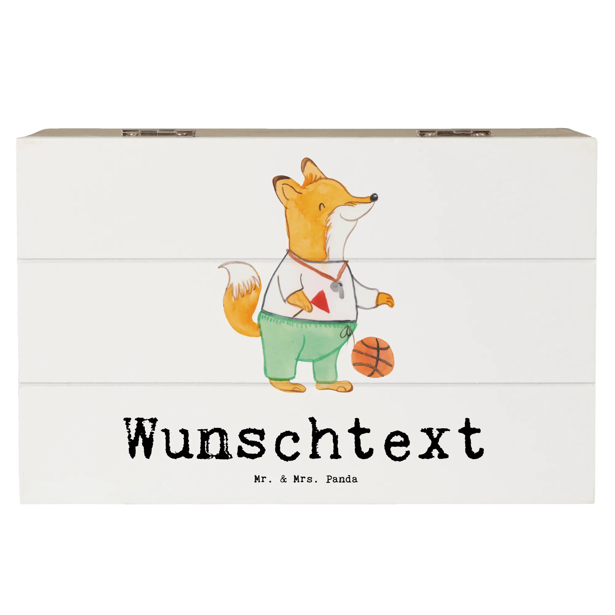 Personalizowane drewniane pudełko trener koszykówki serce - 22 x 15 cm - biały