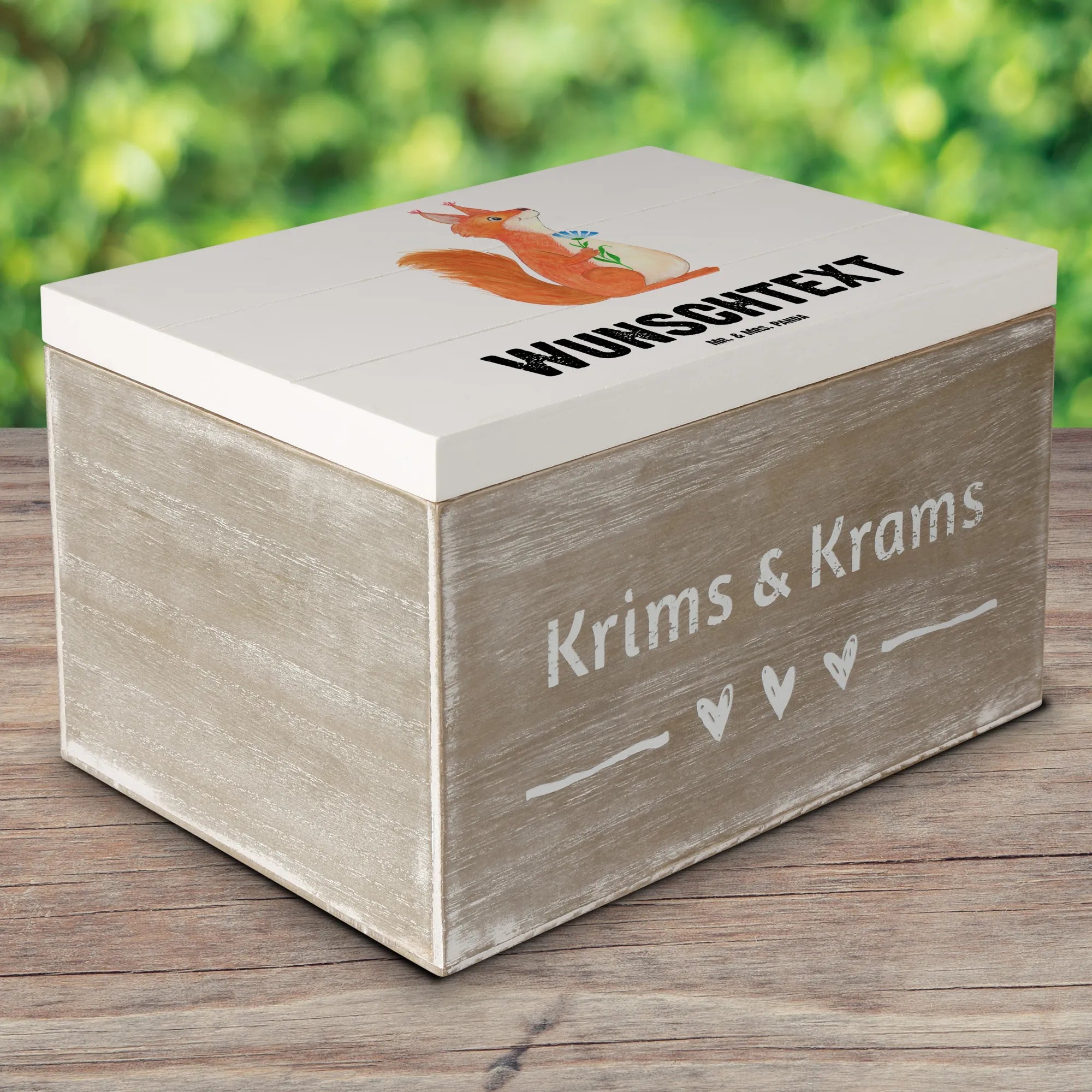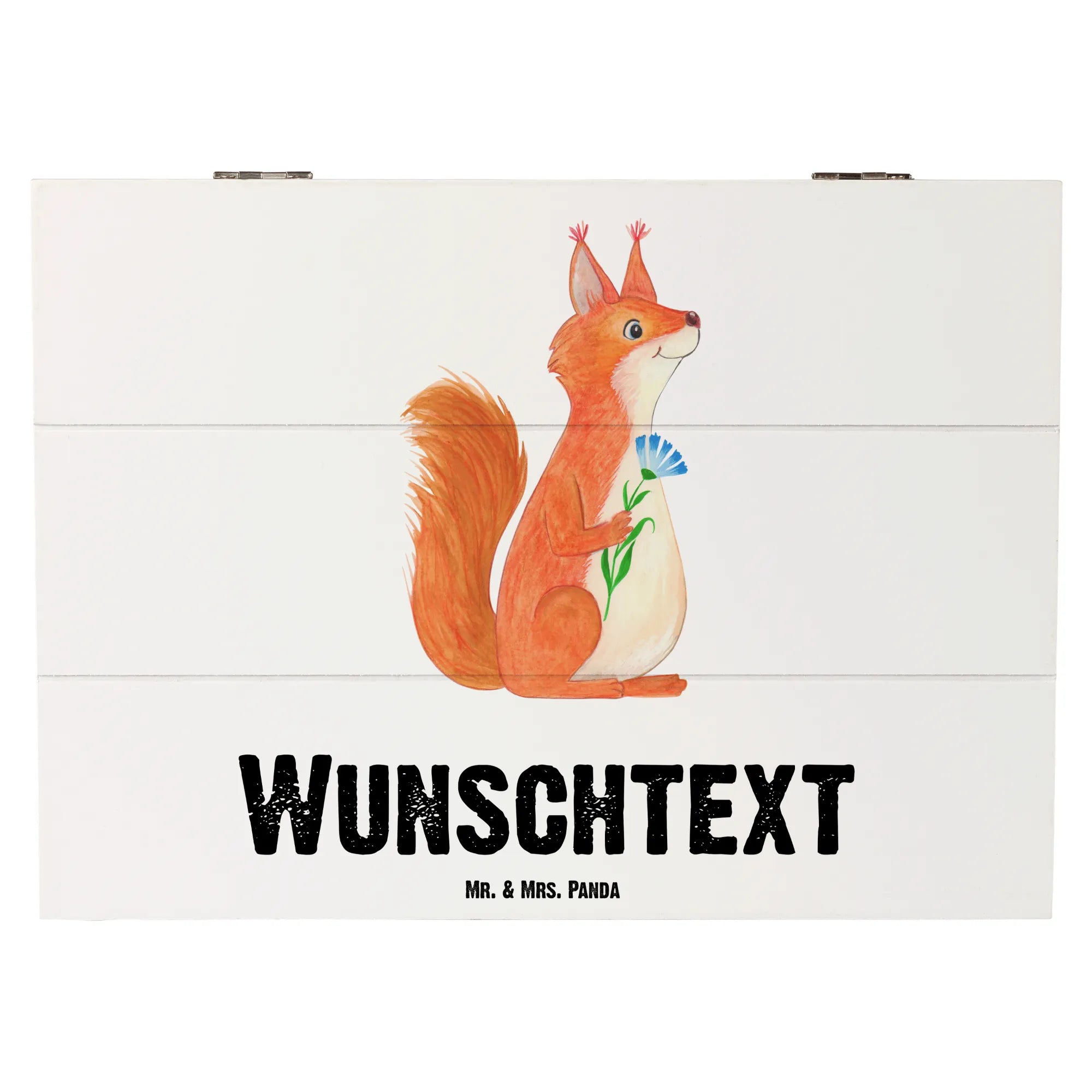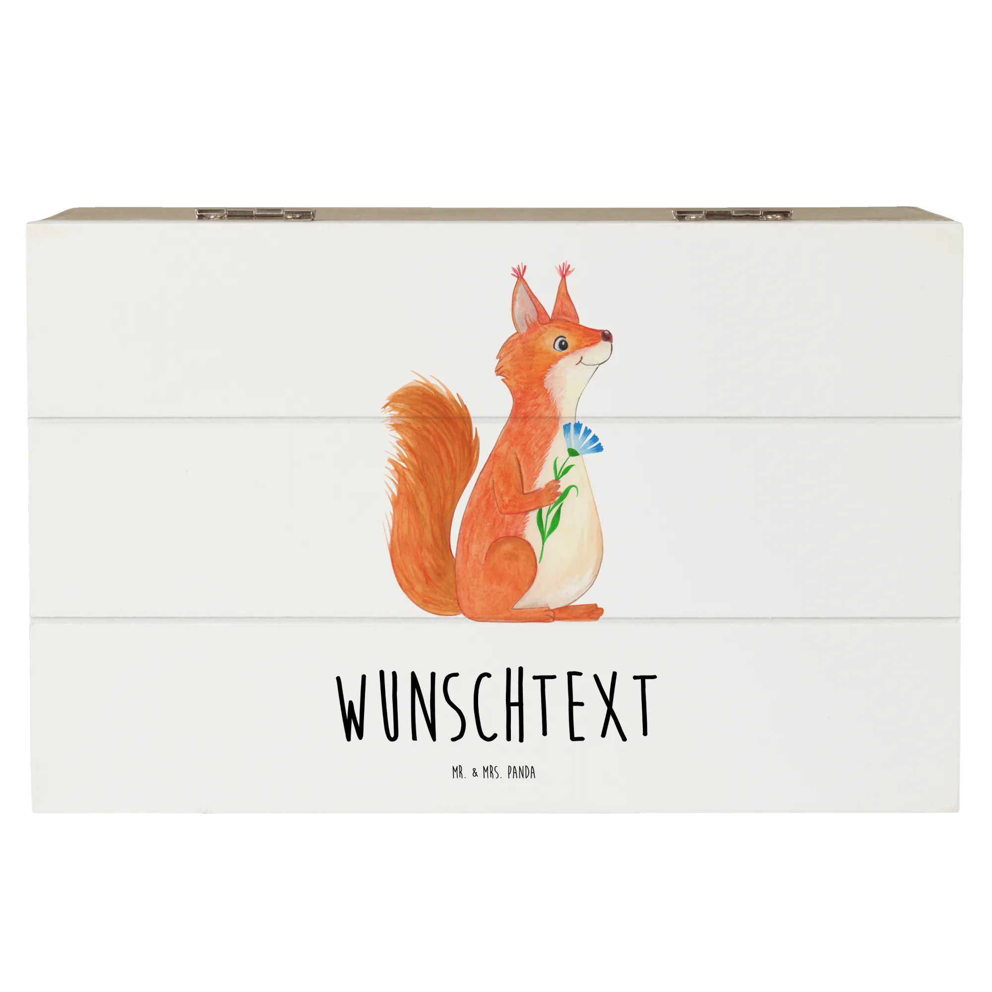 Personalizowane drewniane pudełko wiewiórka kwiat - 22 x 15 cm - Biały