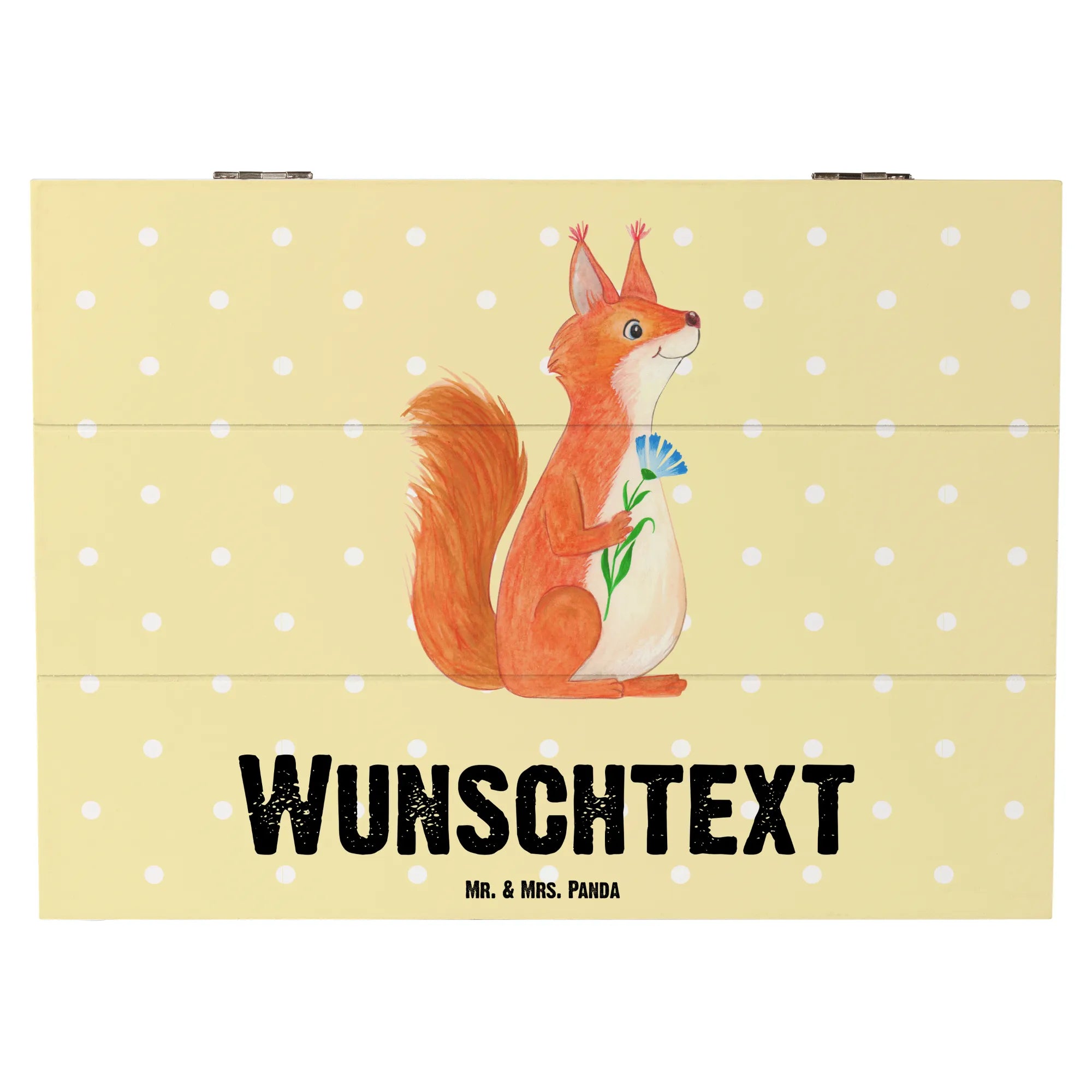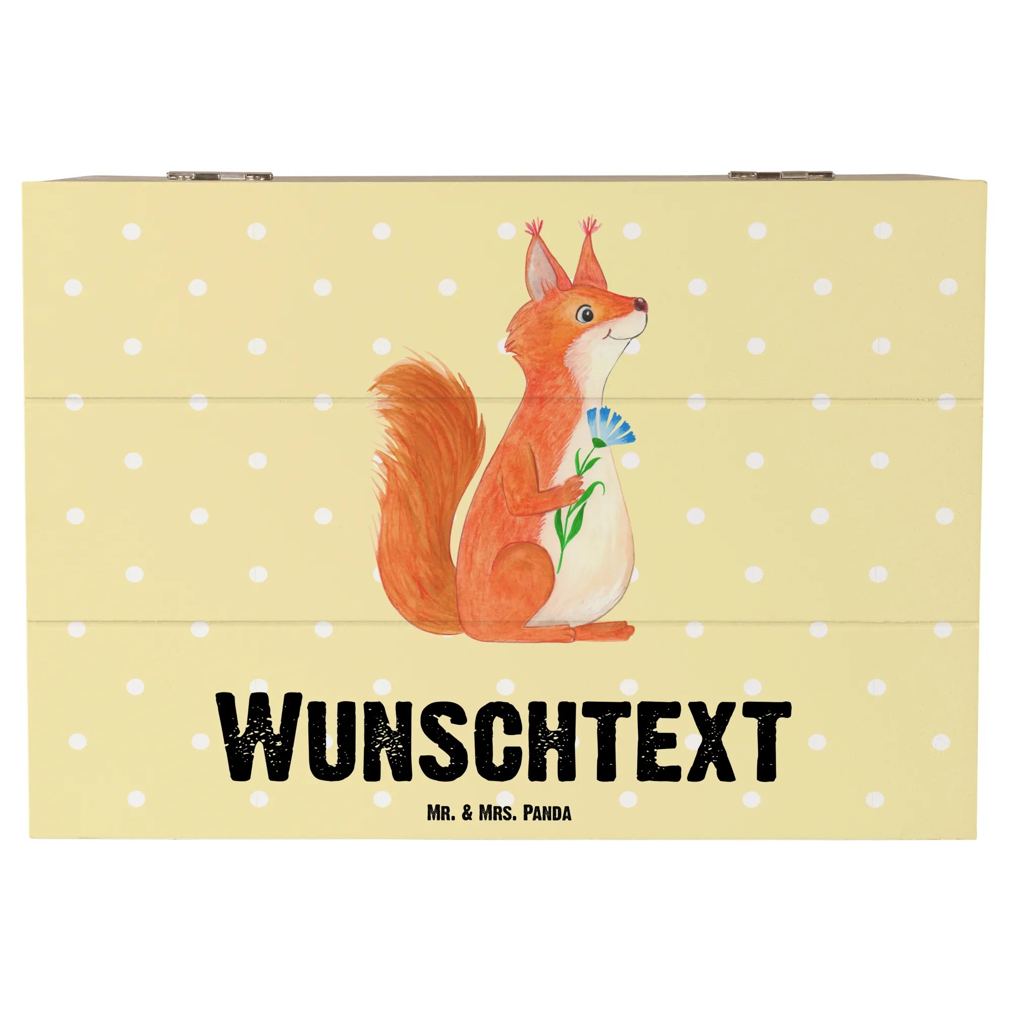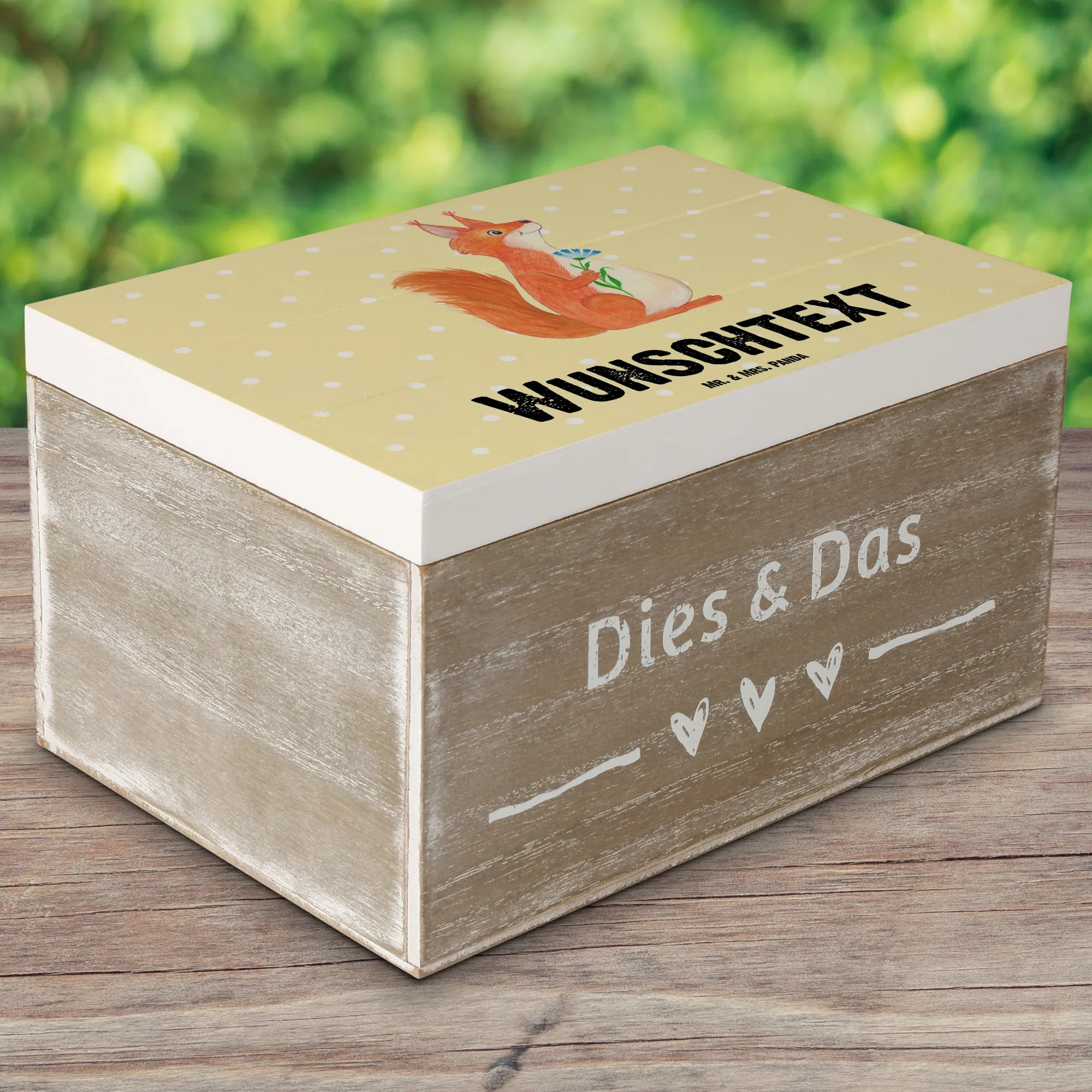 Personalizowane drewniane pudełko wiewiórka kwiat - 22 x 15 cm - Biały