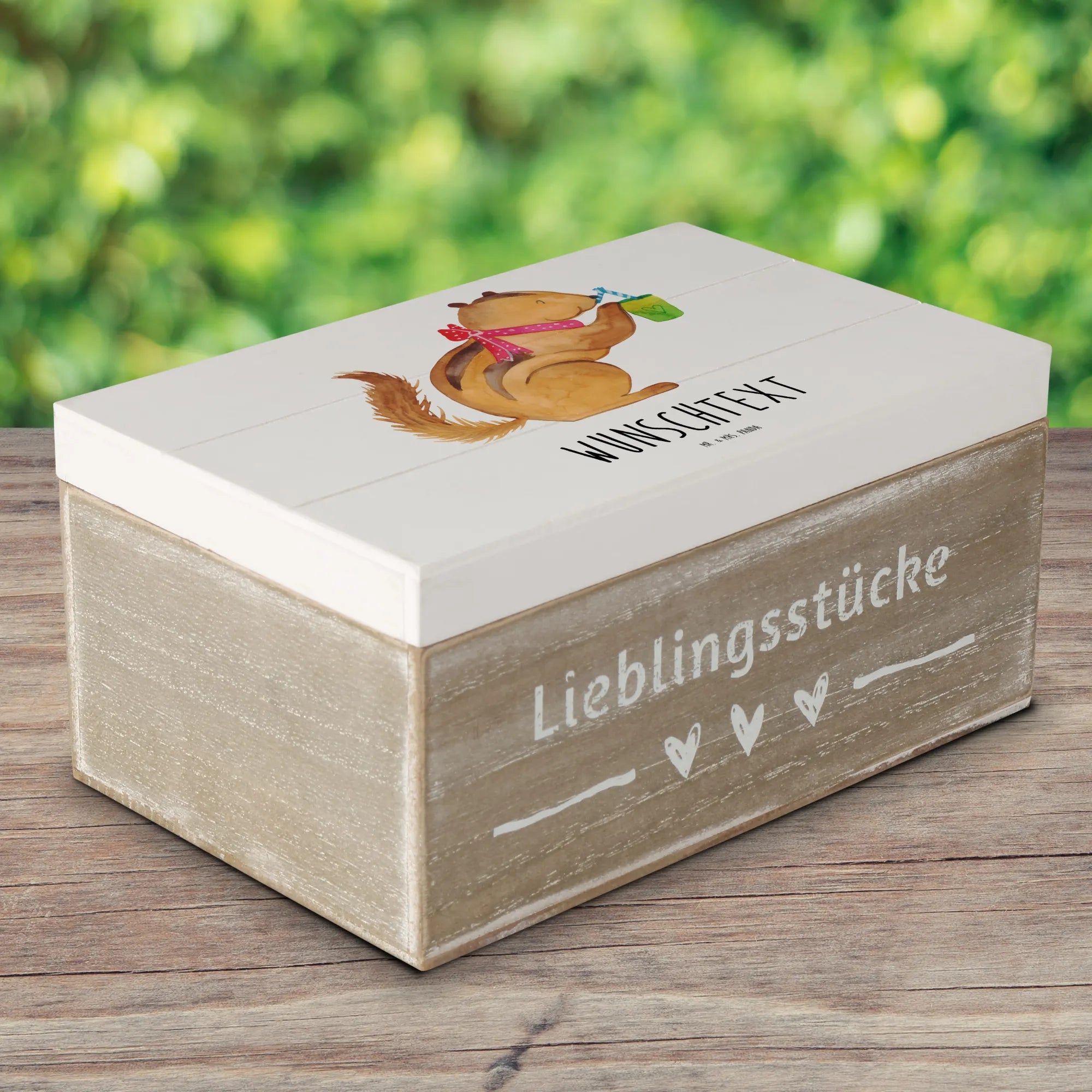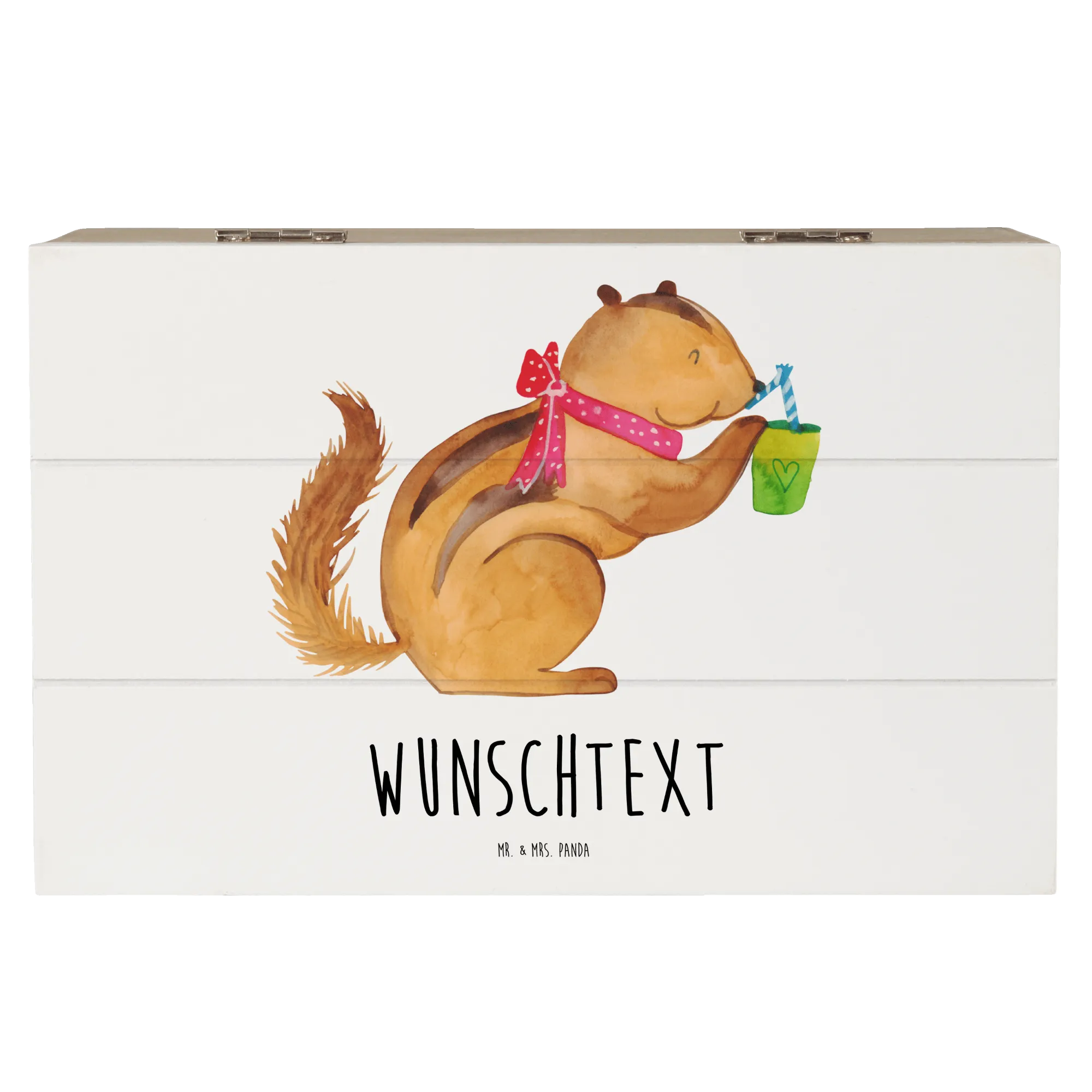 Personalizowane drewniane pudełko wiewiórka Smoothie - 22 x 15 cm - biały
