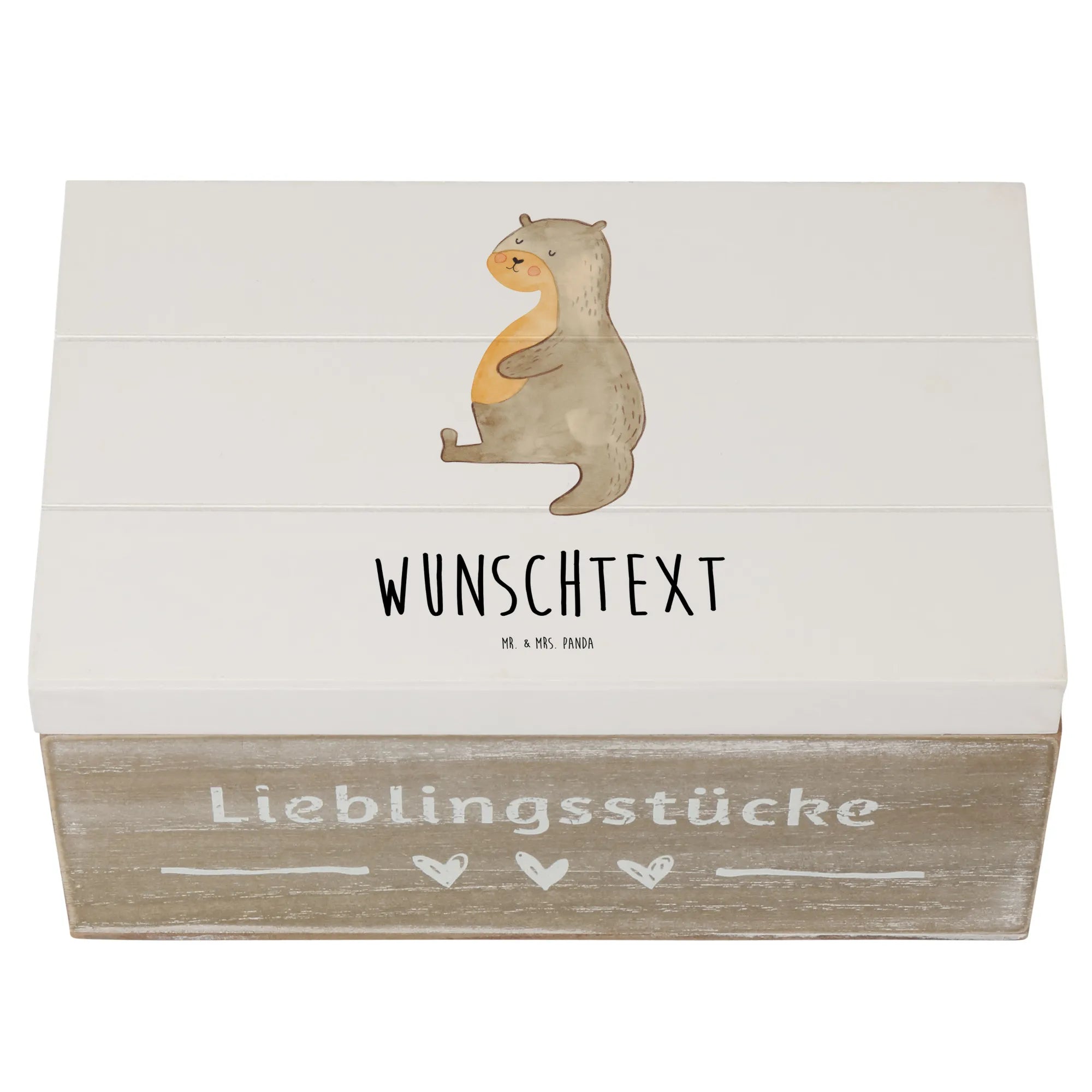 Personalizowane drewniane pudełko wydra brzuch - 22 x 15 cm - biały