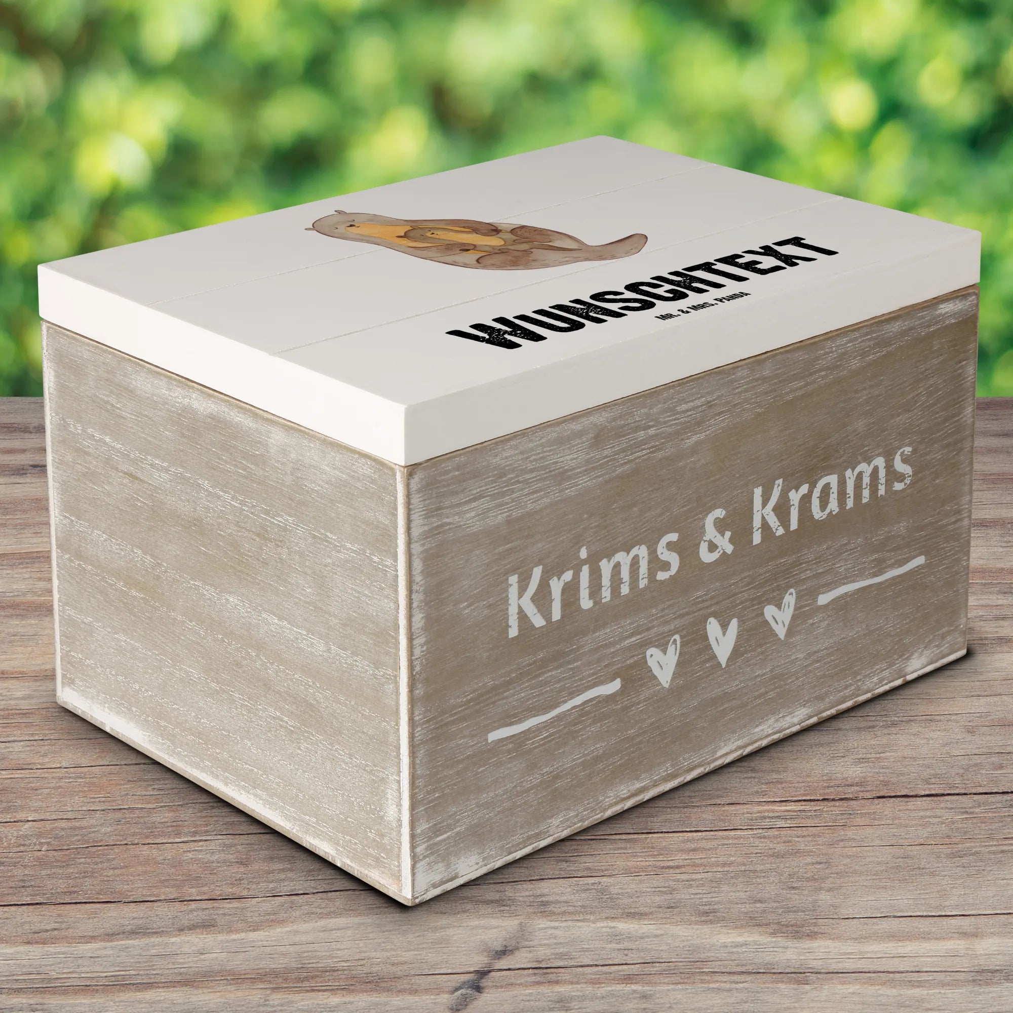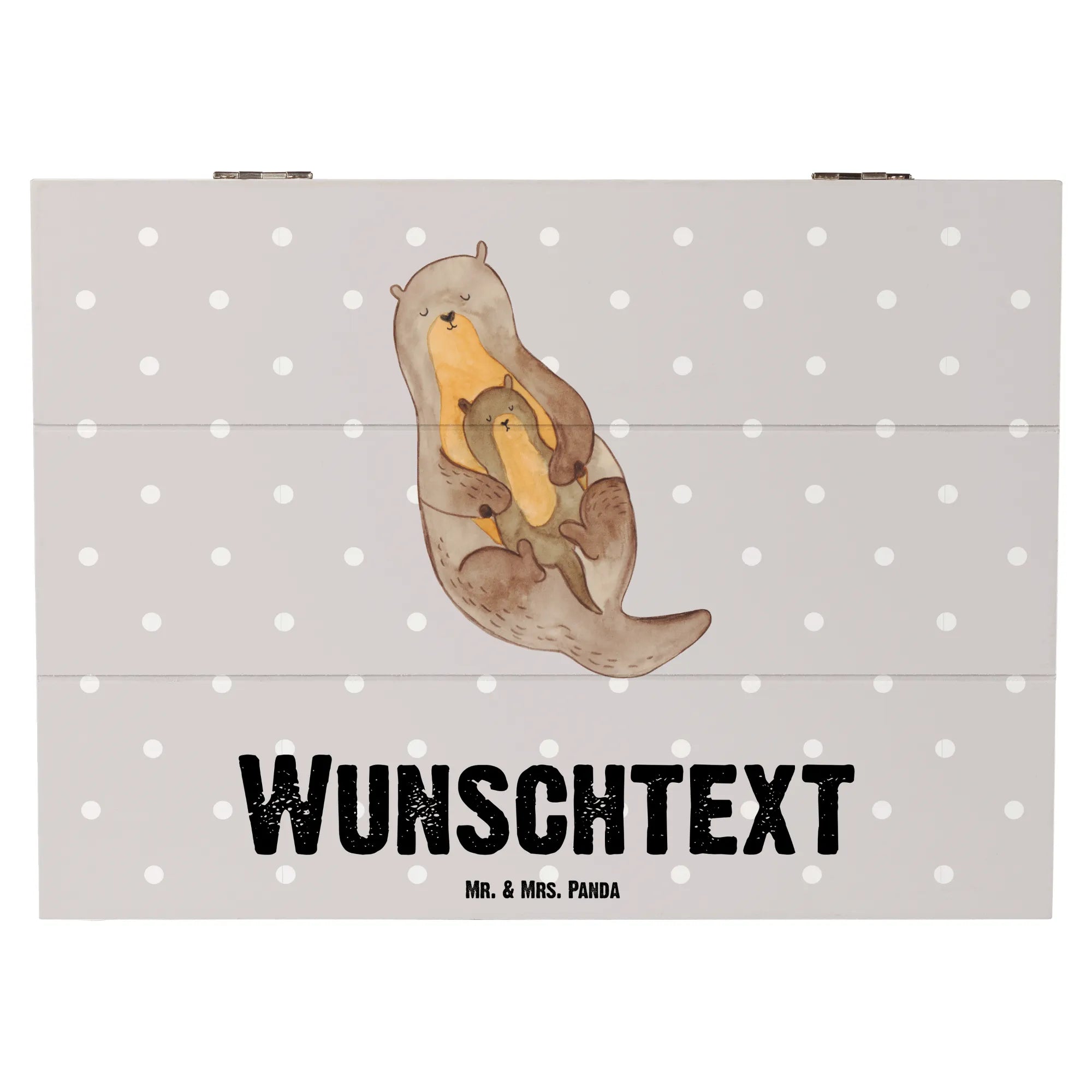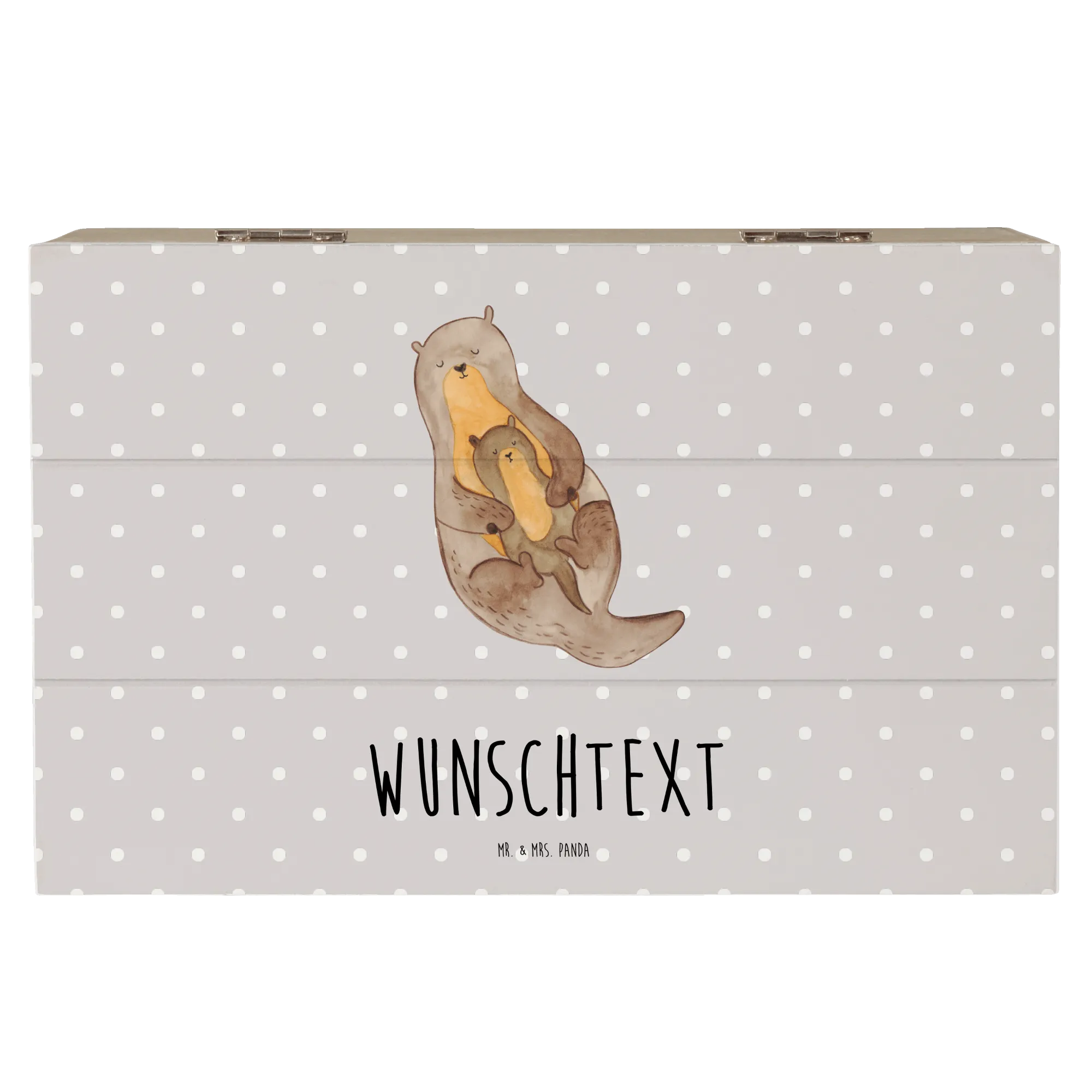 Personalizowane drewniane pudełko wydra dziecko - 22 x 15 cm - Szary Pastel