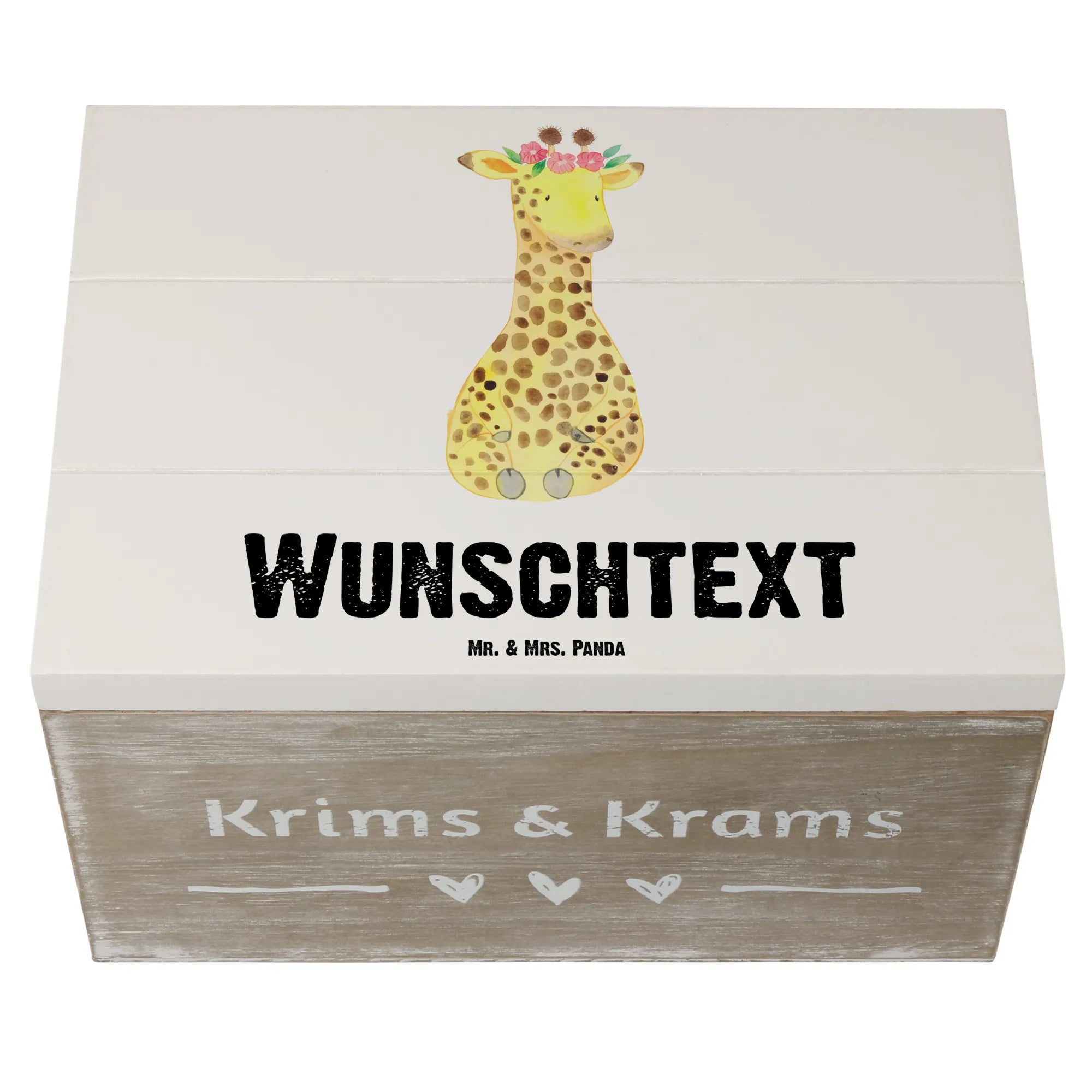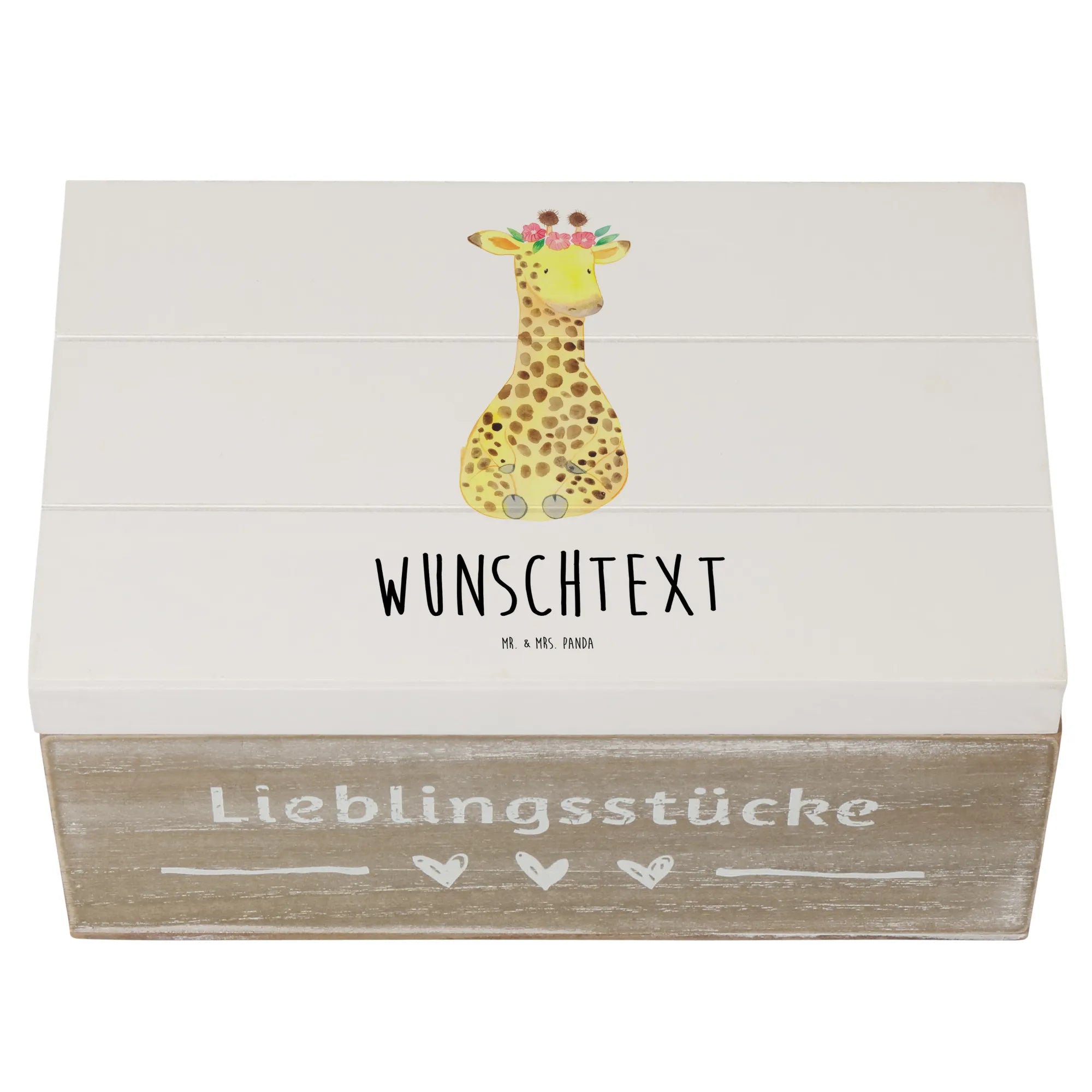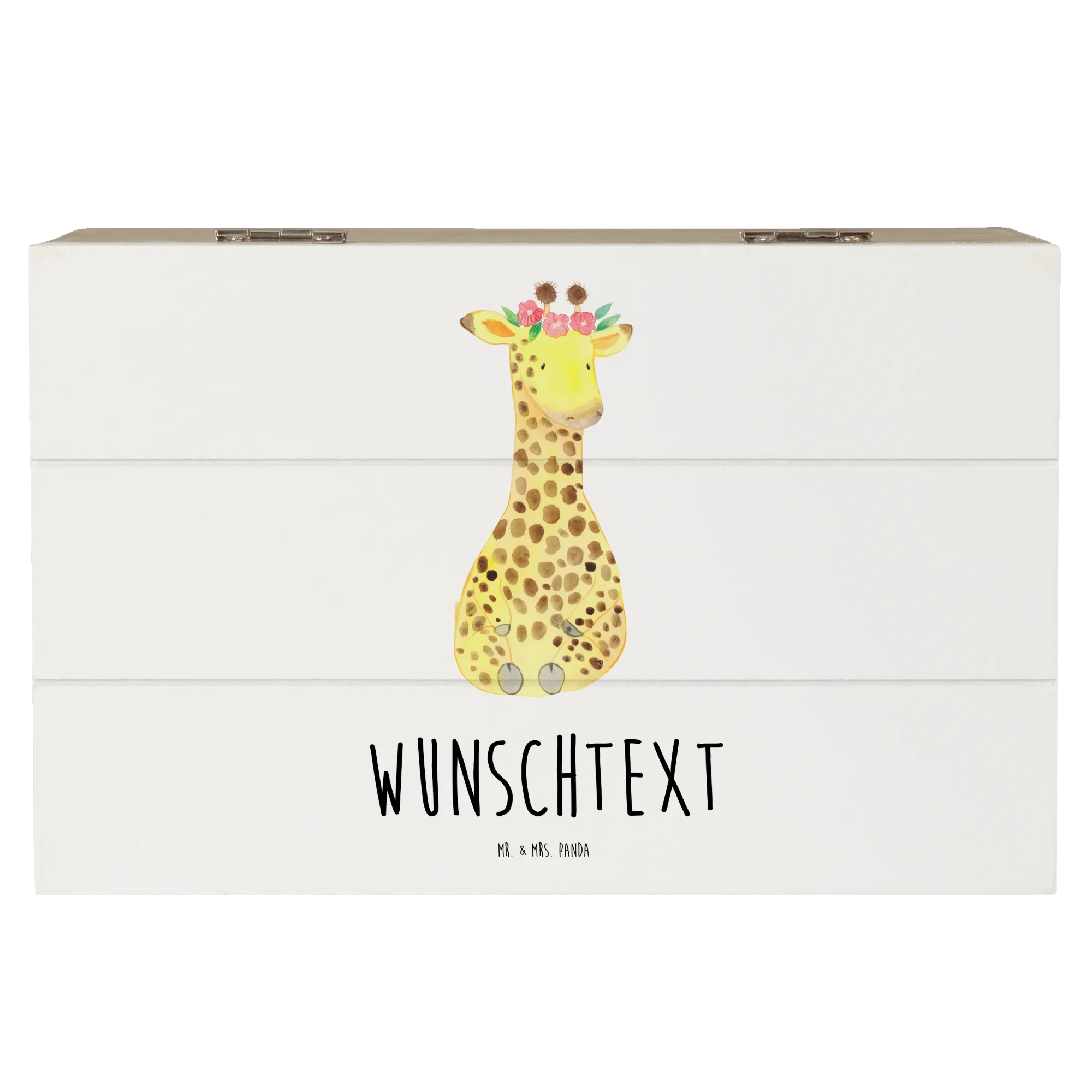 Personalizowane drewniane pudełko żyrafa Wieniec kwiatów - 22 x 15 cm - biały