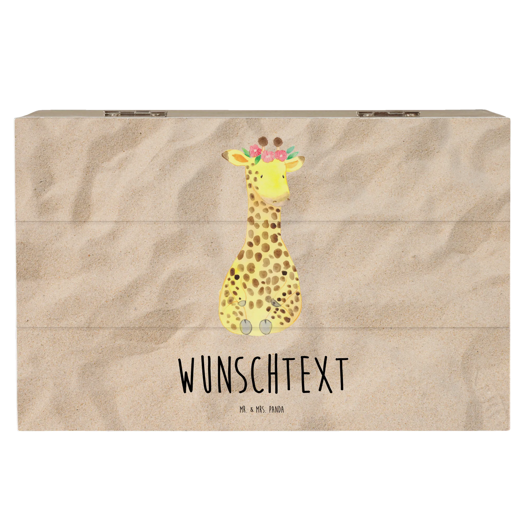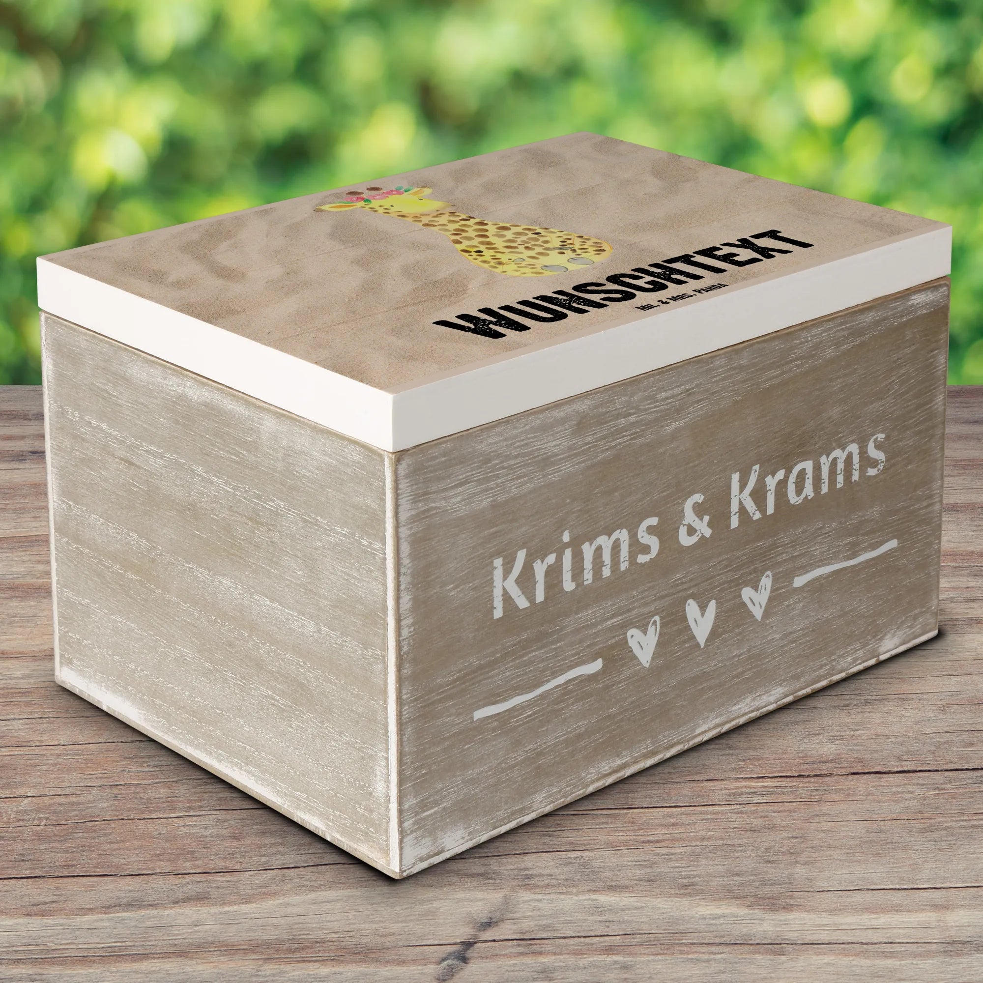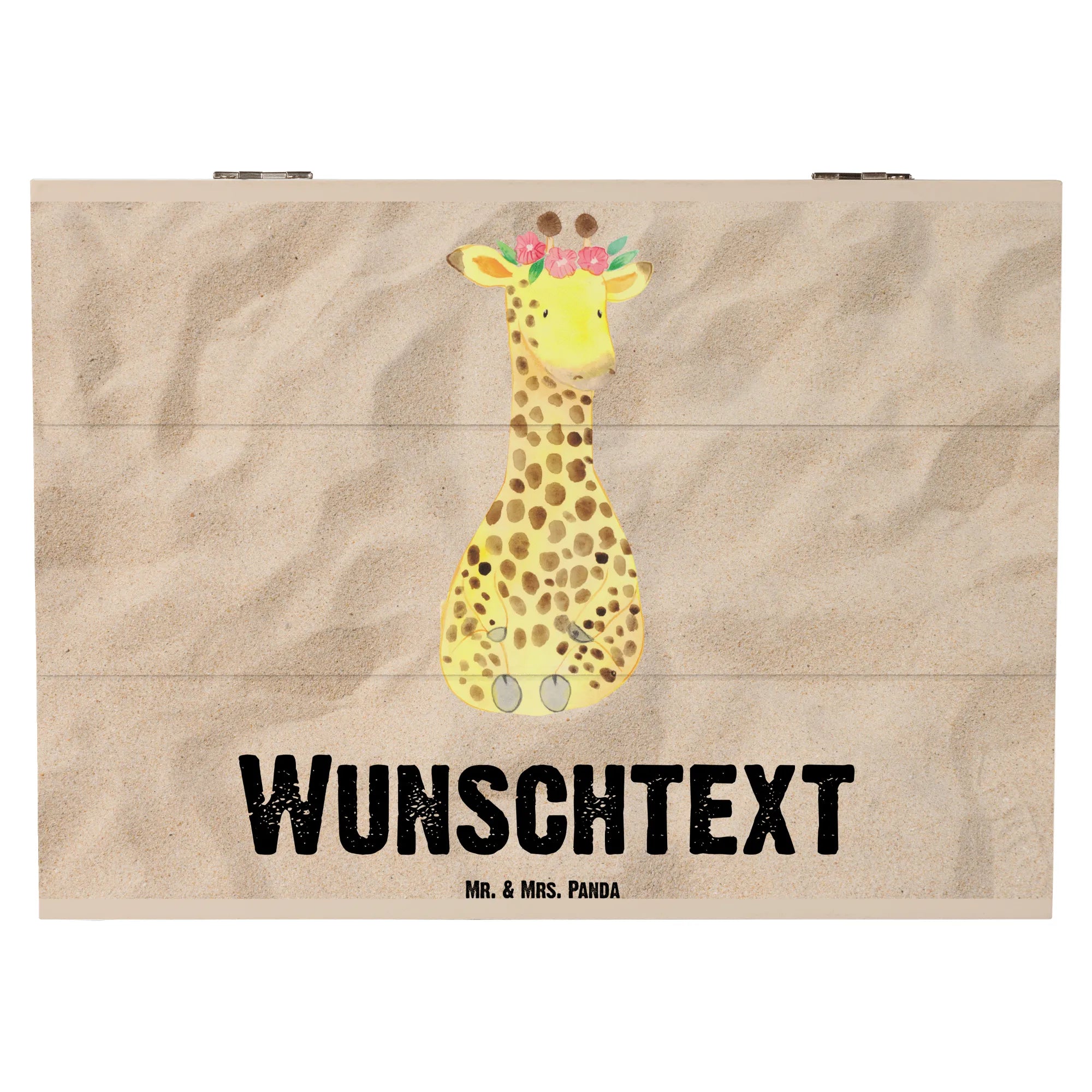 Personalizowane drewniane pudełko żyrafa Wieniec kwiatów - 22 x 15 cm - biały