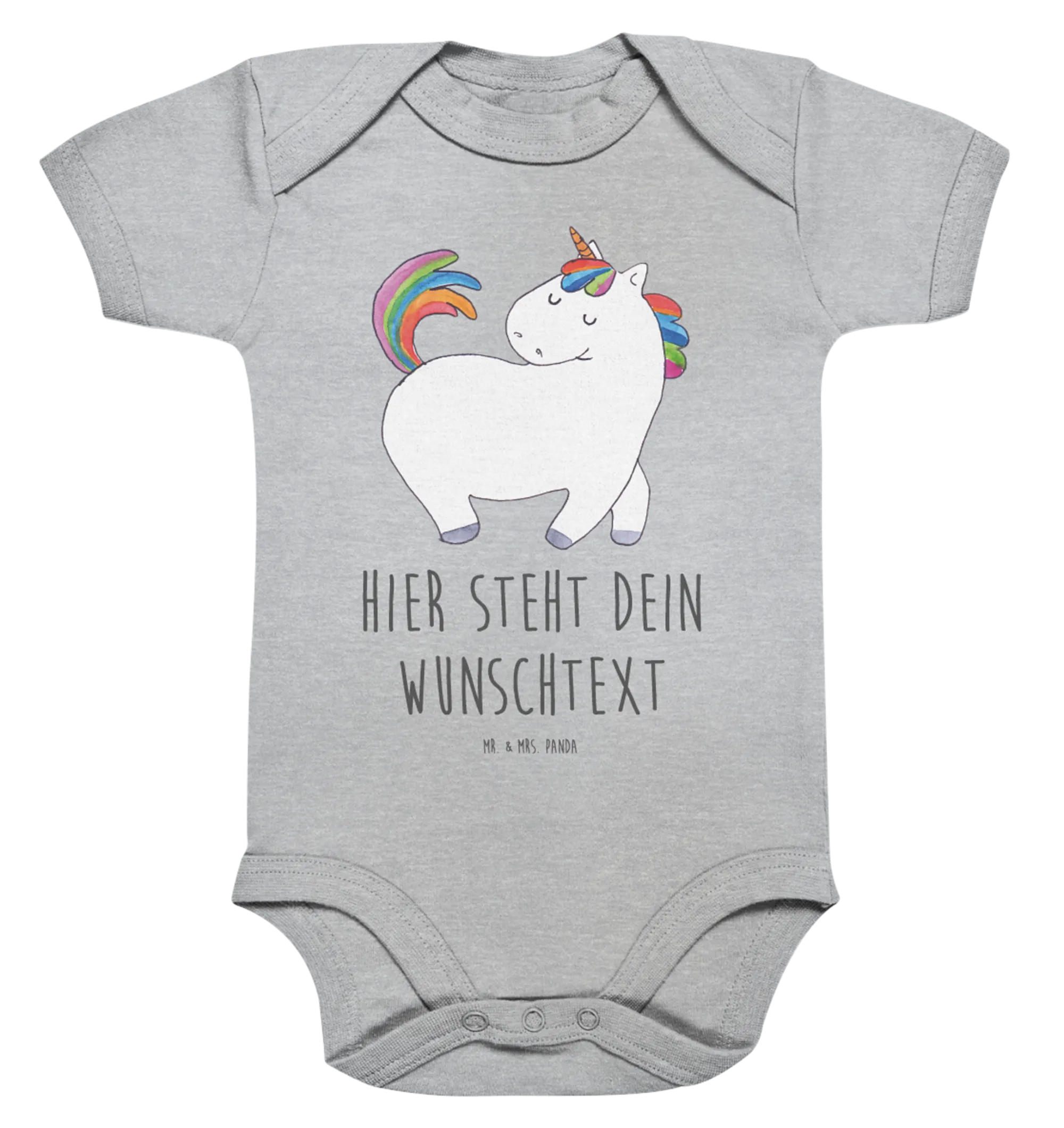 Der personalisierte Baby Body mit dem echten Einhorn-Motiv bietet Platz für einen individuellen Text. Hier kannst Du den Namen Deines kleinen Lieblings oder einen herzlichen Spruch hinzufügen. Und das Beste daran? Jeder Baby Body wird aus hochwertiger, öko-zertifizierter Baumwolle gefertigt, die wunderbar weich zur zarten Babyhaut ist. Bei Mr. & Mrs. Panda legen wir großen Wert darauf, dass unsere Produkte nicht nur optisch, sondern auch qualitativ überzeugen.