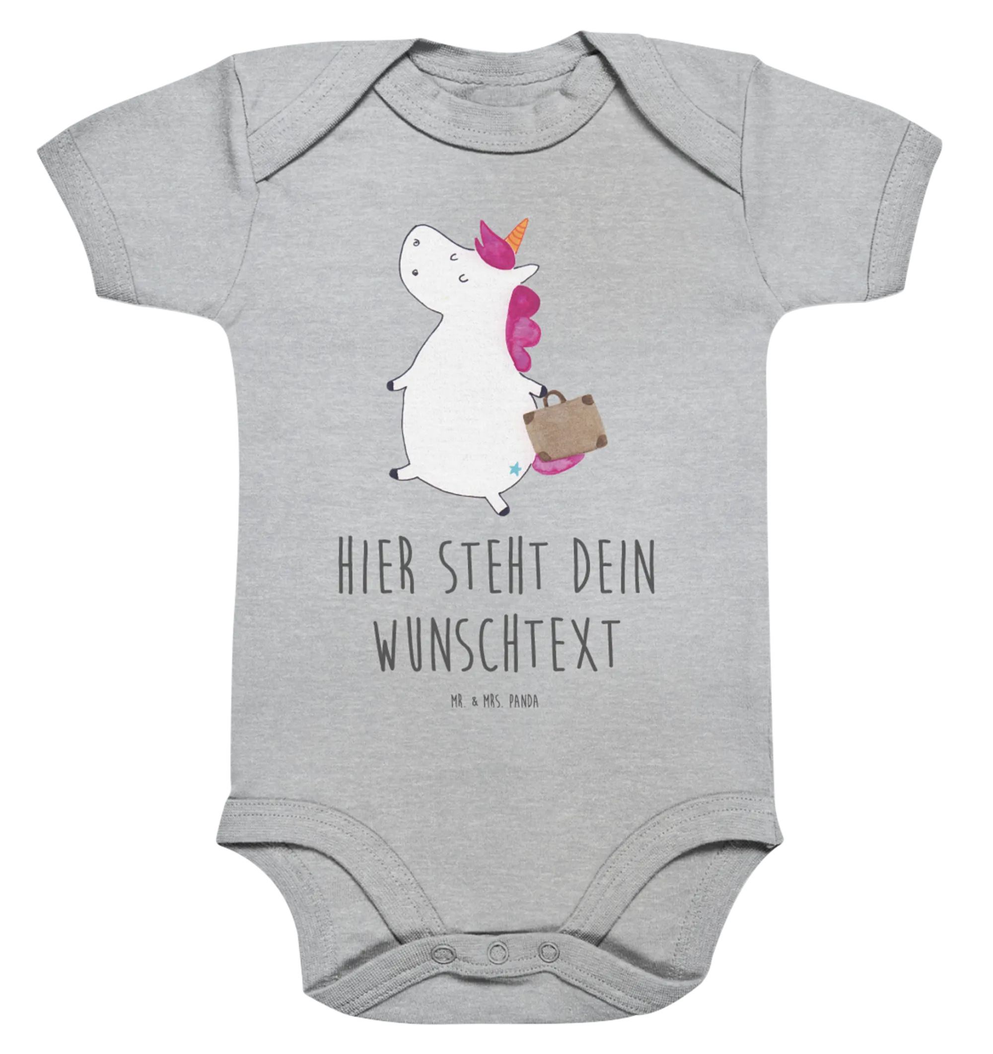 Schenke deinem kleinen Liebling einen ganz besonderen Baby Body, der nicht nur super süß aussieht, sondern auch jede Menge Spaß und Freude verspricht! Unser personalisierter Baby Body mit dem bezaubernden Motiv "Einhorn Koffer" aus der einzigartigen Einhorn-Kollektion von Mr. & Mrs. Panda ist das perfekte Geschenk für kleine Abenteurer und ihre Eltern. Der Baby Body kommt in den Größen für 1-3 Monate und ist aus hochwertiger, biologischer Baumwolle gefertigt - ganz sanft zur zarten Babyhaut.