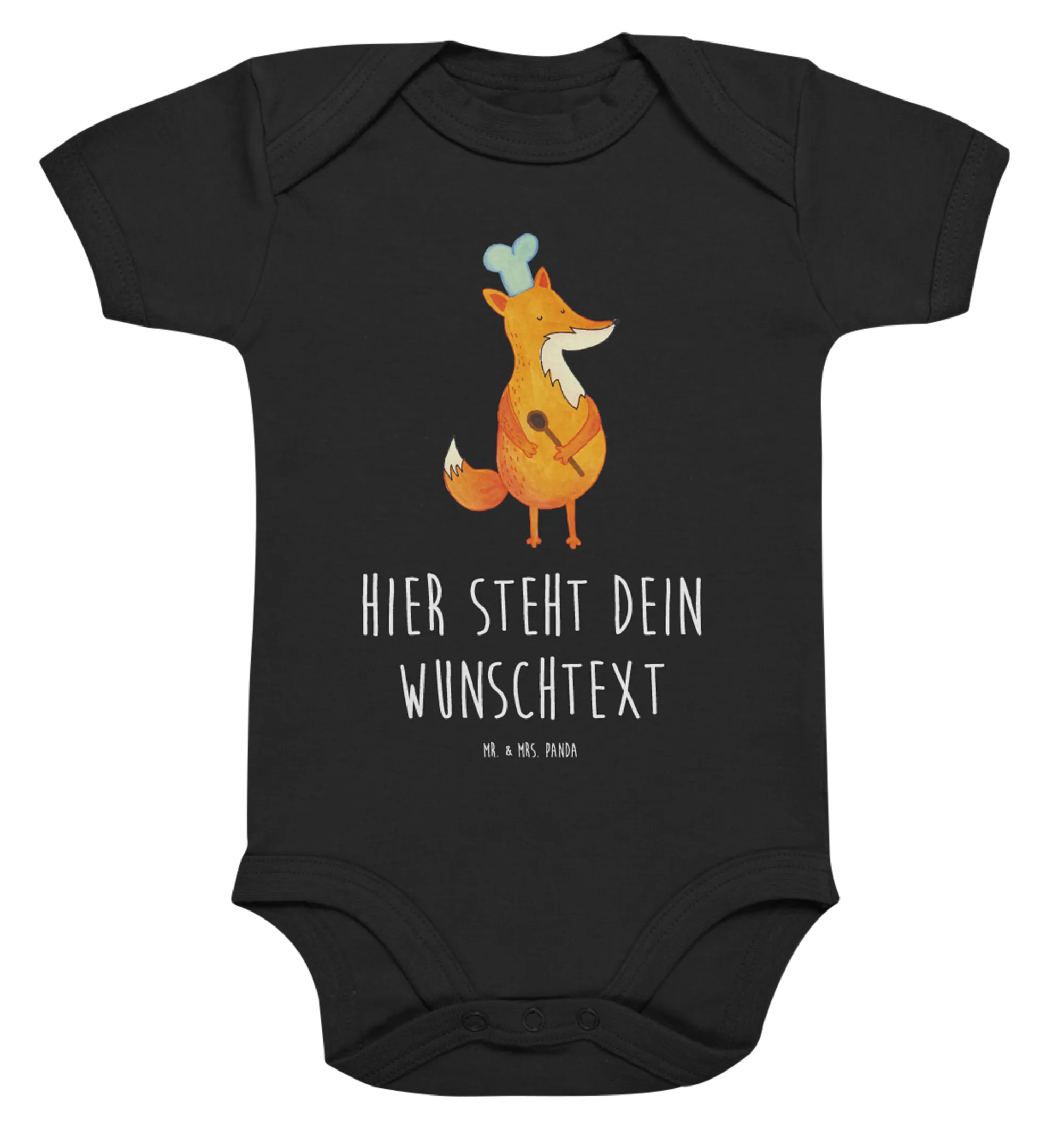 Personalizowany body dla niemowląt lis kucharz - 12. - 18. Monat - Czarny